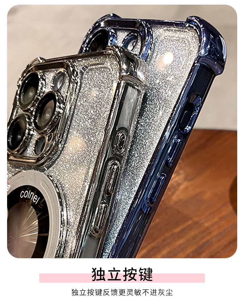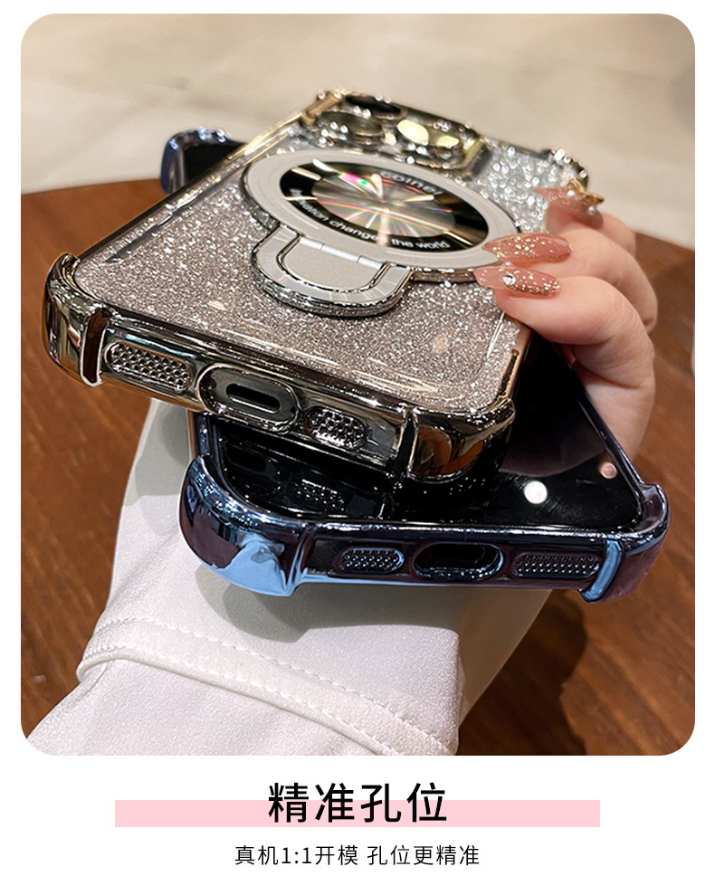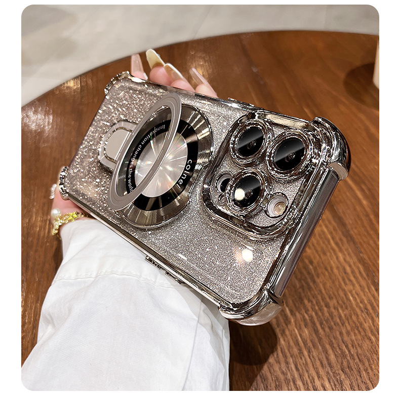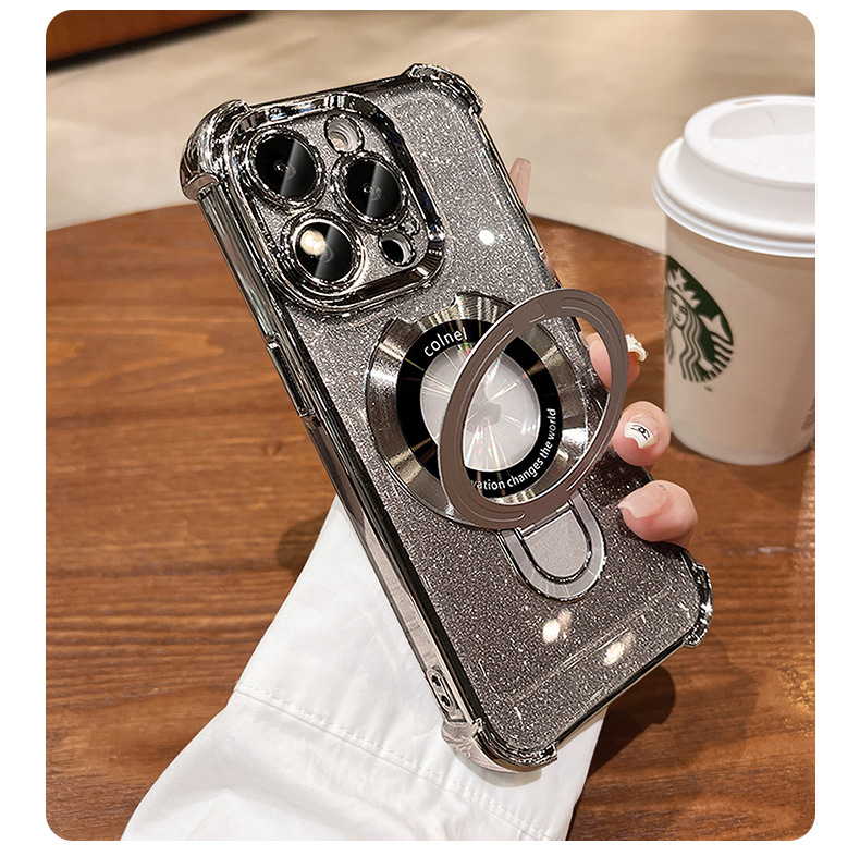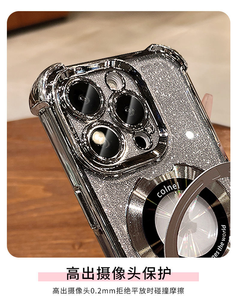 四角氣囊適用蘋果16透明手機殼iPhone17優盾磁吸支架閃粉保護套14