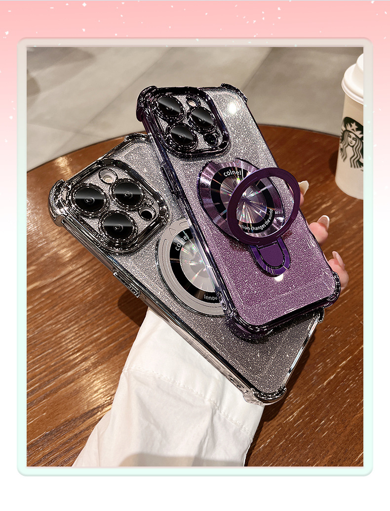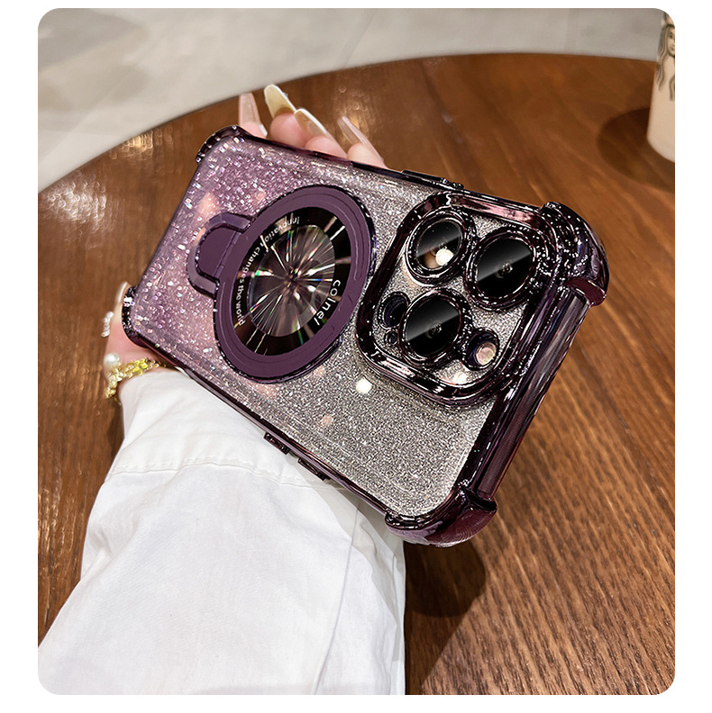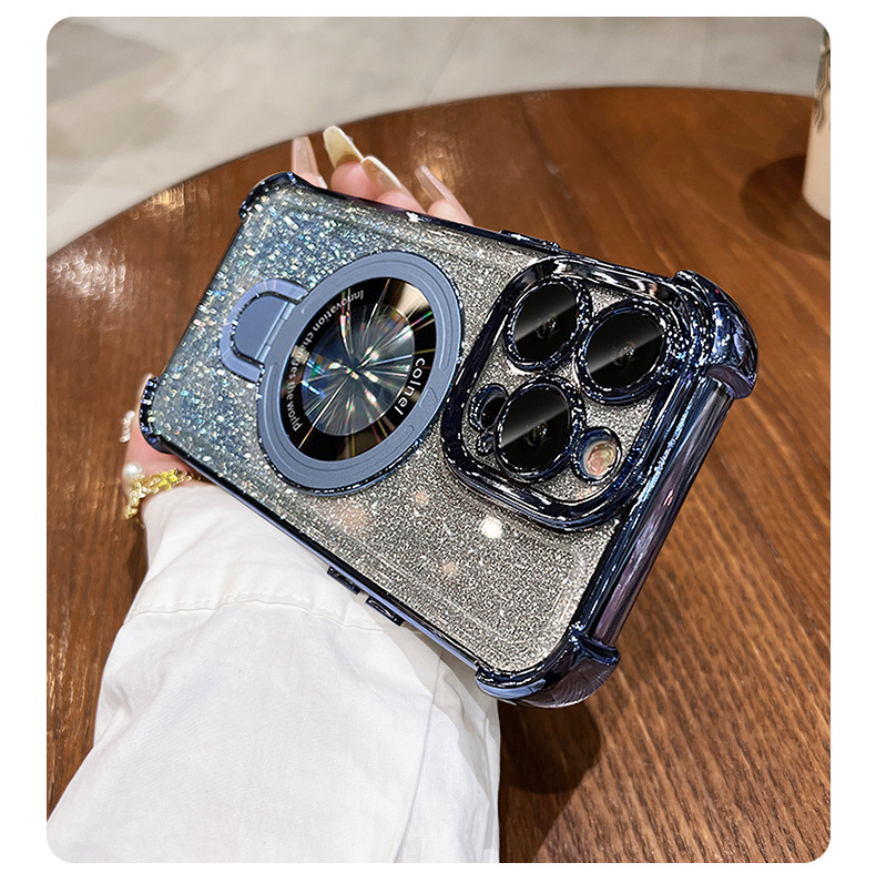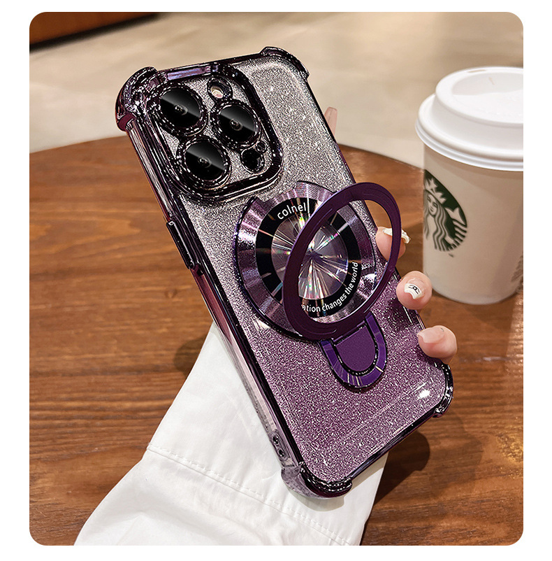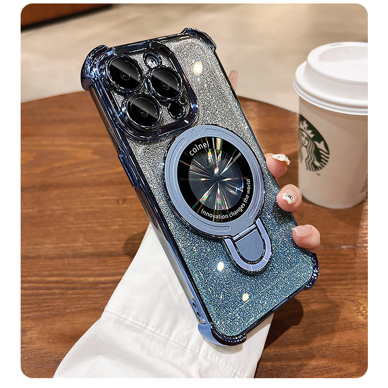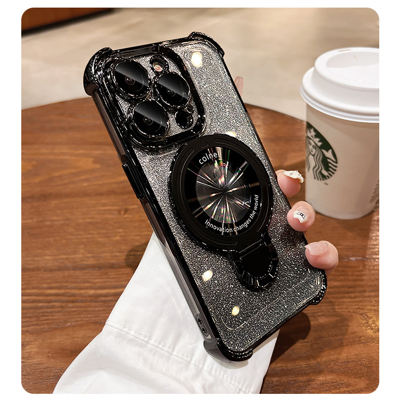 四角氣囊適用蘋果16透明手機殼iPhone17優盾磁吸支架閃粉保護套14