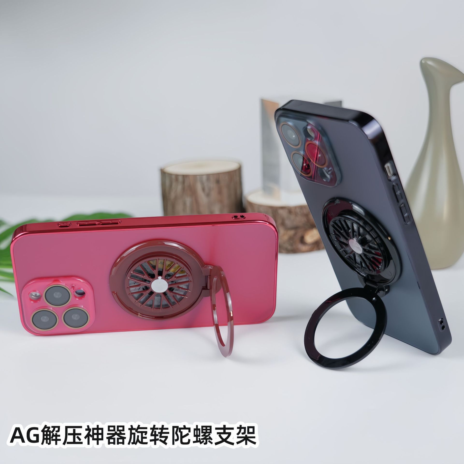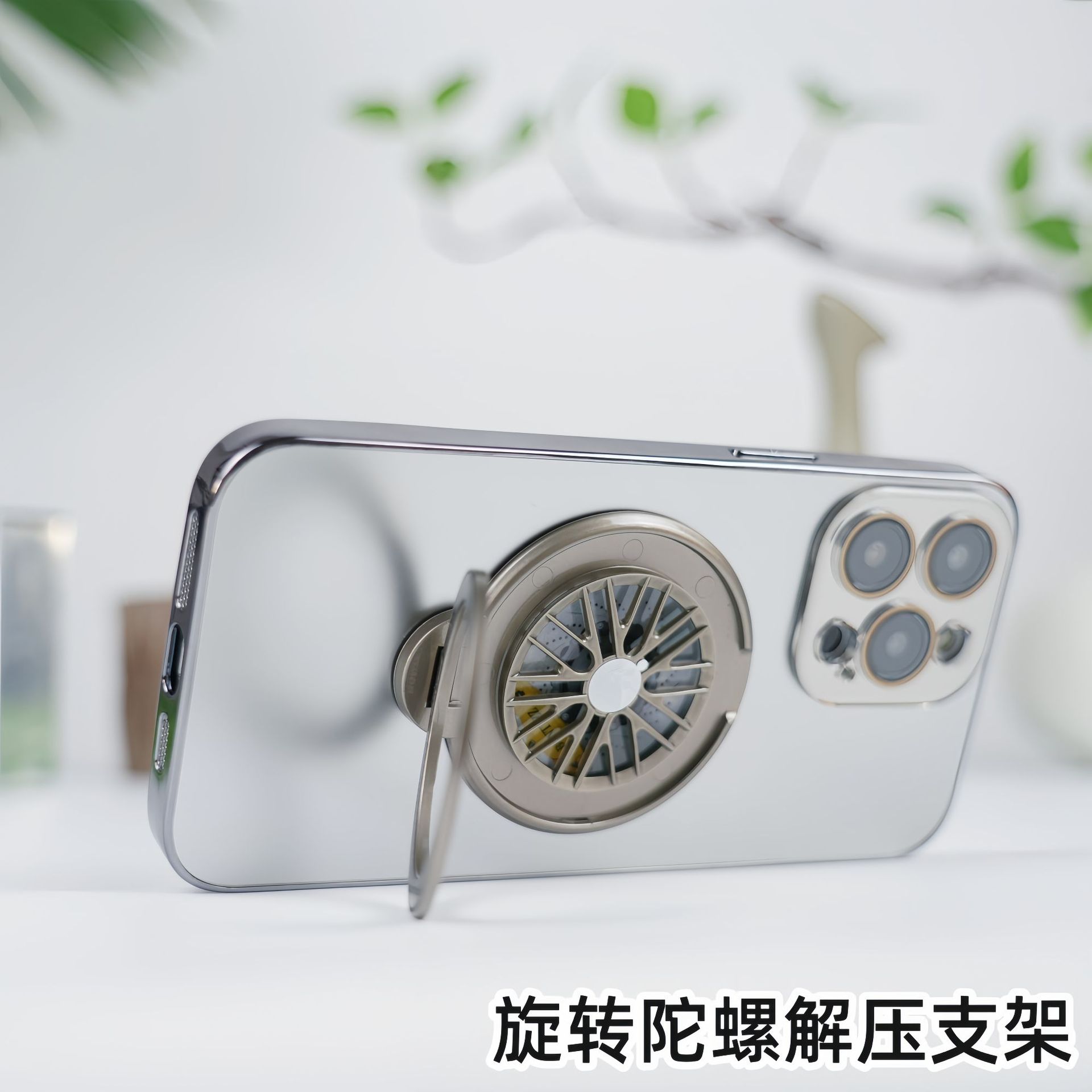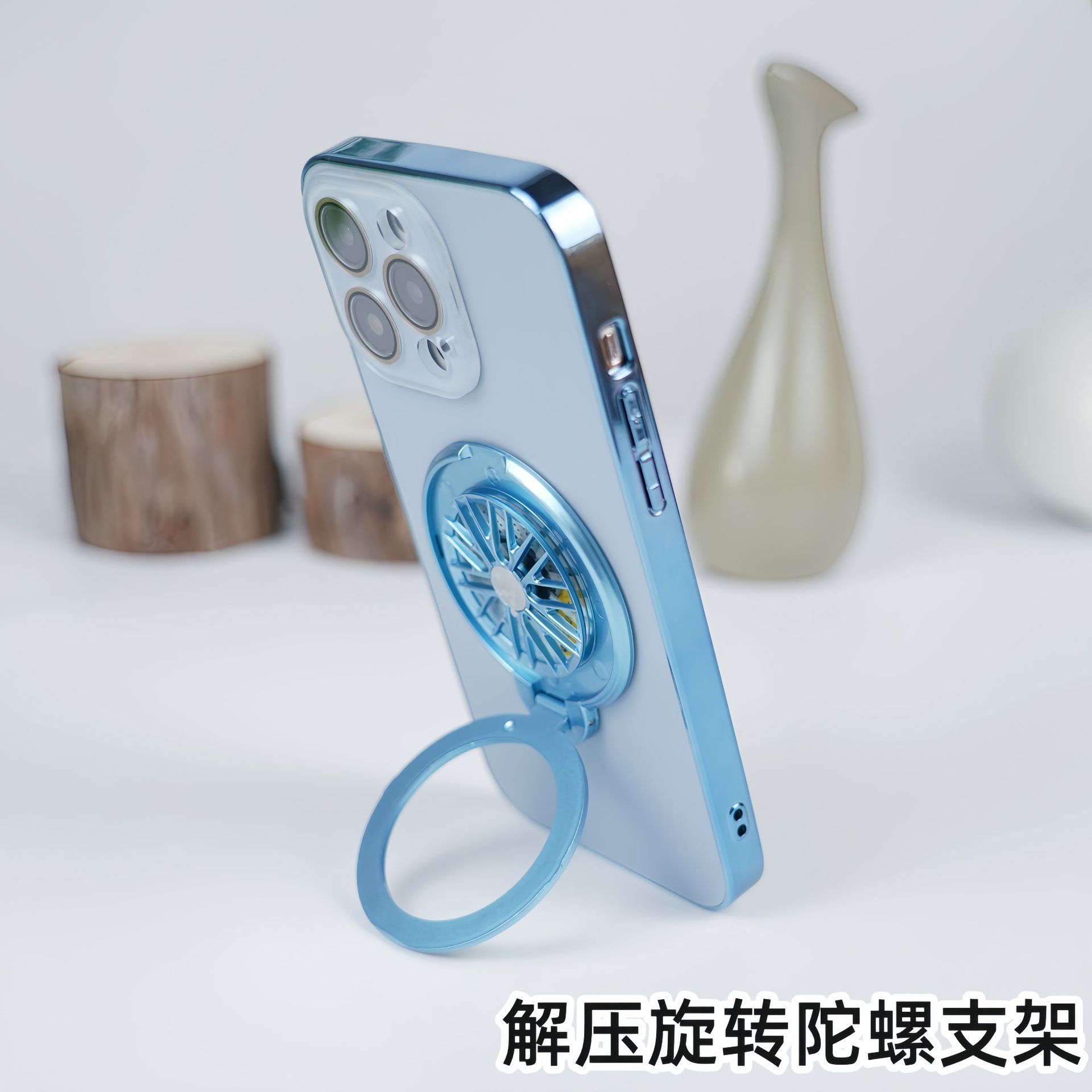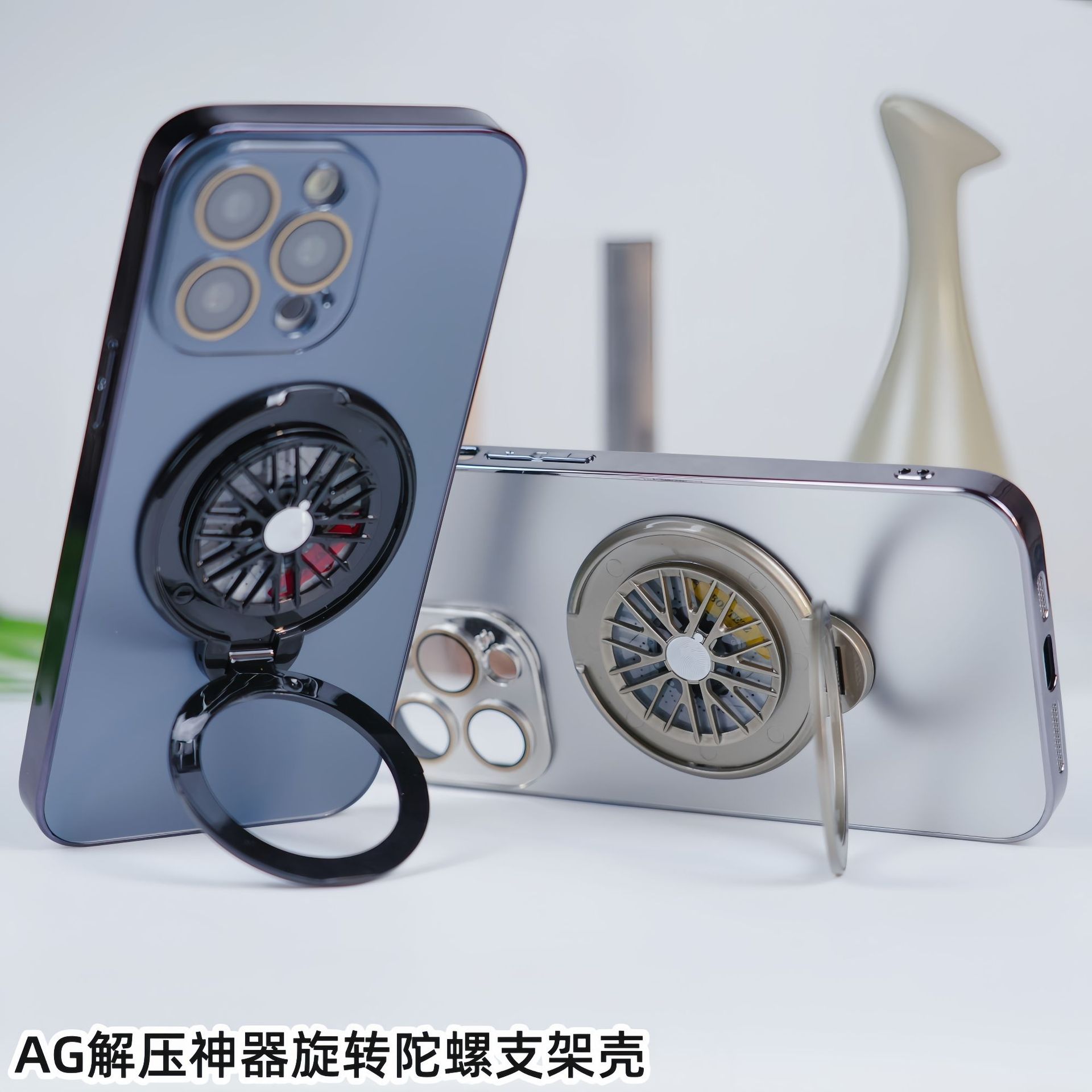 適用iPhone16手機殼AG磨砂電鍍旋轉陀螺磁吸支架蘋果15護鏡保護套