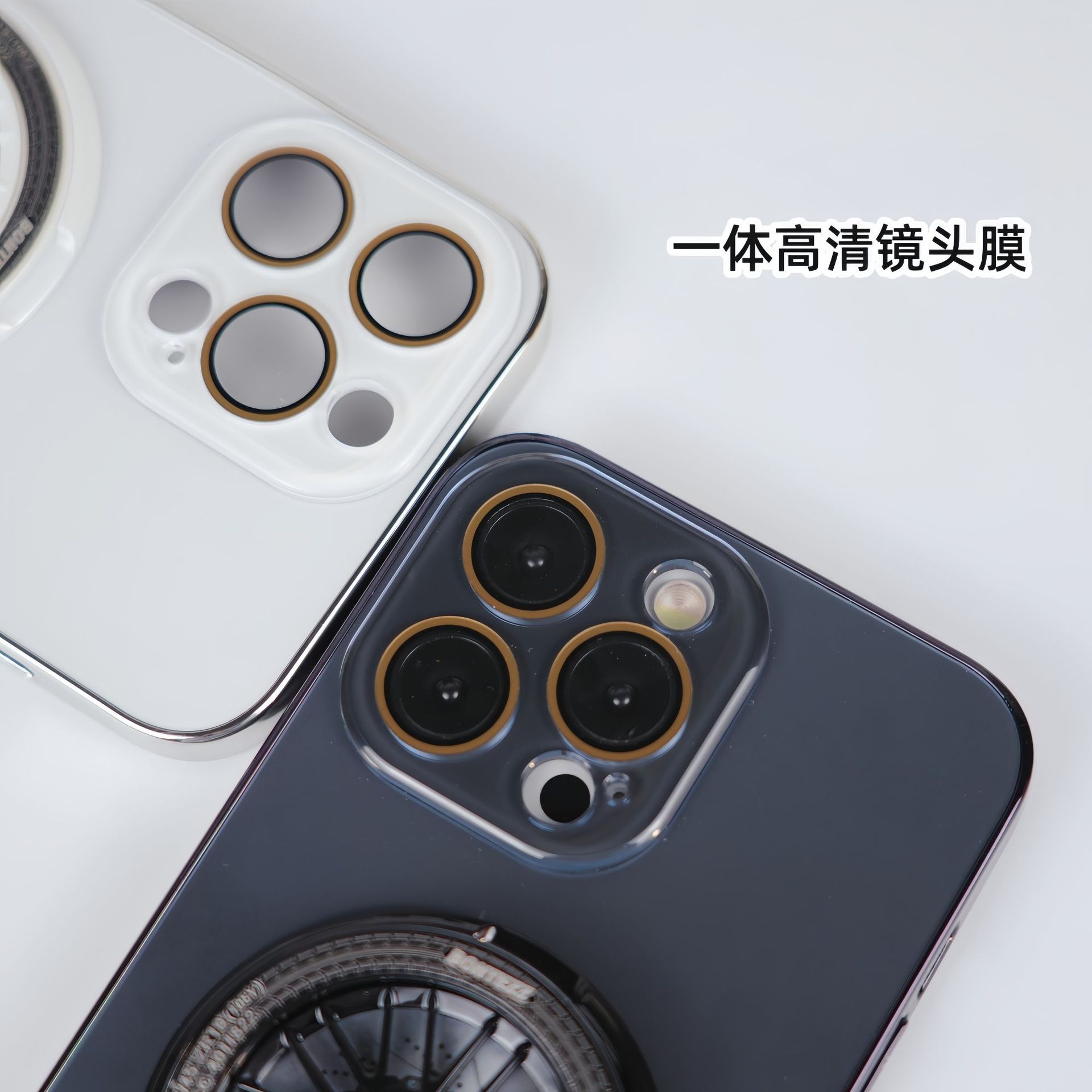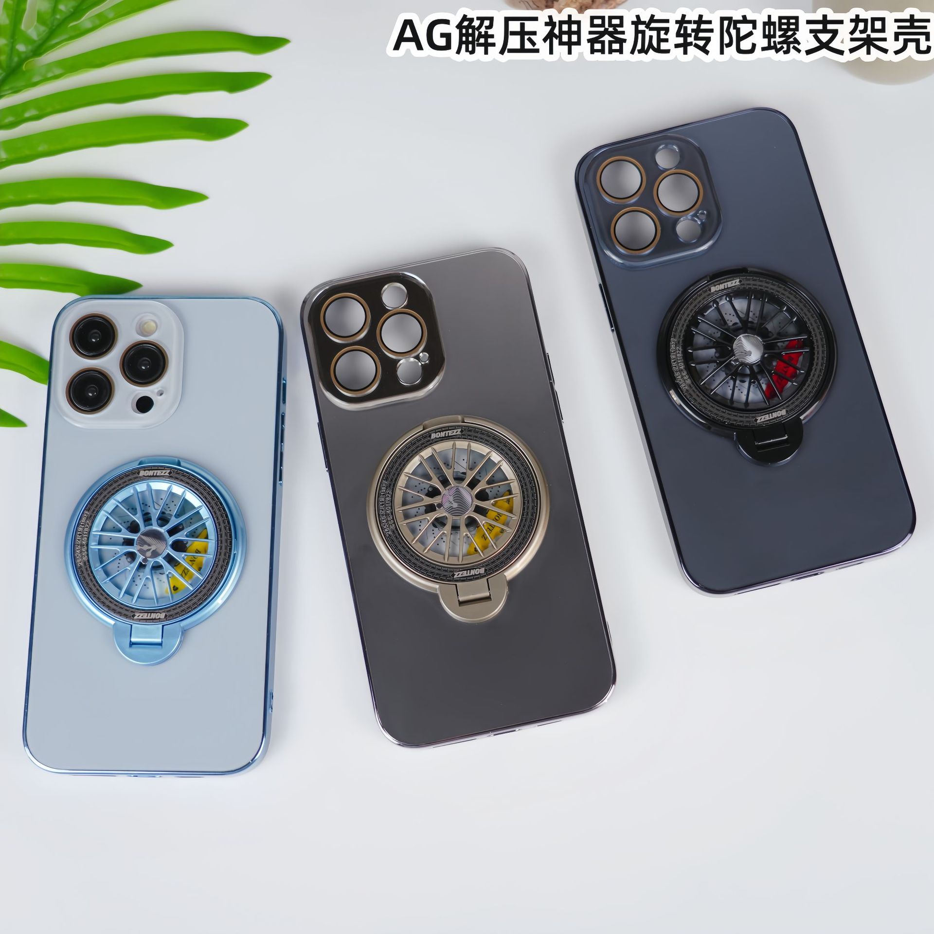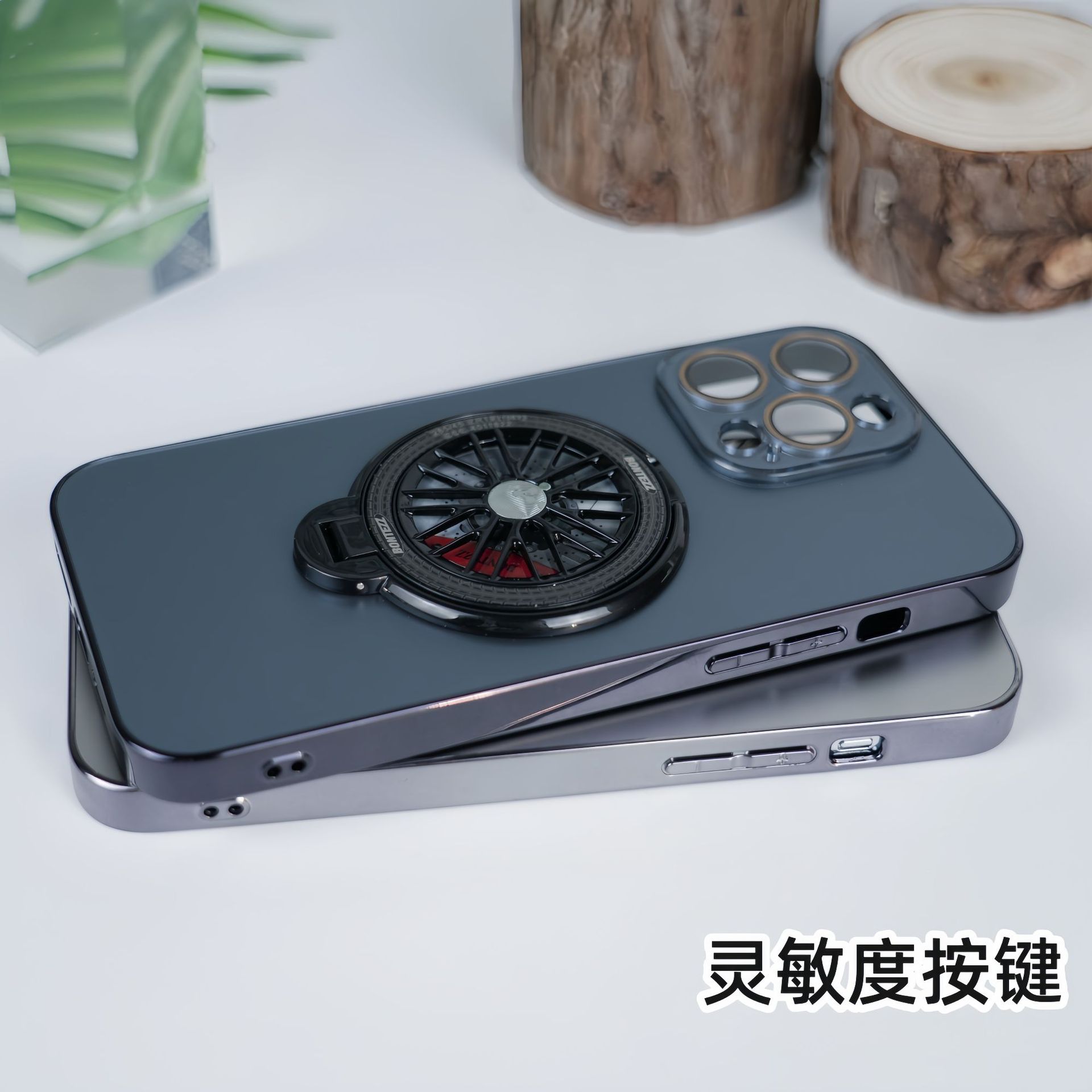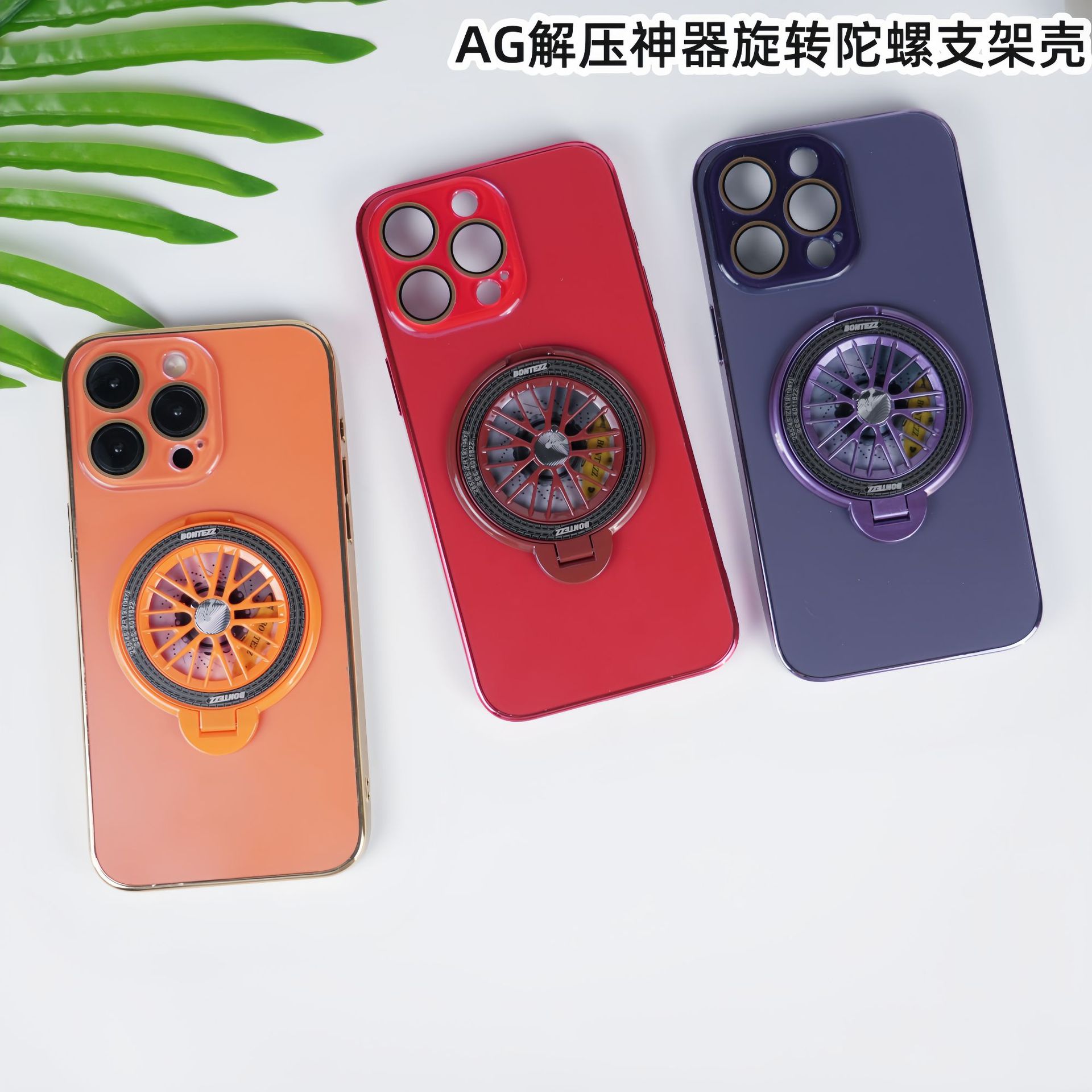 適用iPhone16手機殼AG磨砂電鍍旋轉陀螺磁吸支架蘋果15護鏡保護套