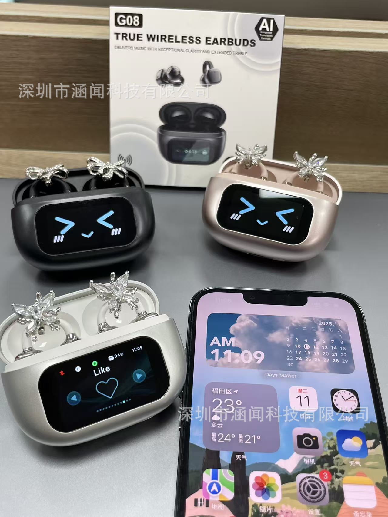 TK爆款G08繙譯彩色螢幕耳機HY-C02夾耳式無線耳機開放式觸控螢幕藍牙耳機