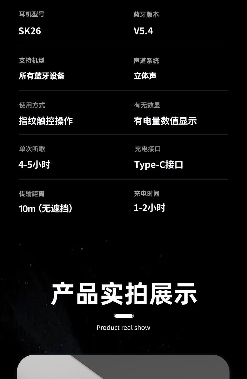 爆款SK26滑蓋藍牙耳機TWS超小迷你睡眠耳機新型5.4入耳式