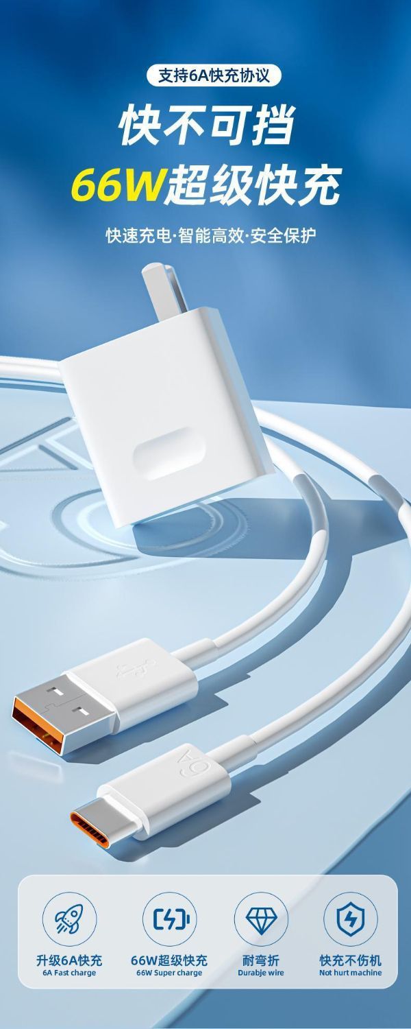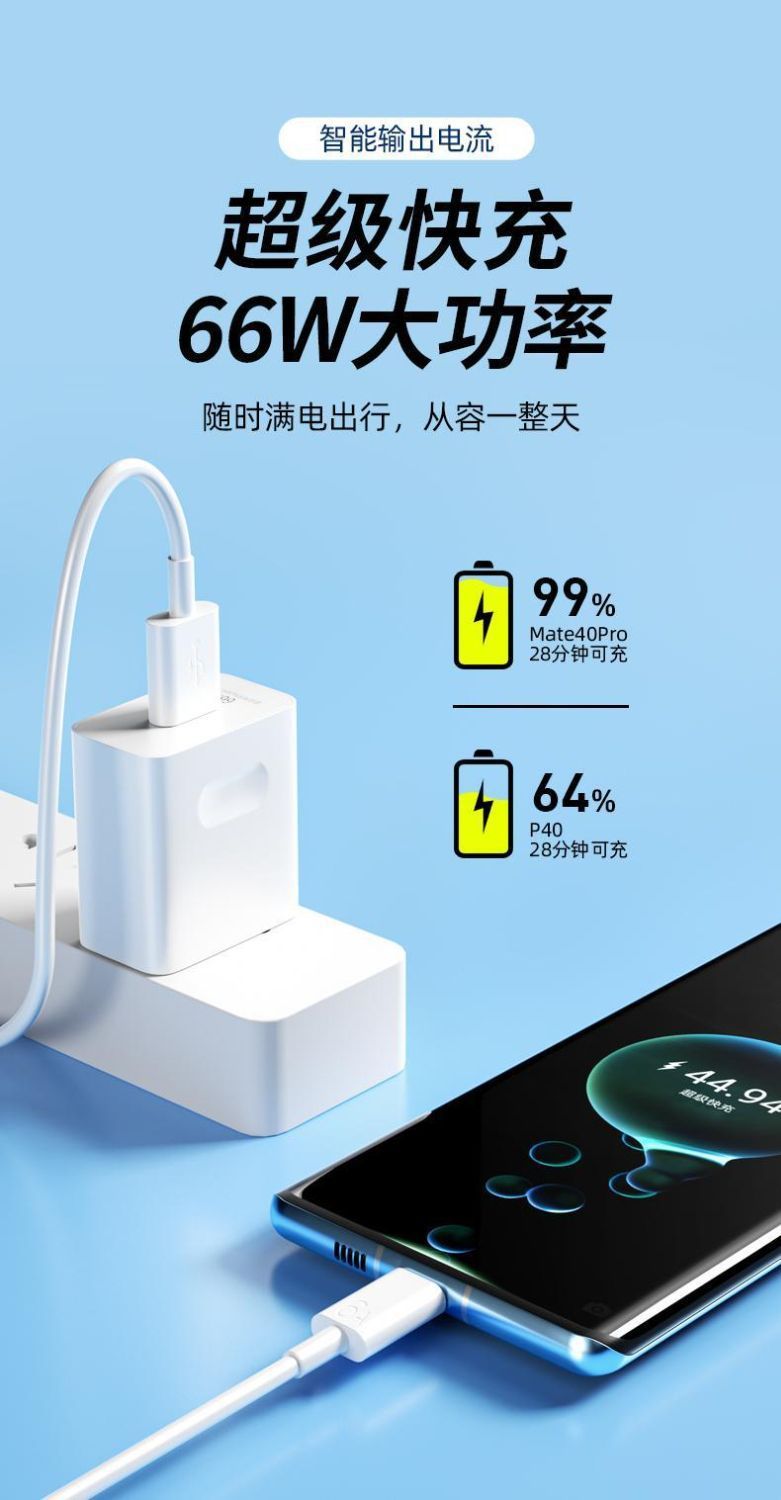 充電器適用於華爲66W超級快充頭數據線mate60P40榮耀充電器