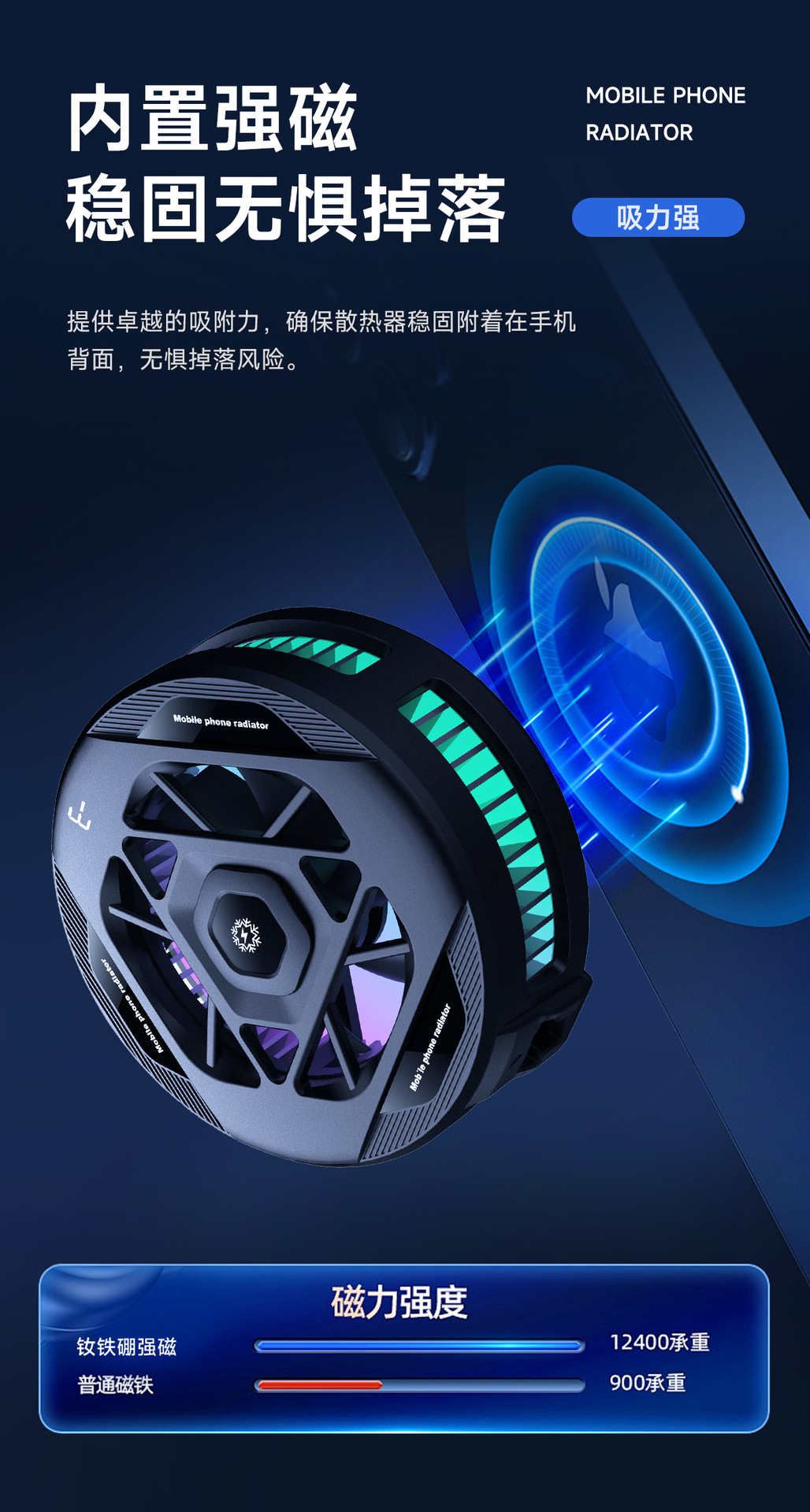 抖音2025新款TL22手機散熱器磁吸式磁吸背夾半導體溫度數顯可結冰