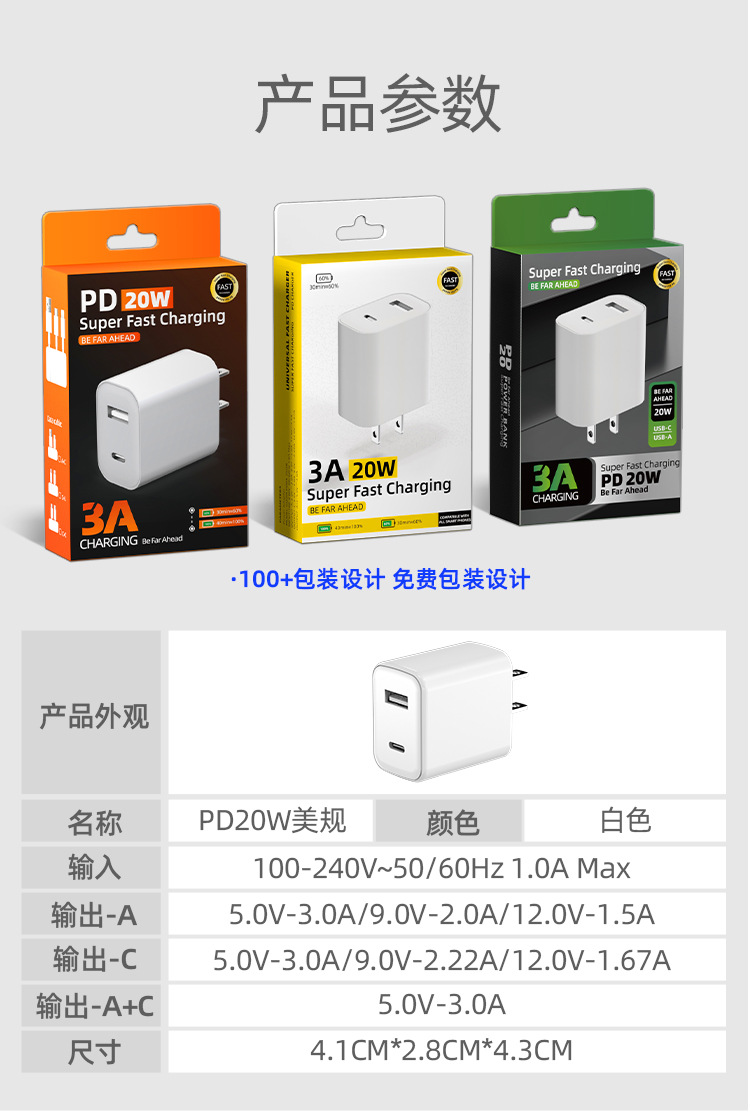 | 名稱 | 美規PD20W手機充電器單Type-c接口適用於蘋果15/14快充充電頭 |