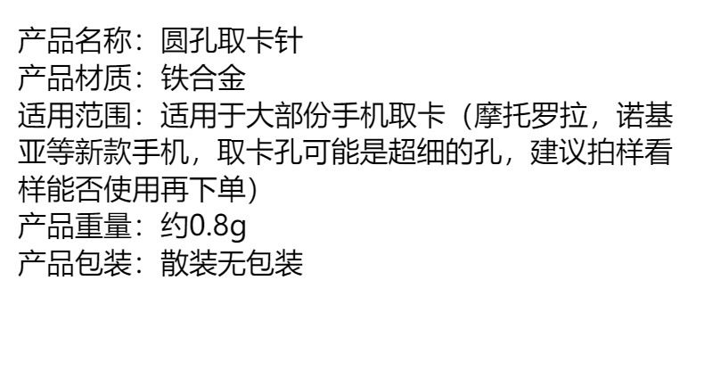 | 型號 | 圓孔取卡針 |