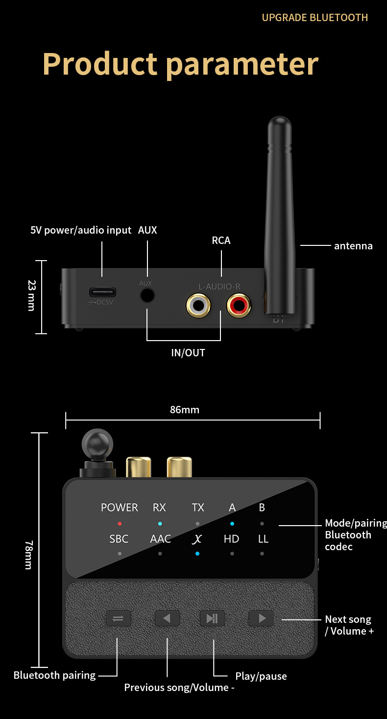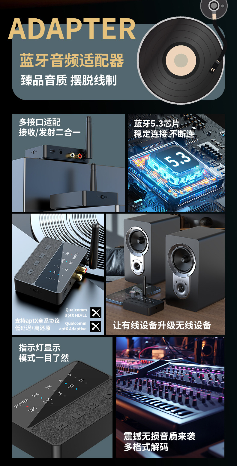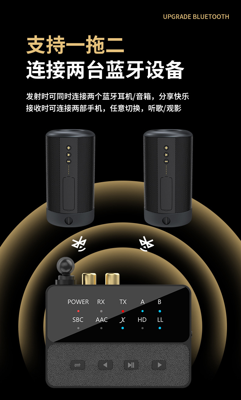 高通5.3藍牙變壓器藍牙接收發射2in1USB發射器hifi級音頻轉老功放