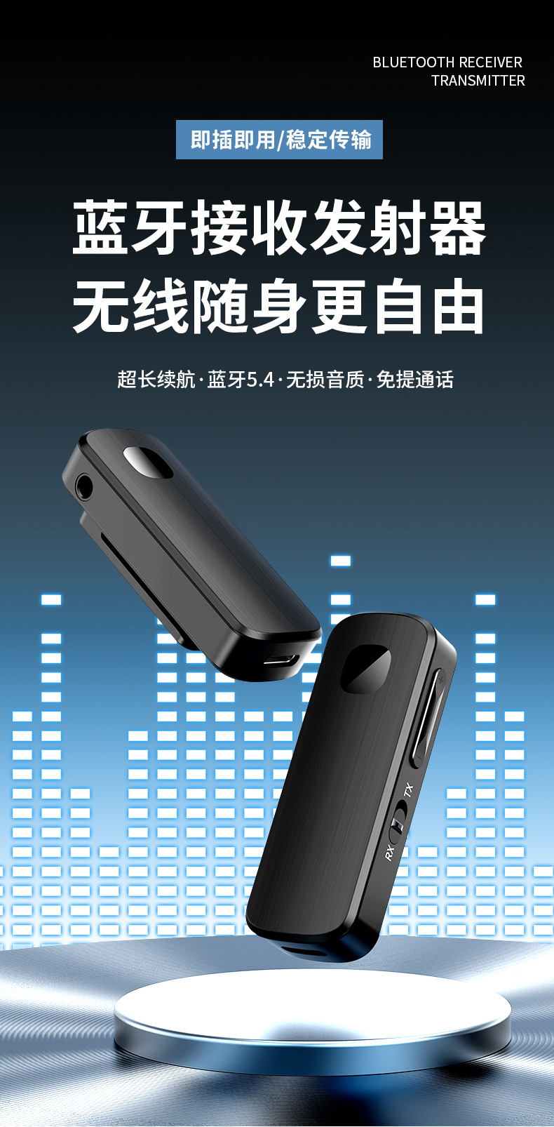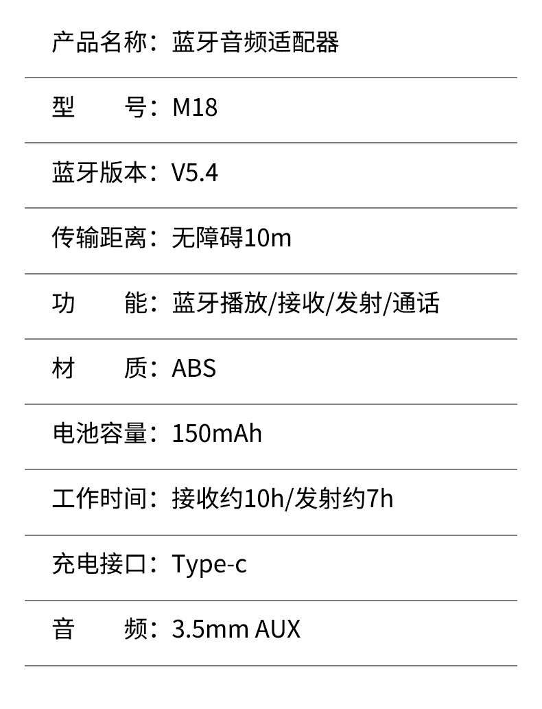 M18藍牙 5.4音頻發射器接收器 領夾電腦電視投影車用AUX通話導航