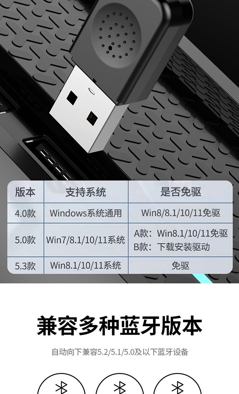 藍牙變壓器5.3桌上型電腦usb模塊筆電外接無線耳機滑鼠音響接收器