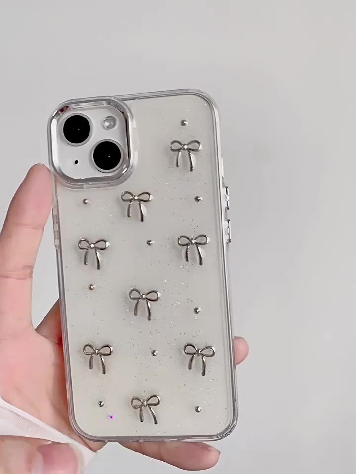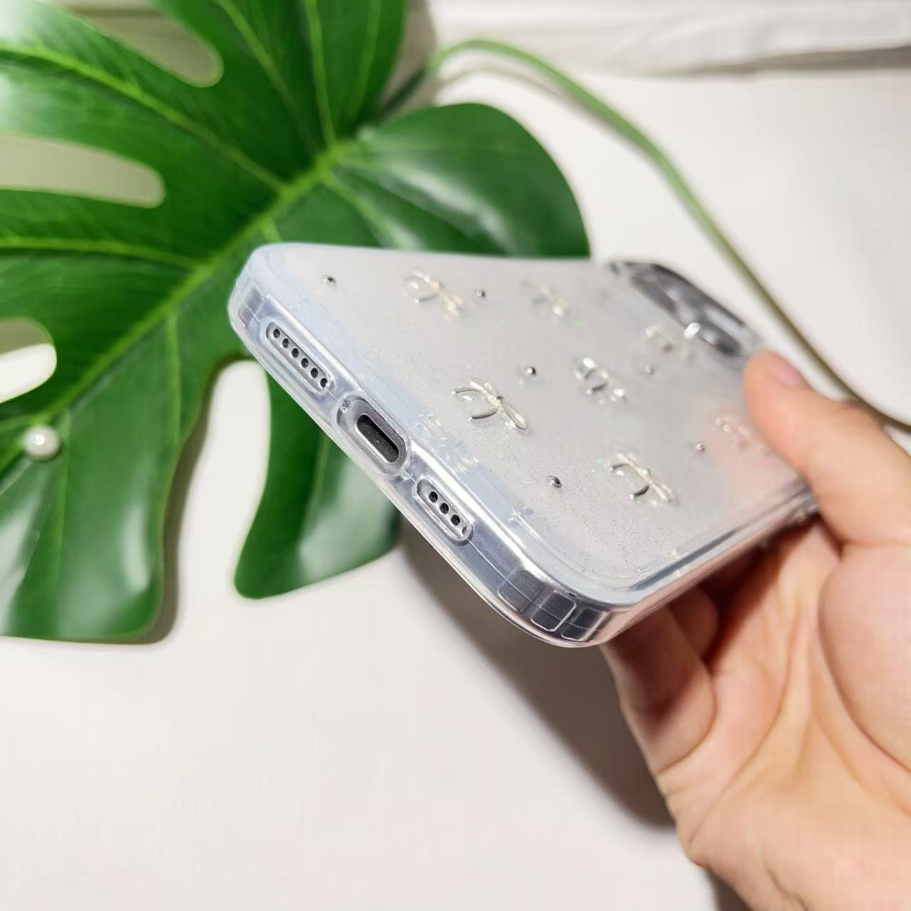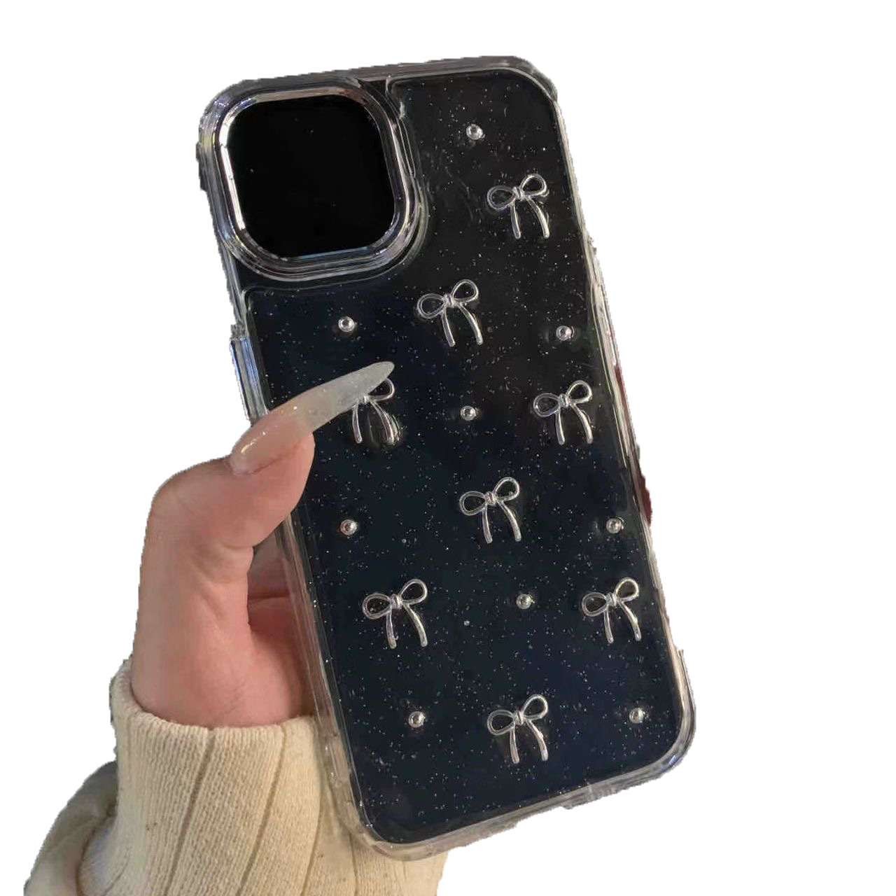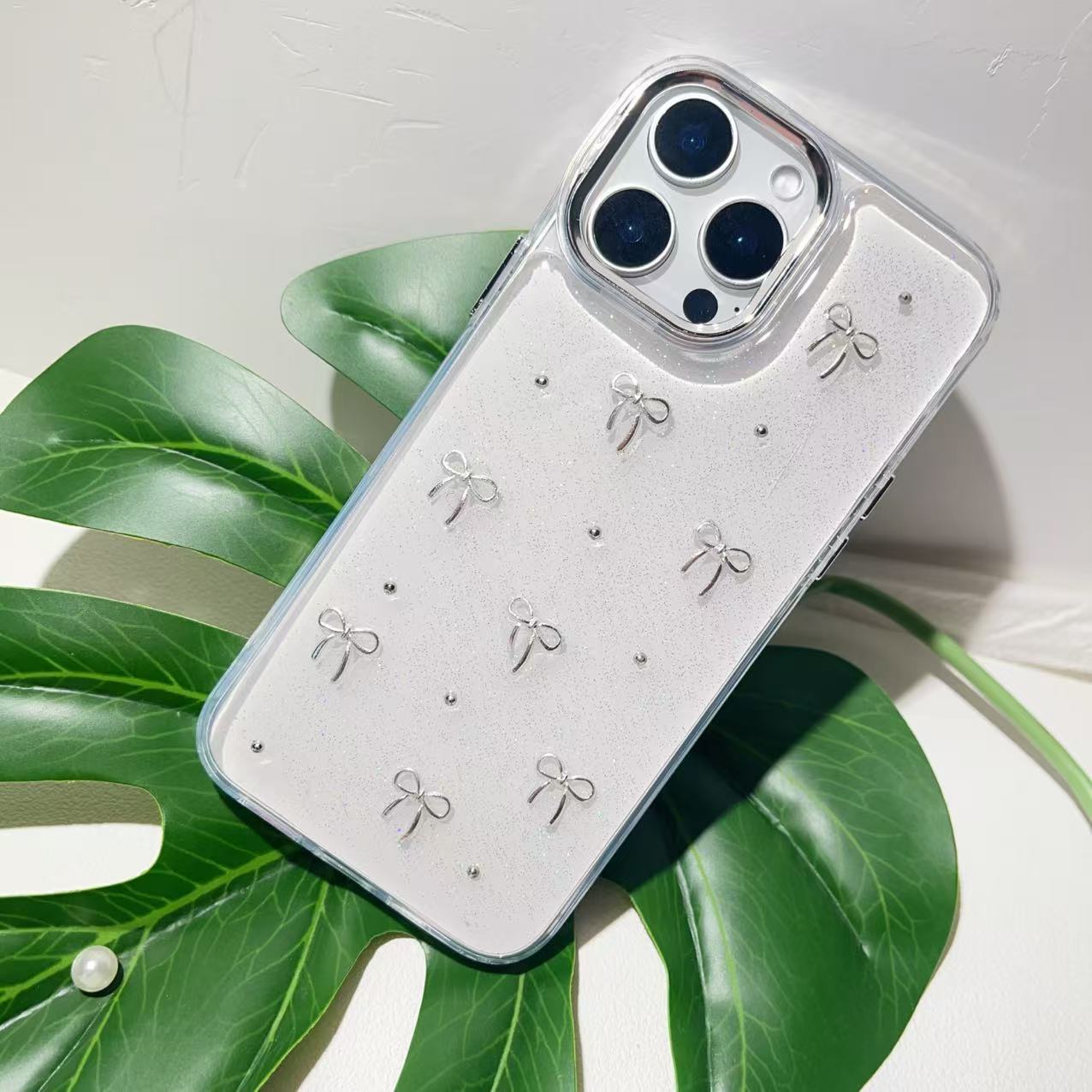 滴膠閃粉珍珠蝴蝶結iphone15手機殼適用蘋果16promax保護套銀框