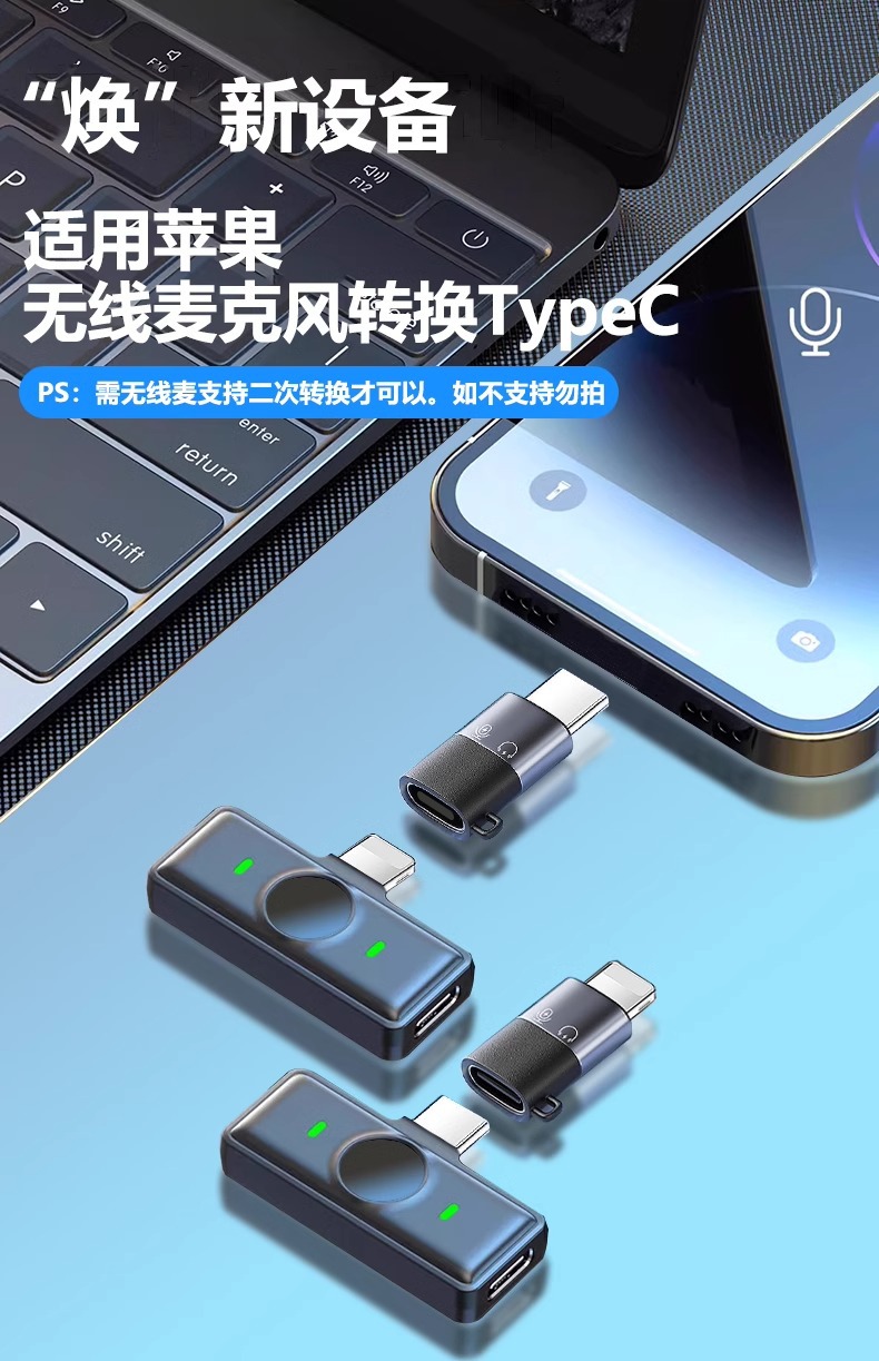 typec轉lighting手機轉換頭適用蘋果轉typec直播無線領夾式接收器