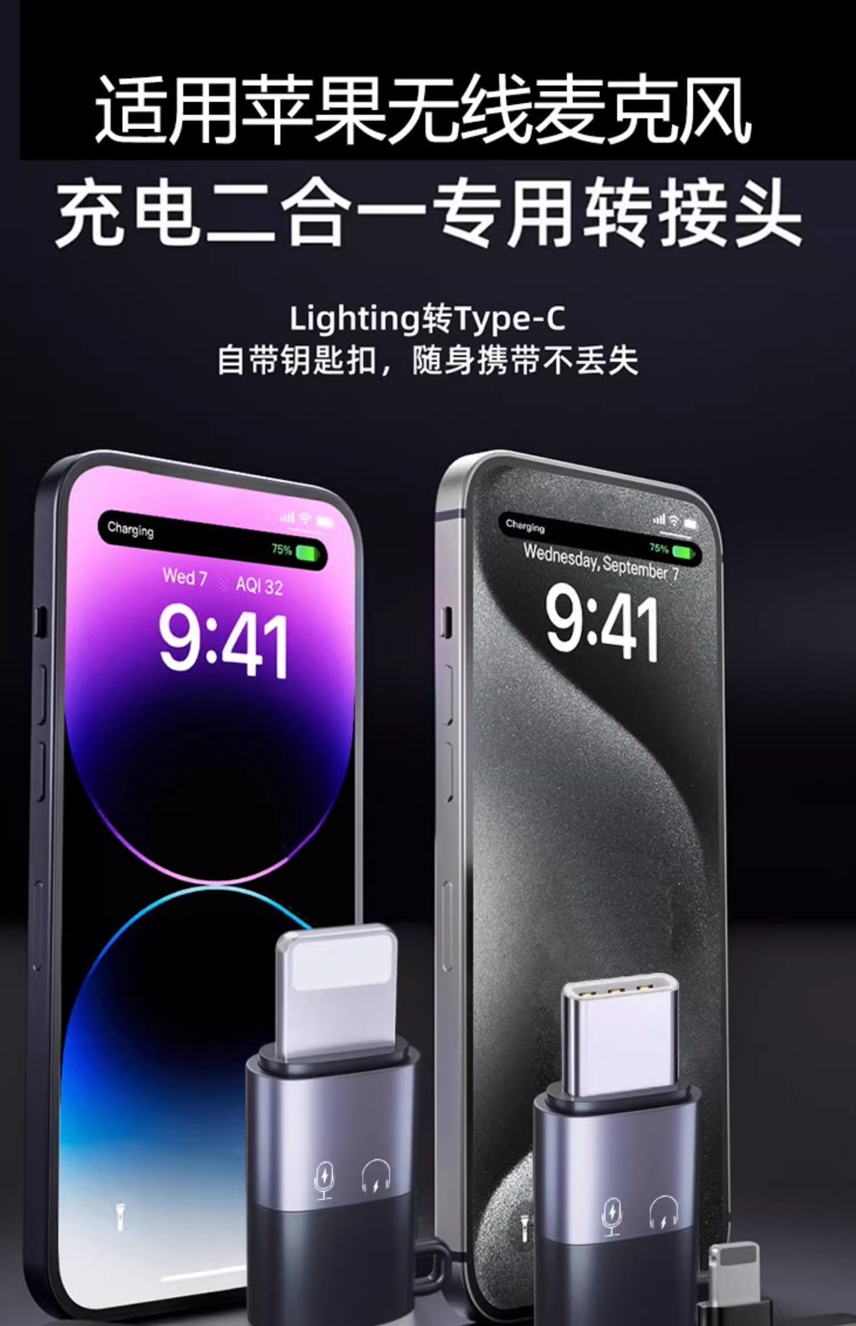 | 接口形式 | 適用蘋果轉Type-C【領夾麥克風/直播】黑灰色 |