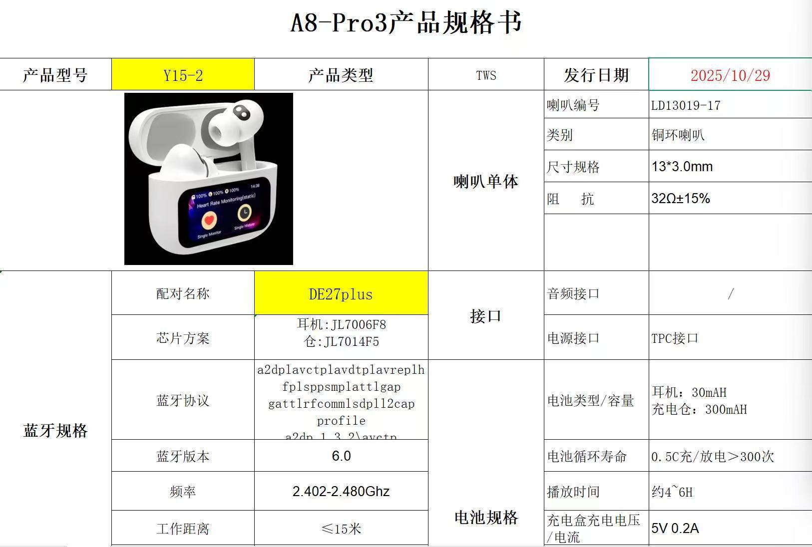 新品AI心率血氧AI繙譯降噪耳機智能通話pro3入耳式遊戯無線藍