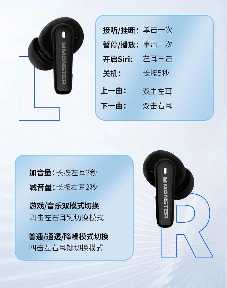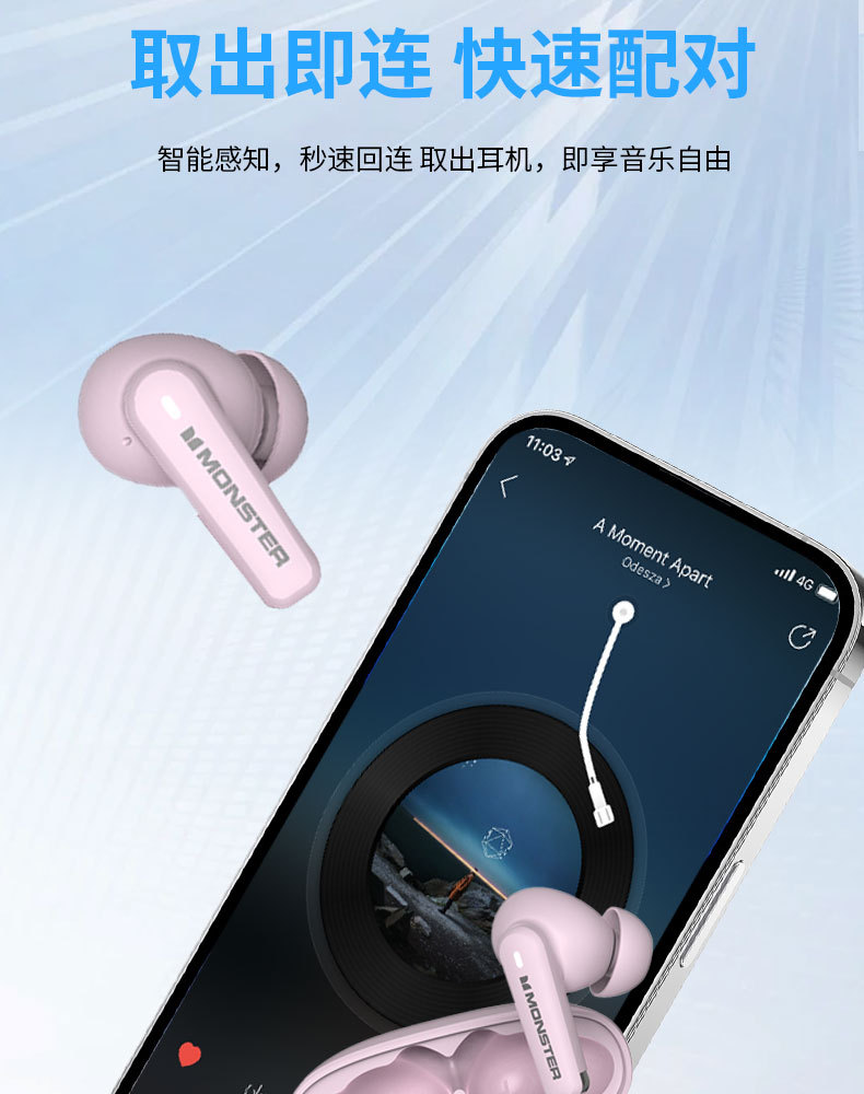 魔聲新款降噪耳機XT02入耳式無線藍牙低延遲運動遊戯音樂超長續航