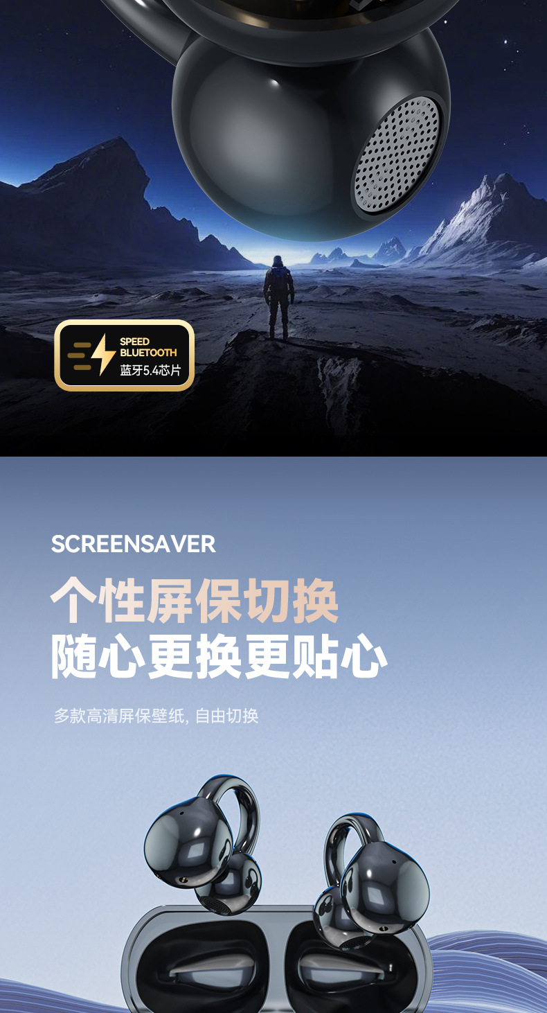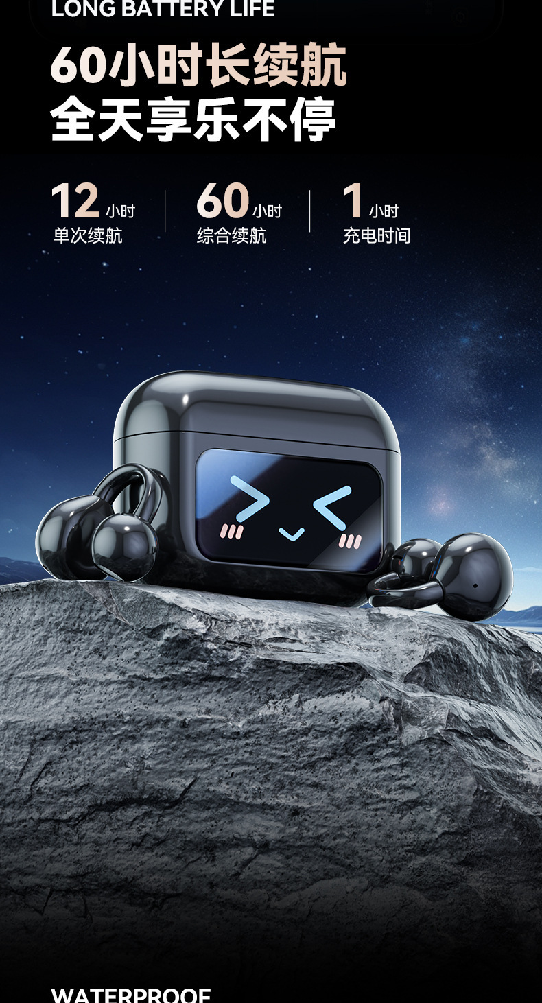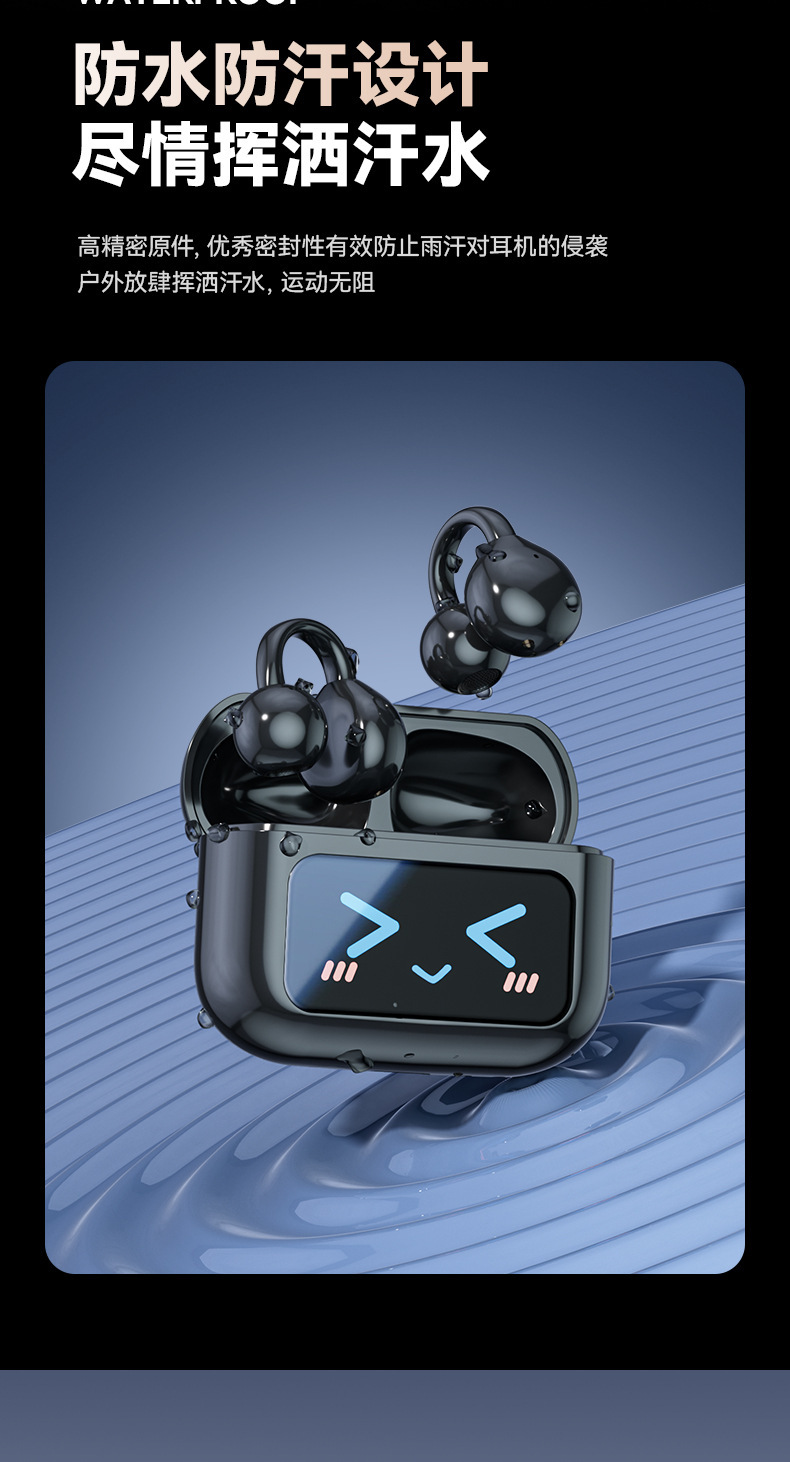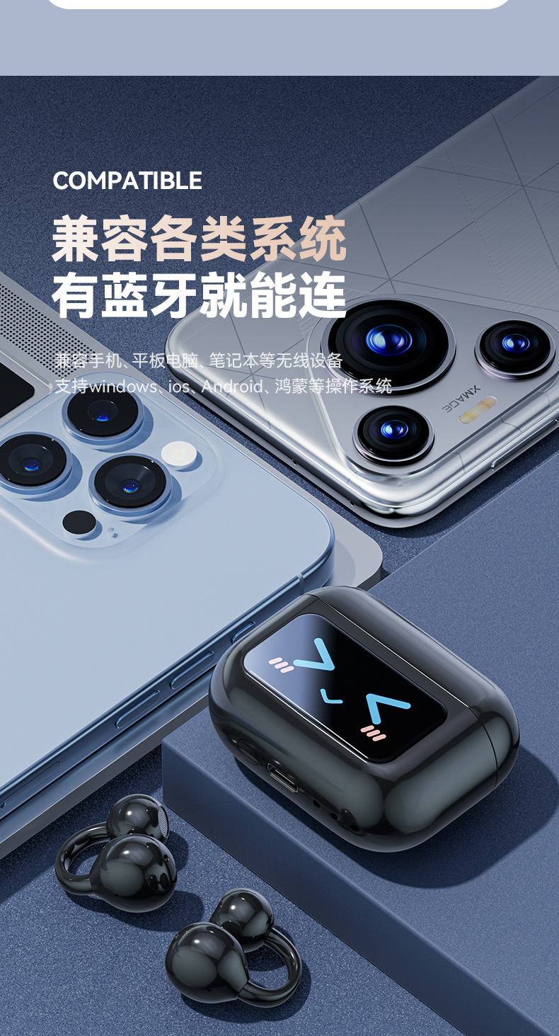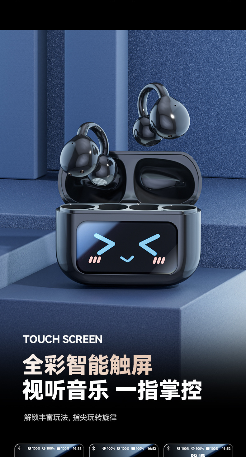 2026新款藍牙耳機無線帶螢幕運動夾耳式M100氣骨傳導降噪耳機長續
