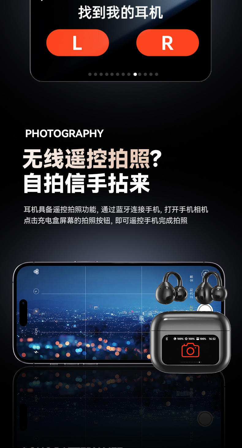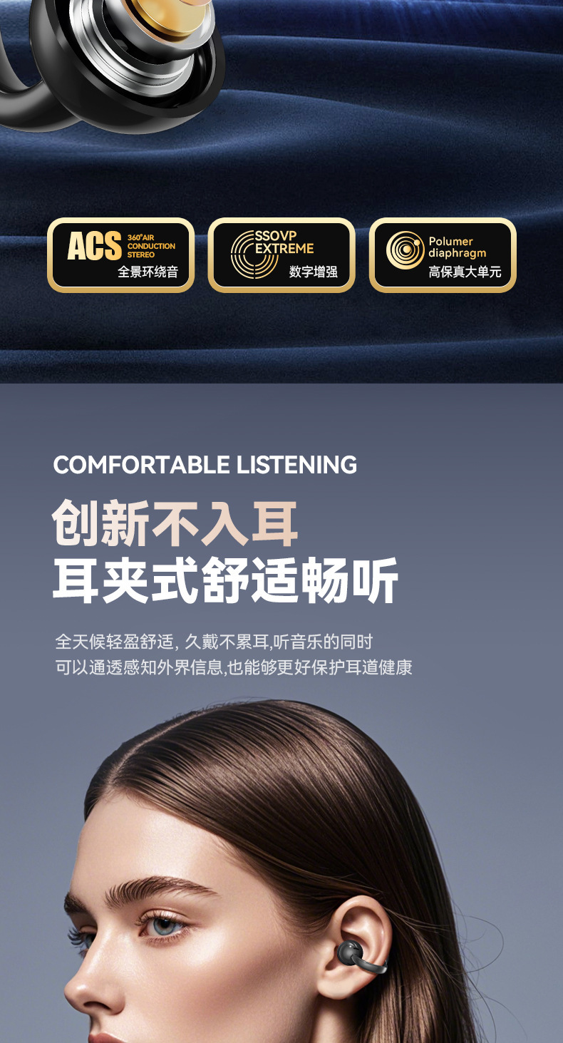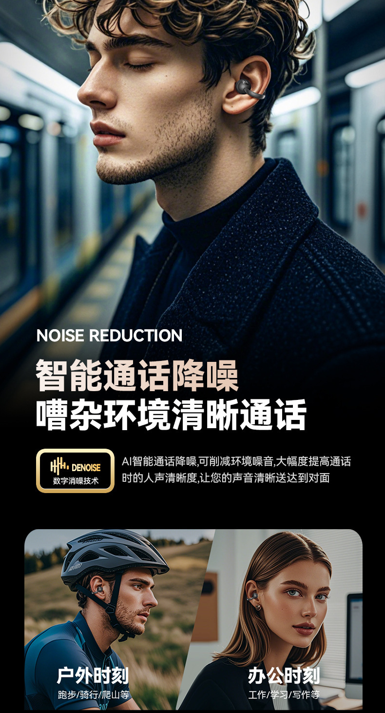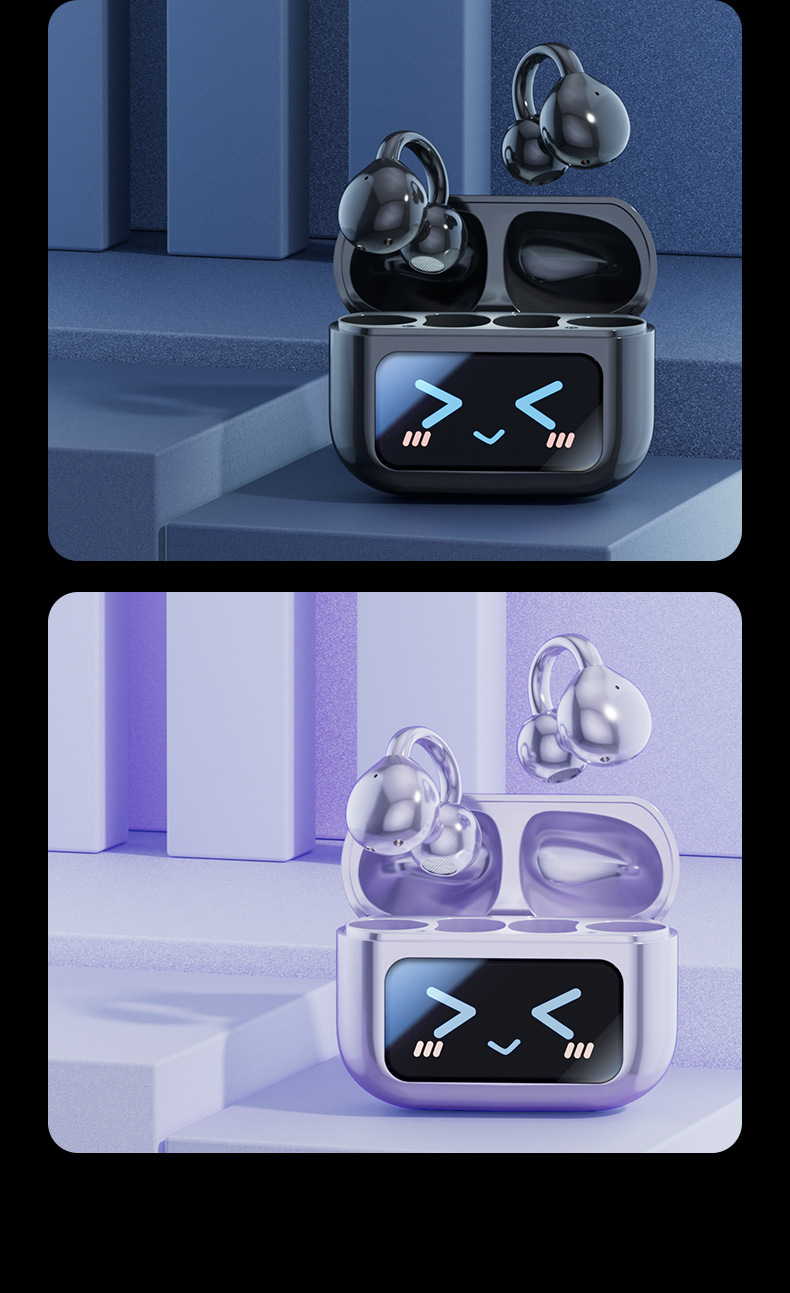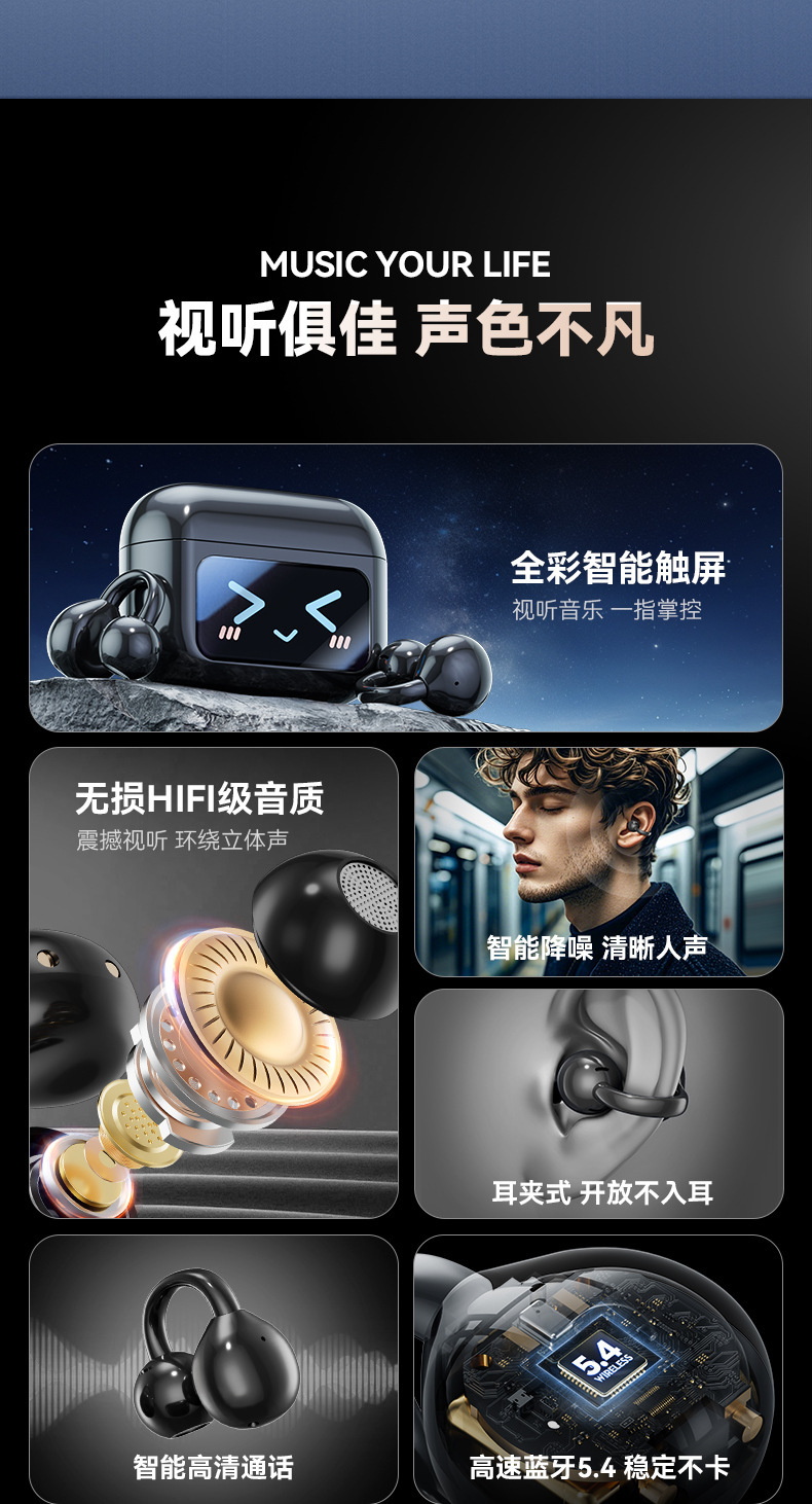 2026新款藍牙耳機無線帶螢幕運動夾耳式M100氣骨傳導降噪耳機長續