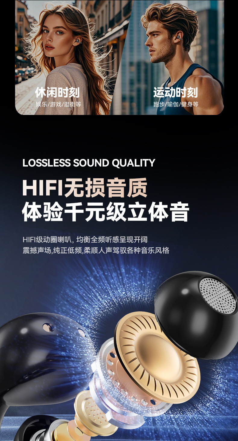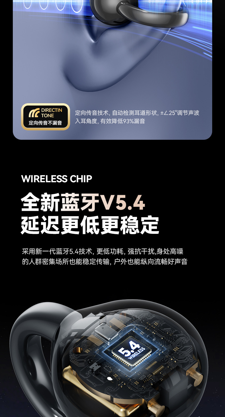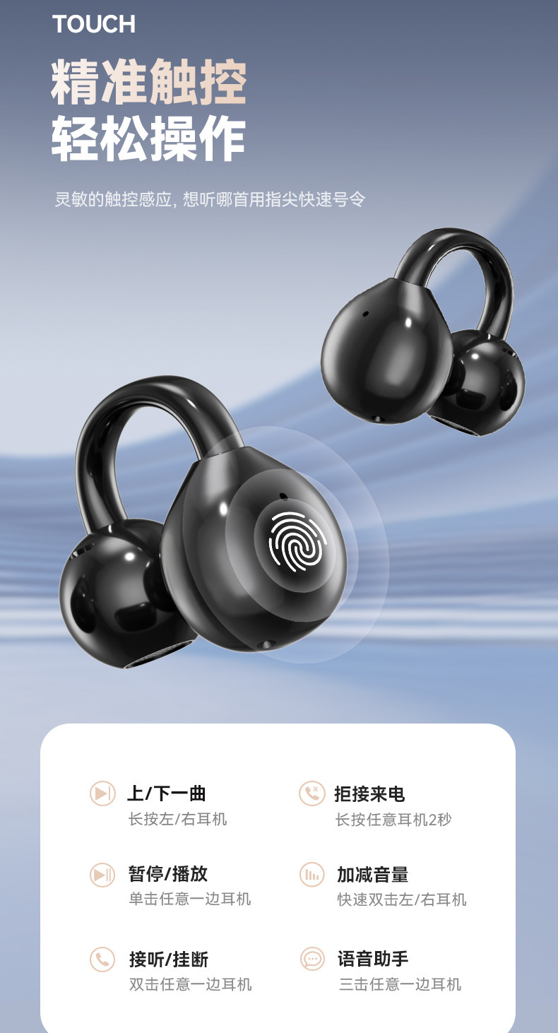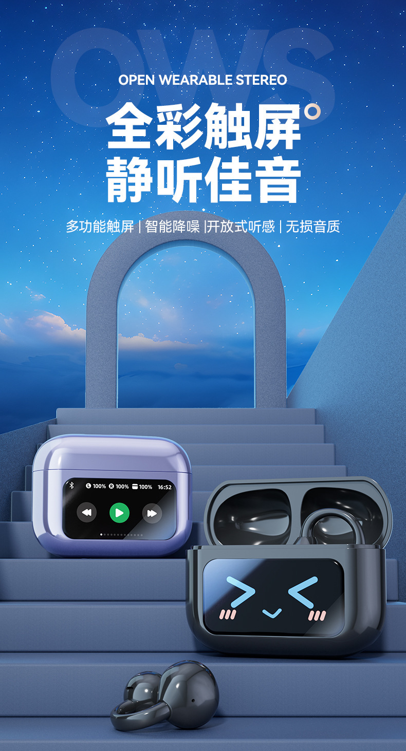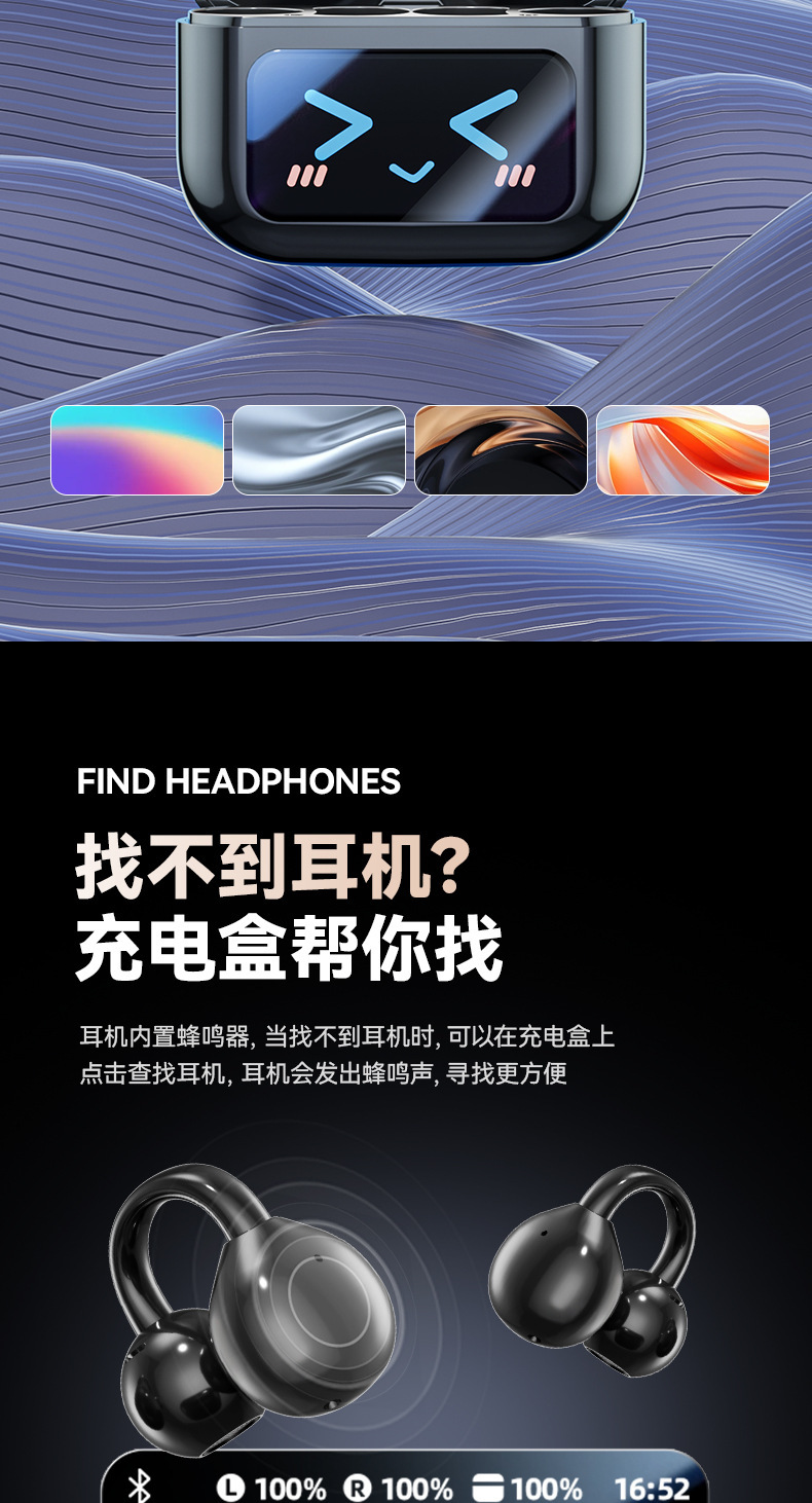 2026新款藍牙耳機無線帶螢幕運動夾耳式M100氣骨傳導降噪耳機長續