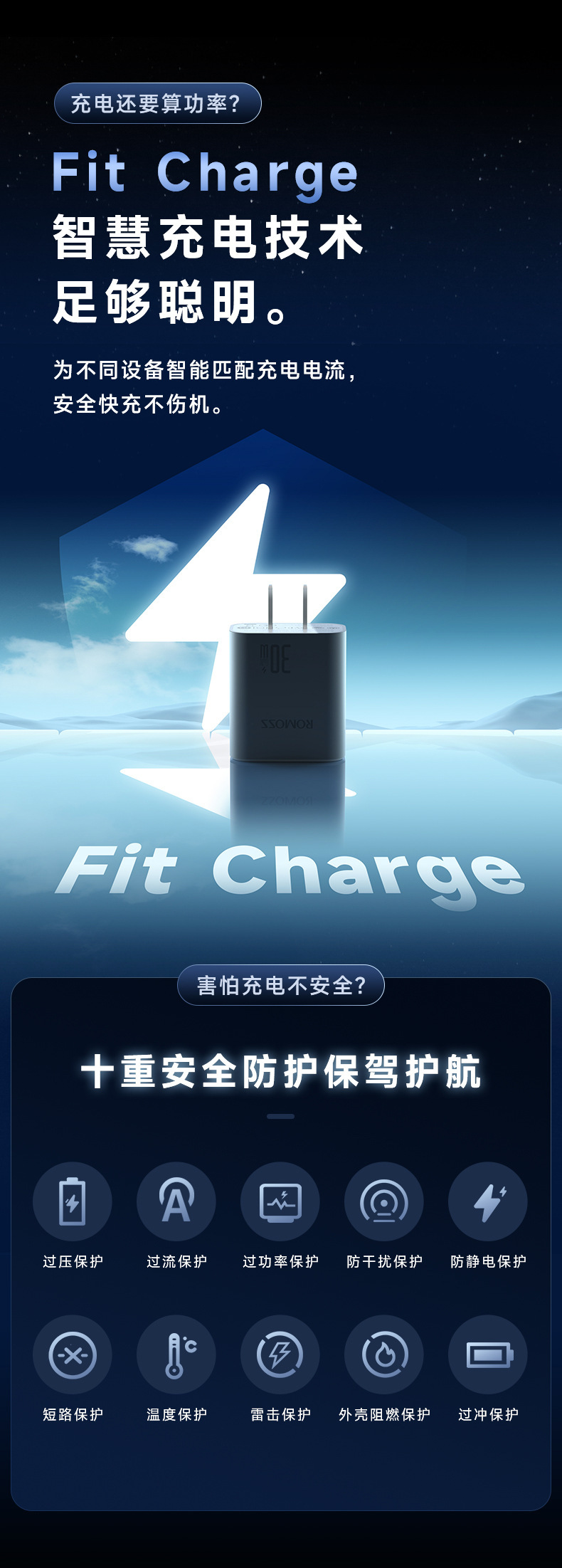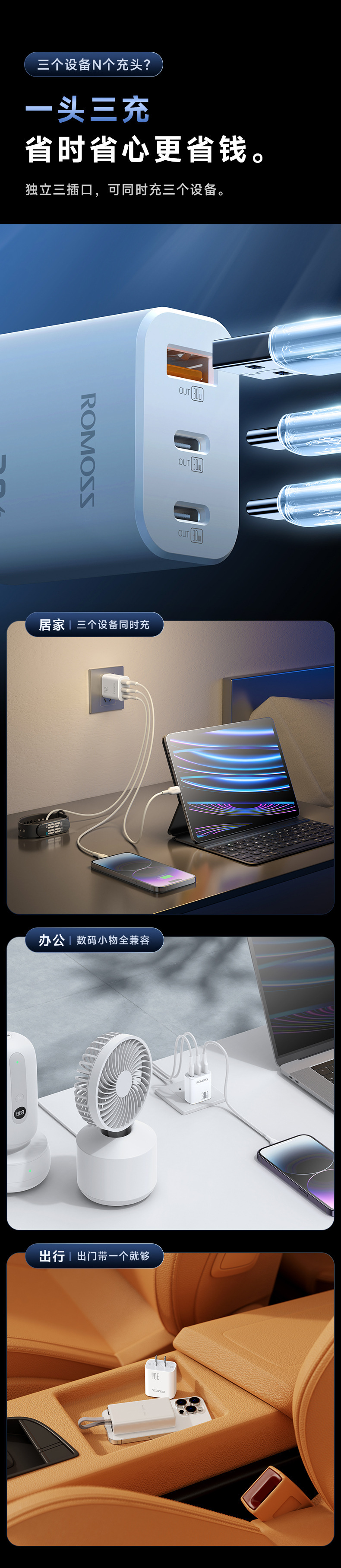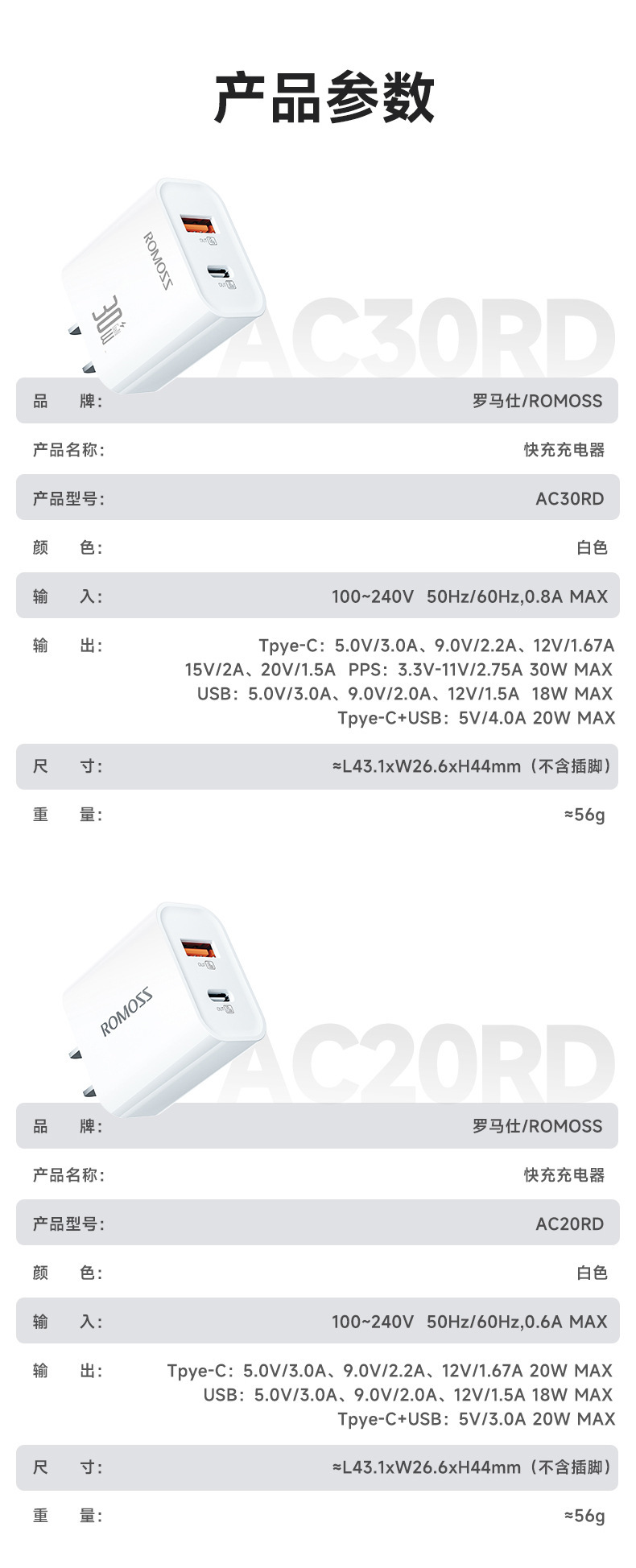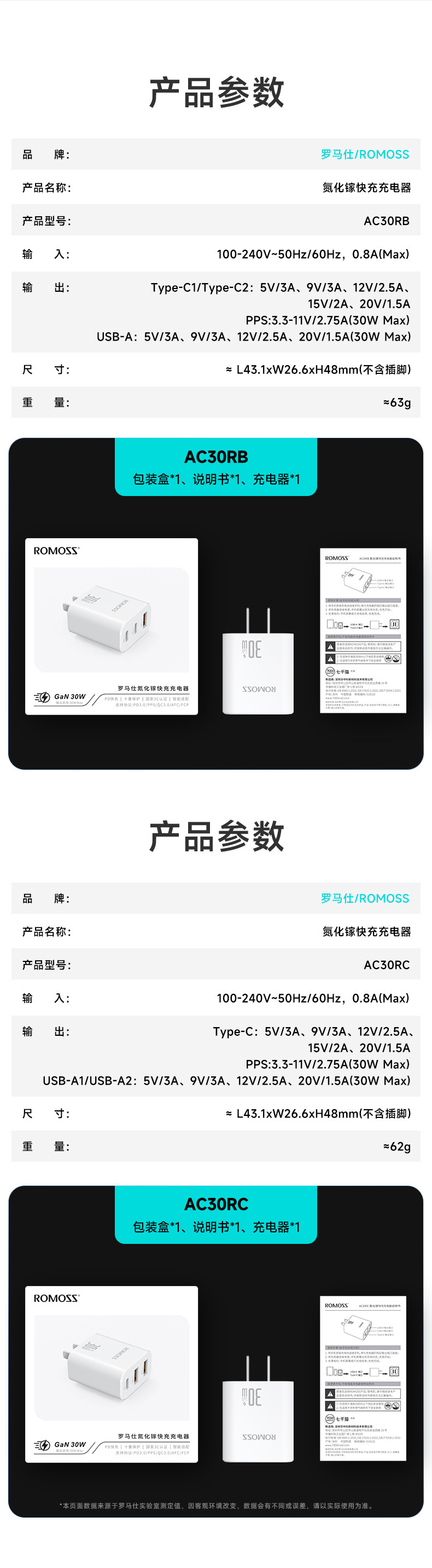 羅馬仕充電頭PD30W三口氮化鎵充電器適用蘋果華爲小米手機快充頭