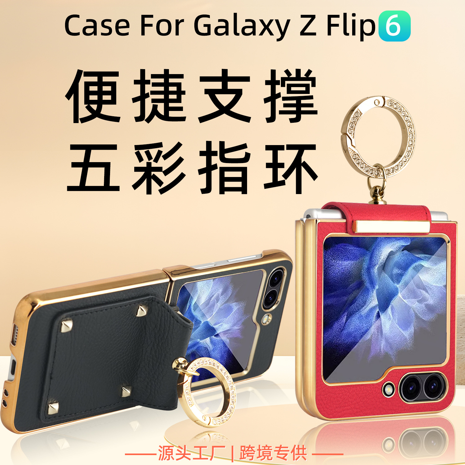 爆款適用三星zflip6電鍍指環支架防摔手機殼日韓flip5保護殼