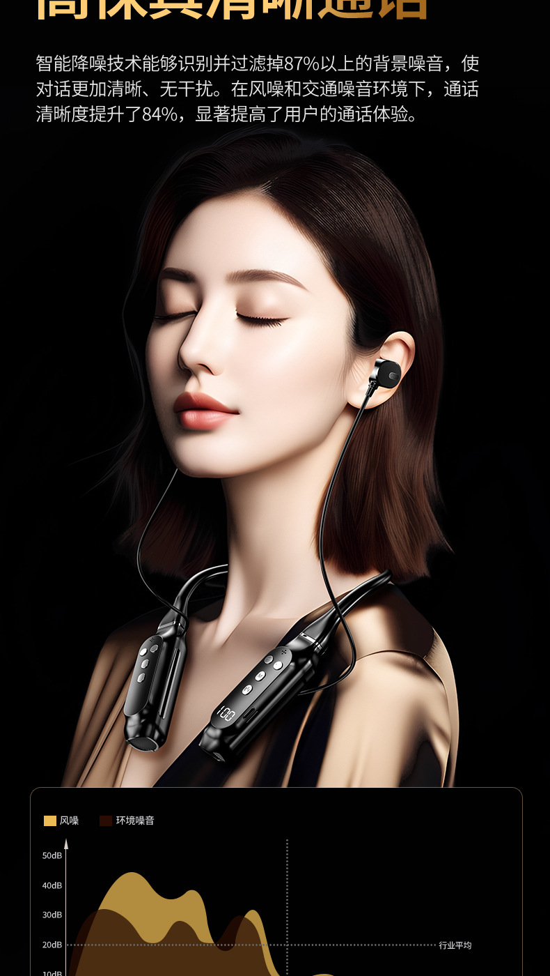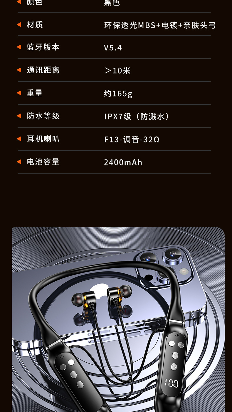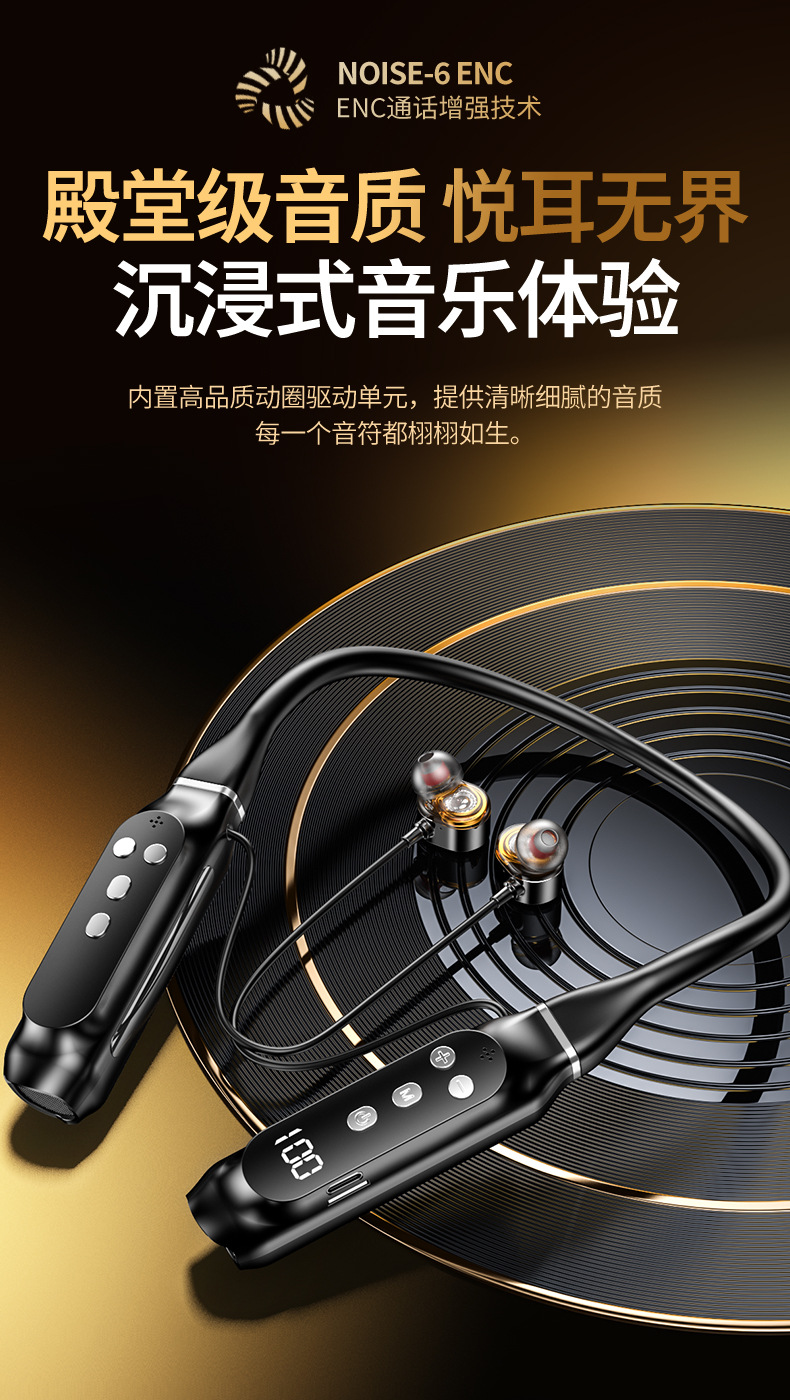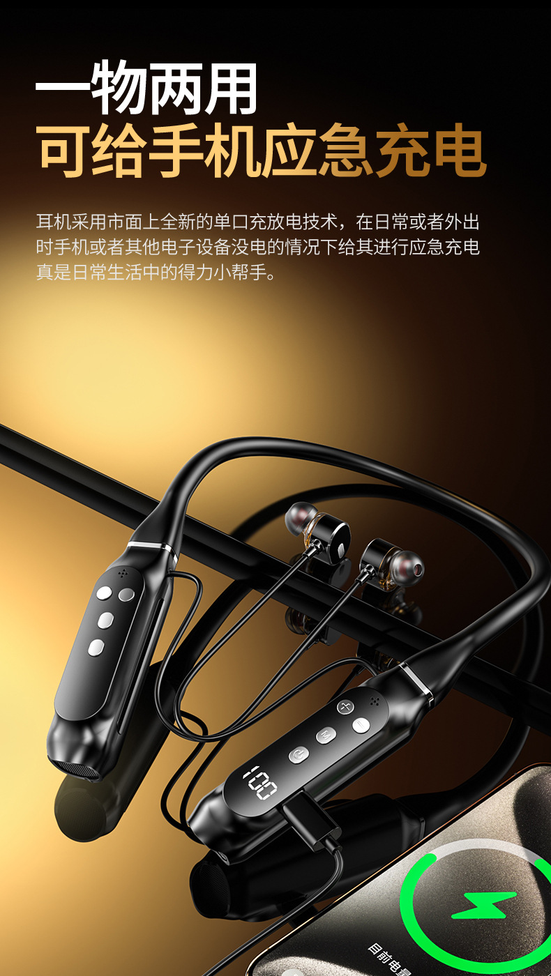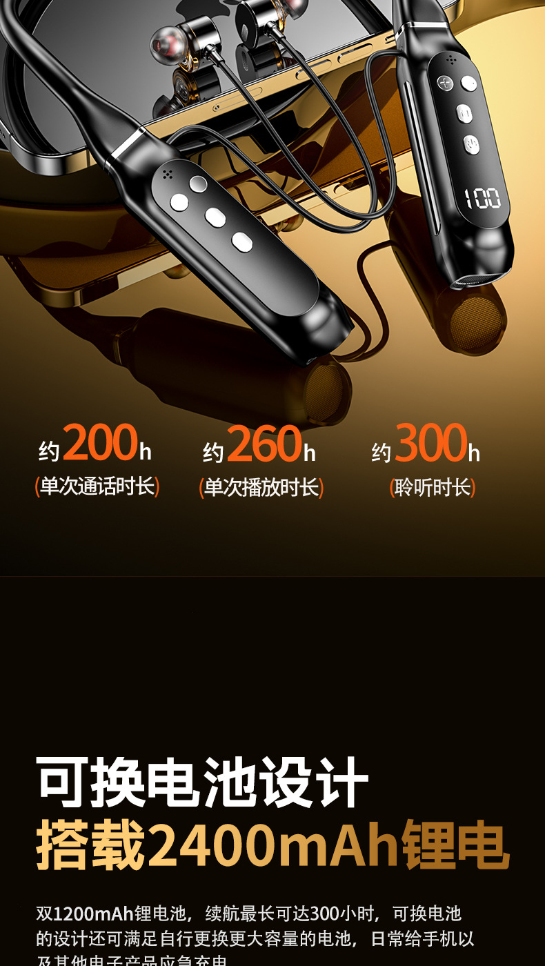 超長待機無線藍牙耳機掛脖式藍牙5.4芯大電量高音質新品
