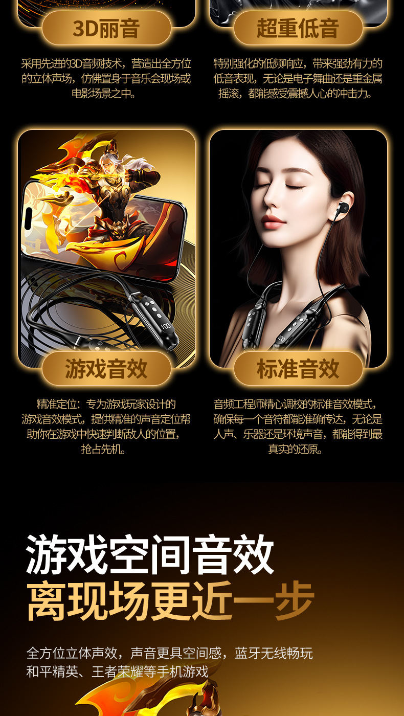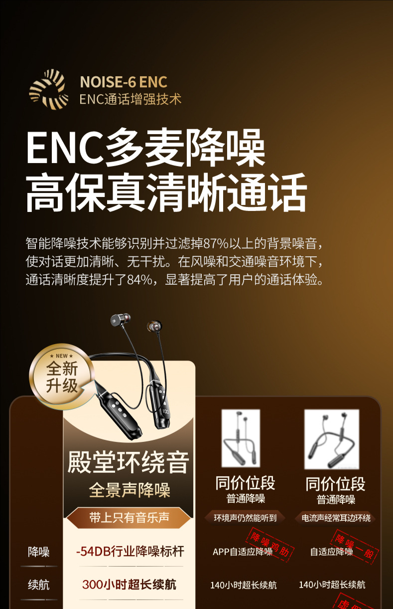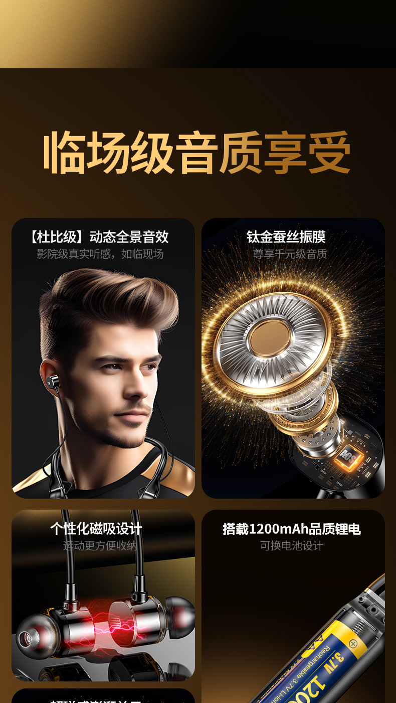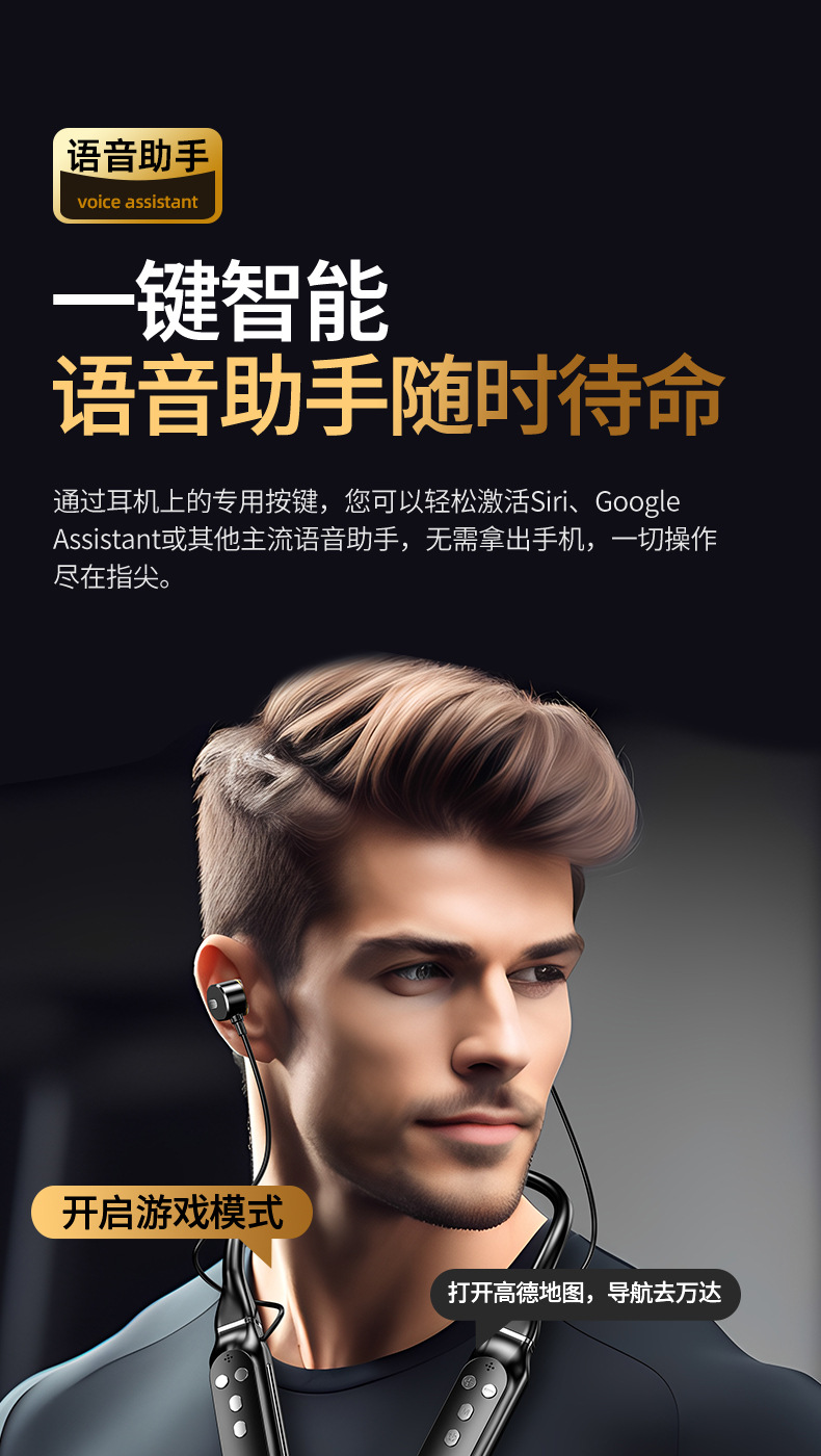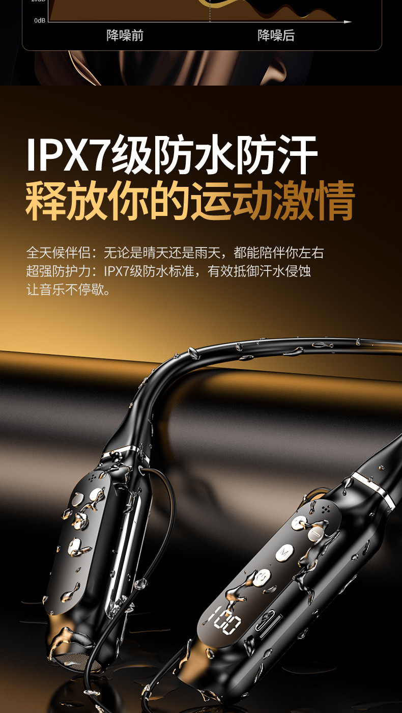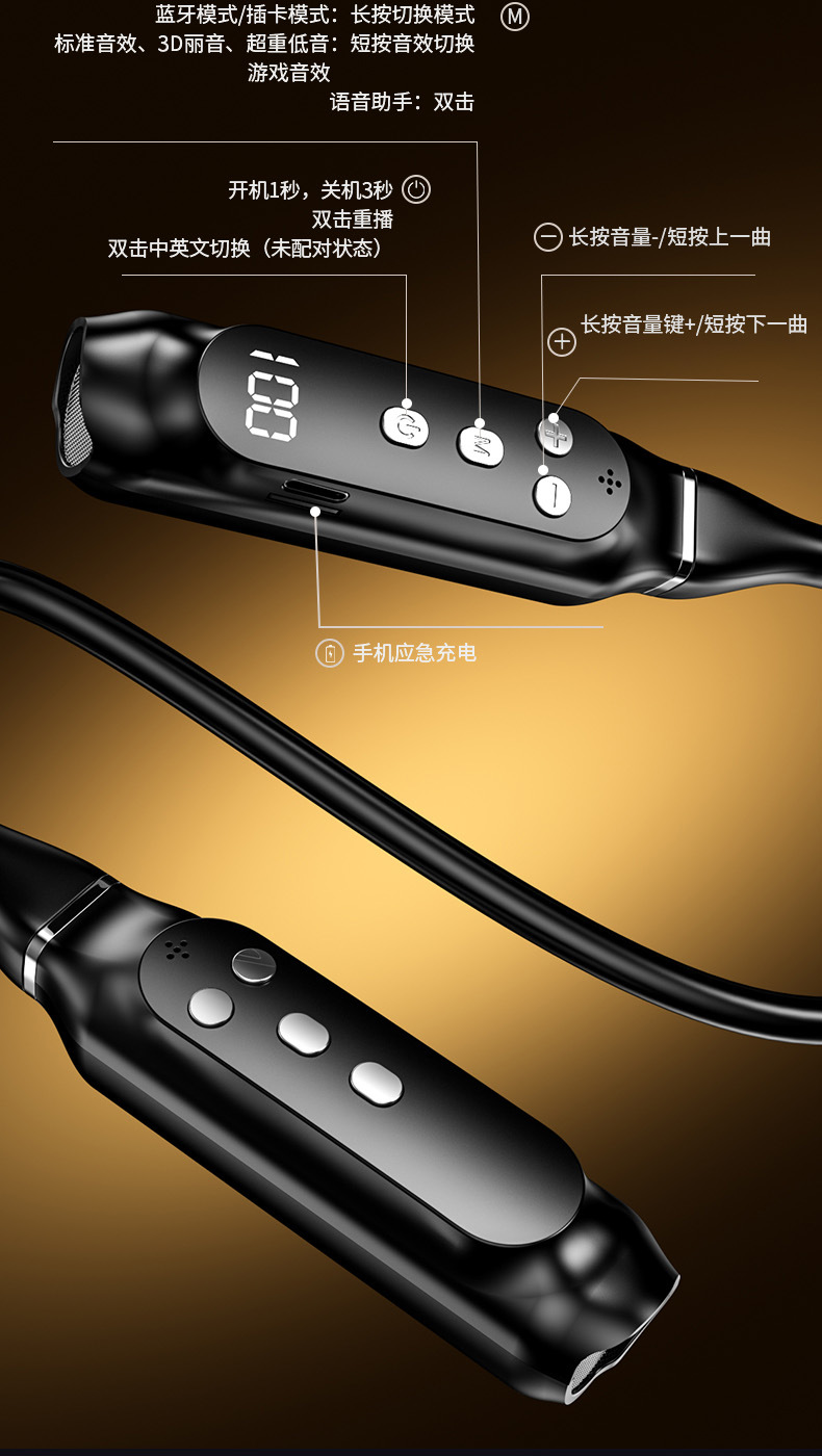 超長待機無線藍牙耳機掛脖式藍牙5.4芯大電量高音質新品