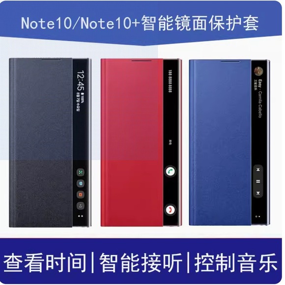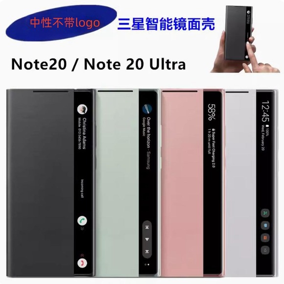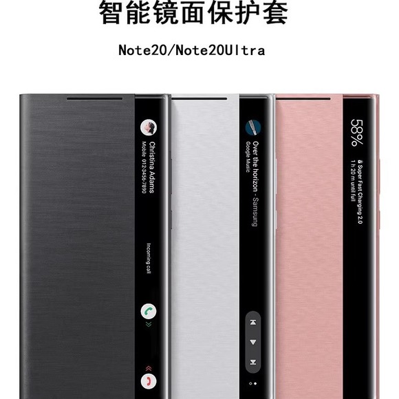 適用三星note20ultra手機殼20芯片智能鏡面手機繙蓋皮套防指紋