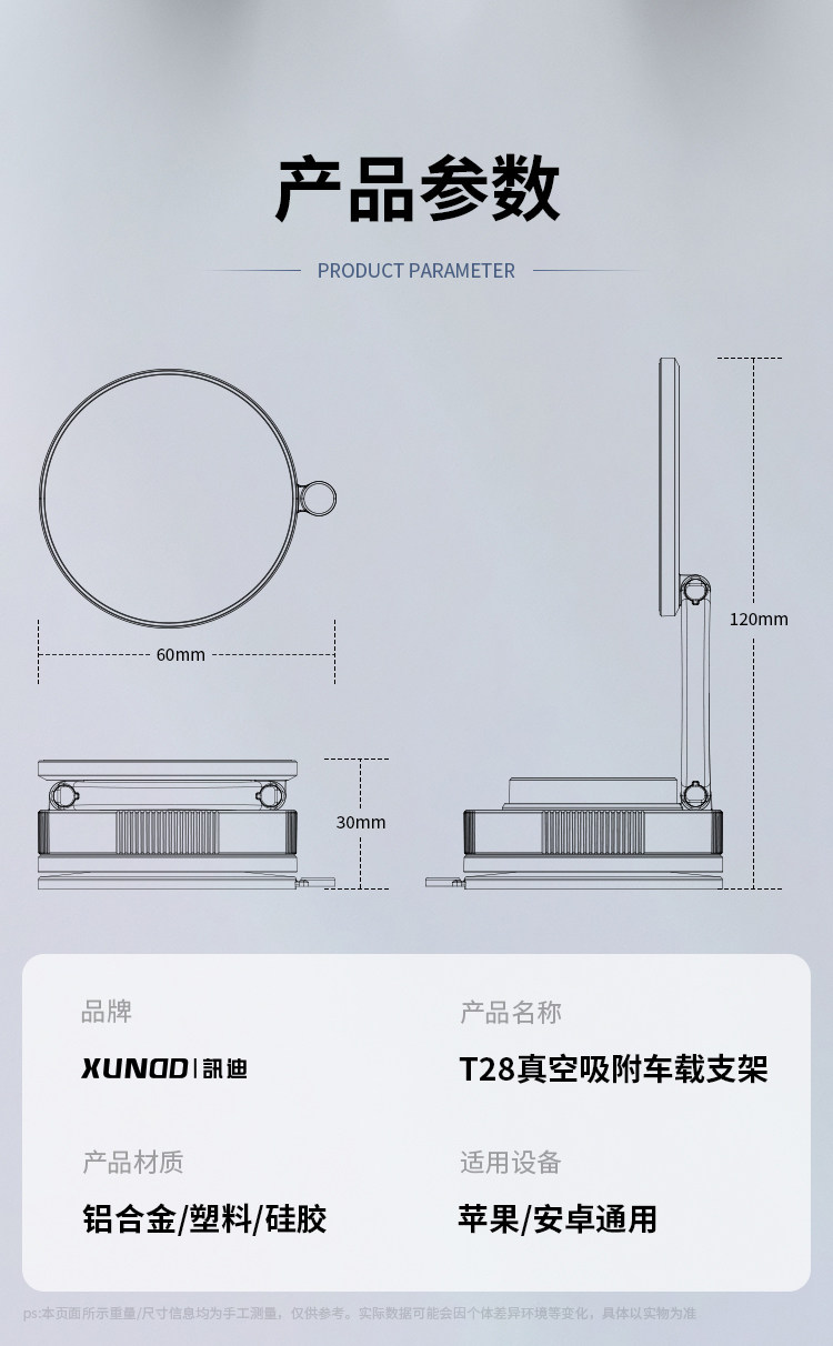 訊迪真空吸附磁吸車用手機支架2026新款汽車導航吸盤手機架支撐架YM