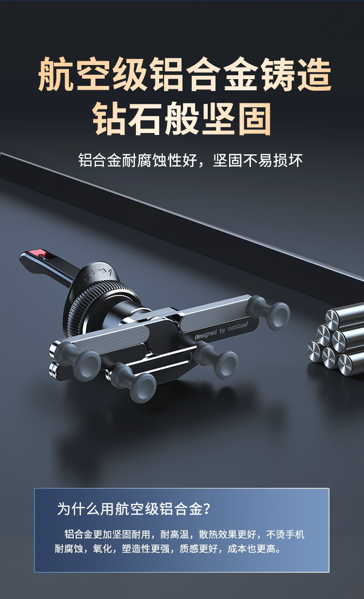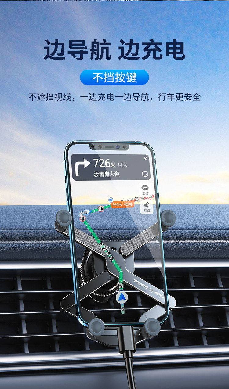 金屬車用手機支架汽車專用導航固定車內出風口卡釦式通用重力感應支撐粘貼儀表台2025新款高級小車上用的架子