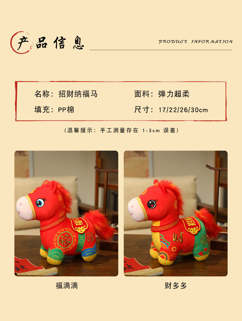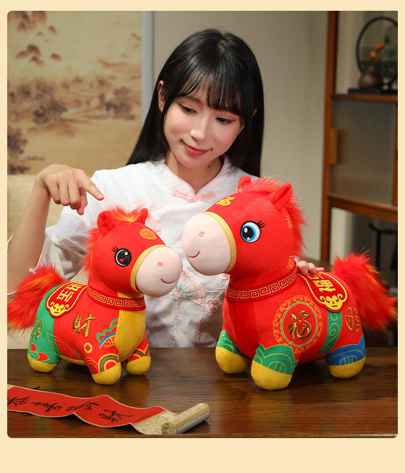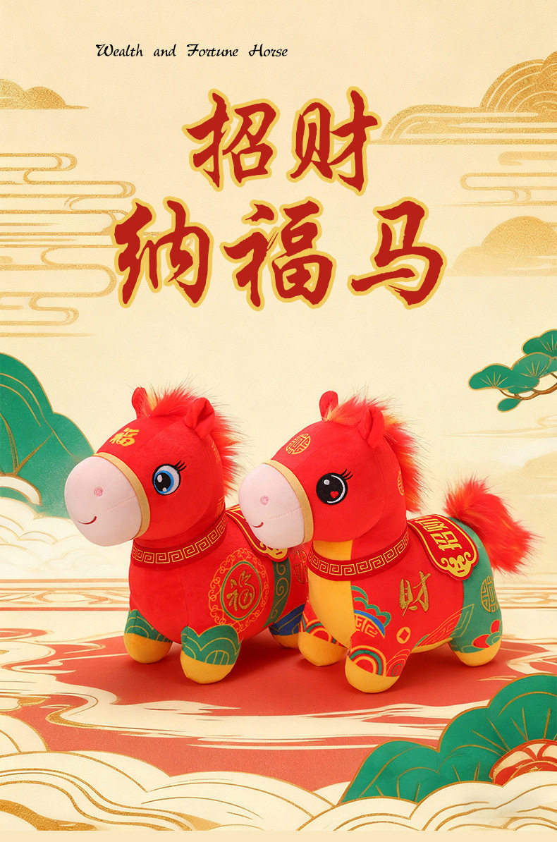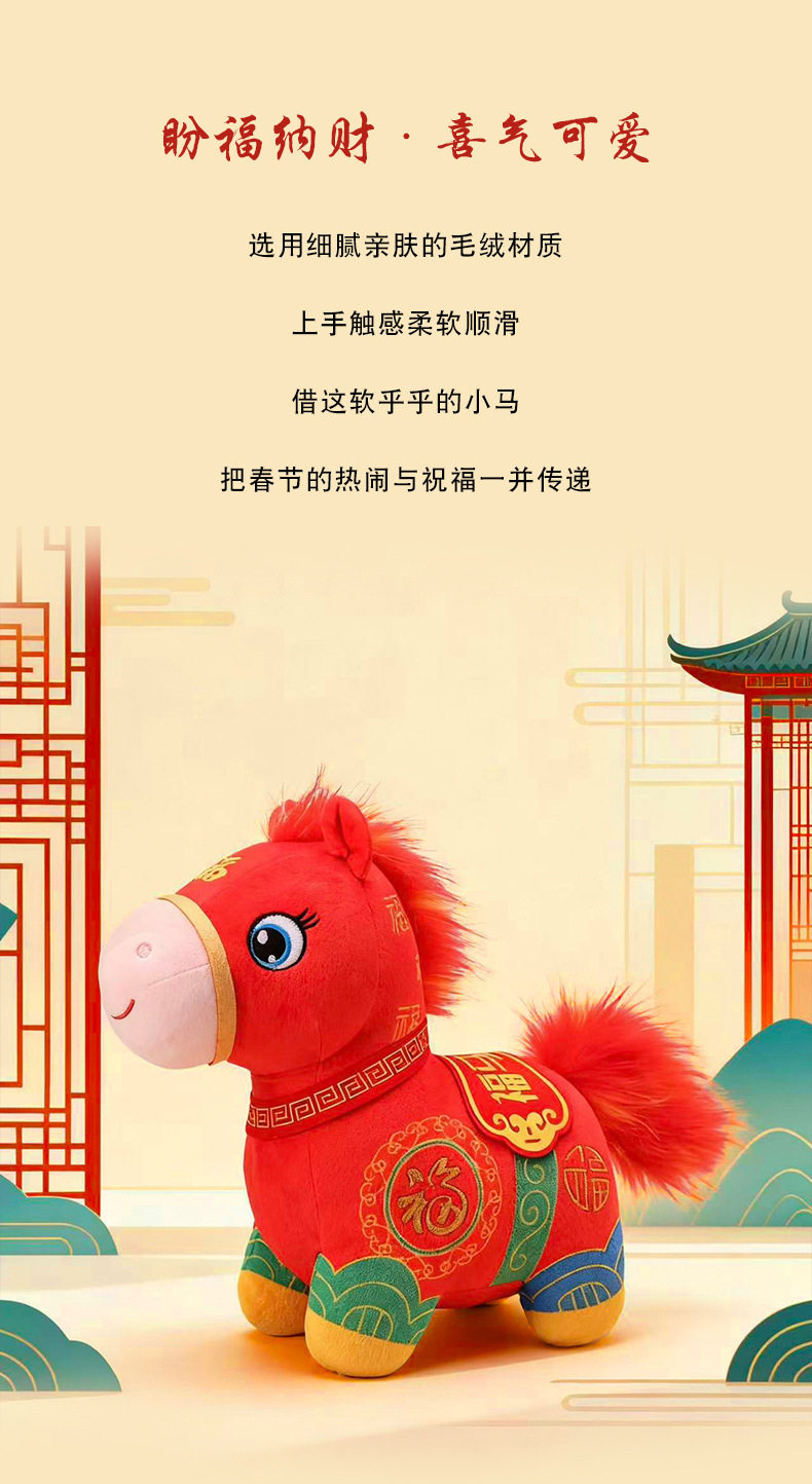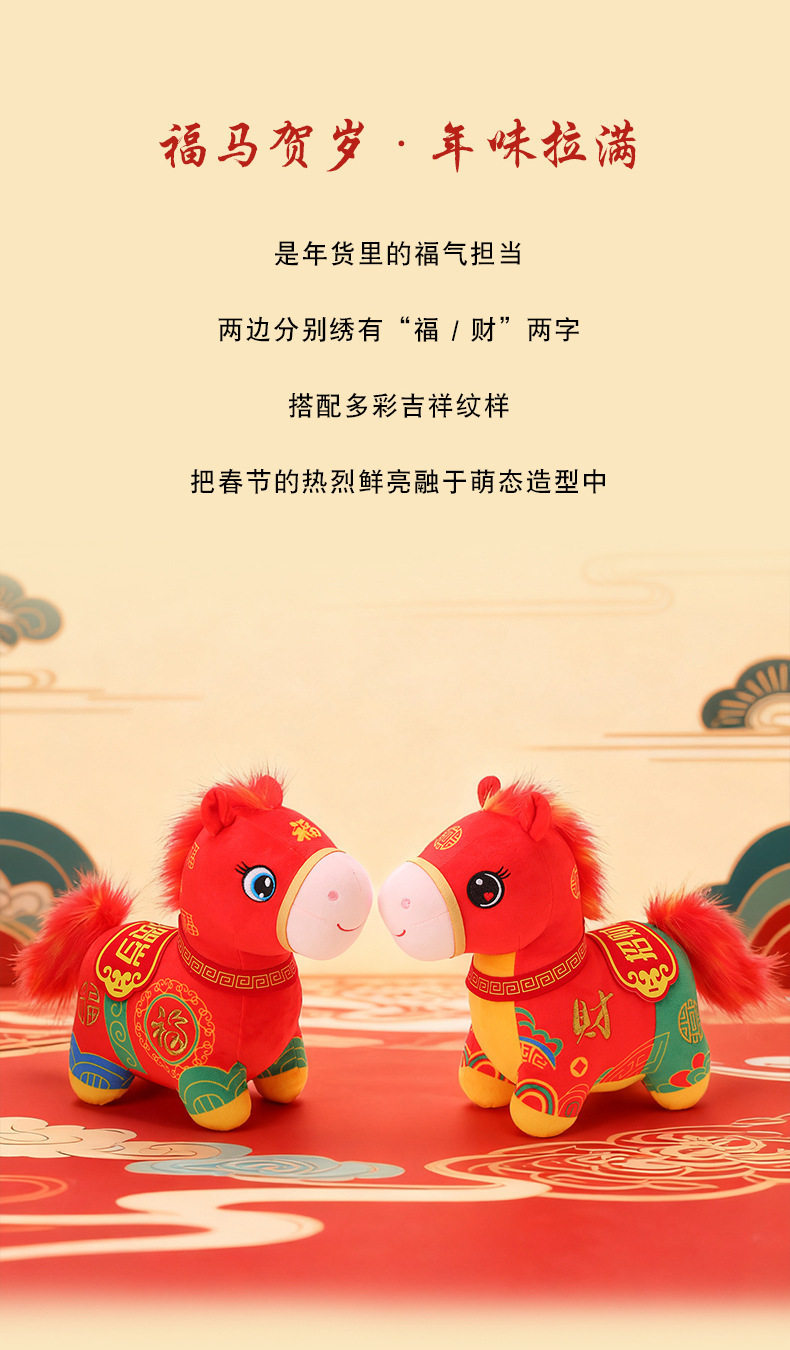 2026馬年吉祥物福馬賀嵗公仔布娃娃生肖小馬玩偶毛絨玩具新年禮物