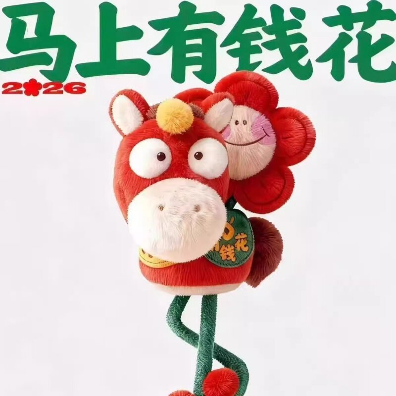 2026馬年吉祥物公仔馬上有錢花掛件生肖馬毛絨玩偶男女生新年禮物