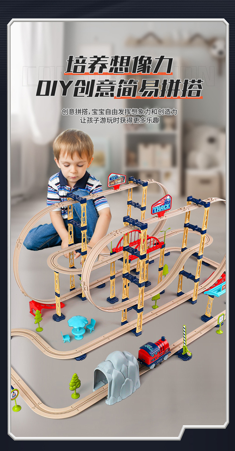 兒童益智百變拼裝火車玩具城市軌道車玩具汽車大冒險DIY場景軌道