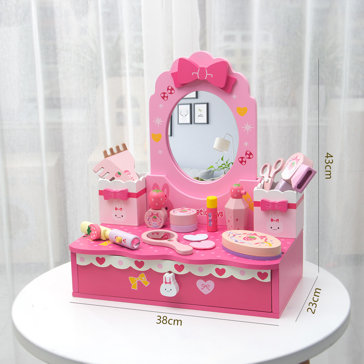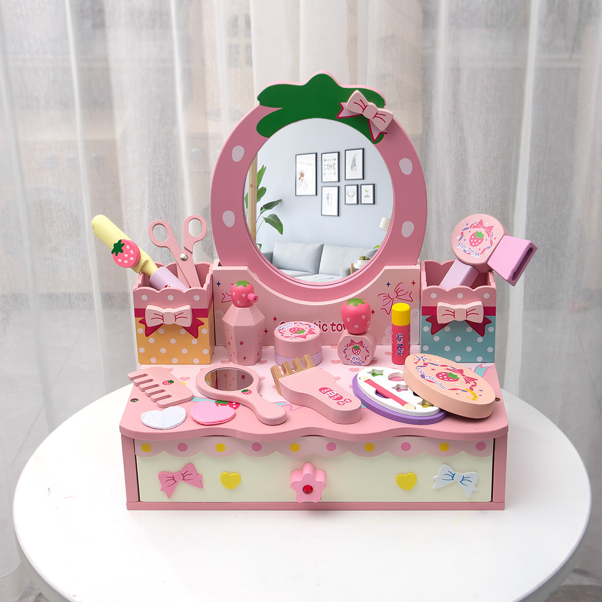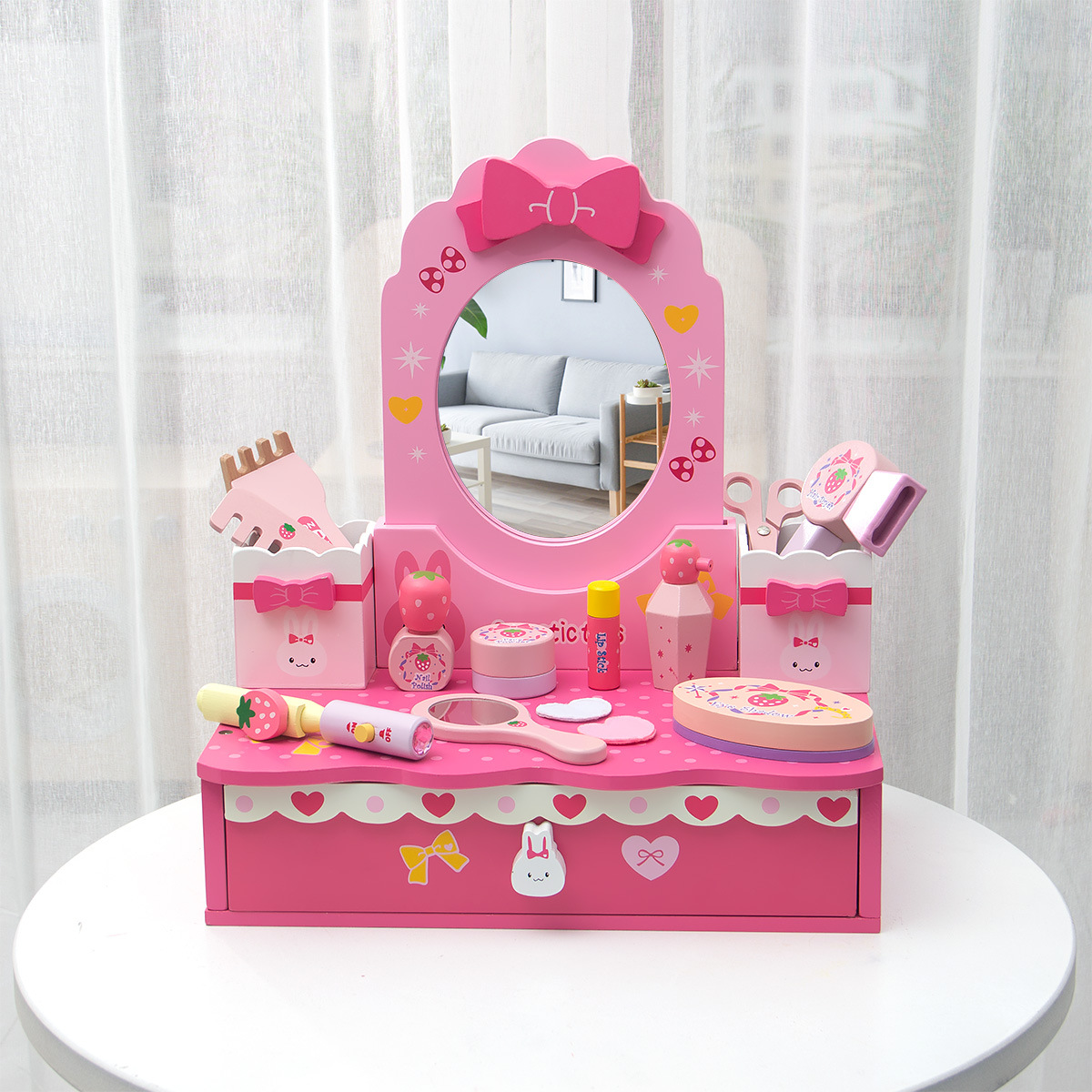 粉色角色扮演公主化妝系列扮家家酒梳妝台兒童仿真木製家具益智玩具