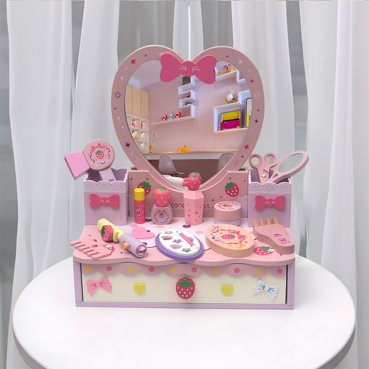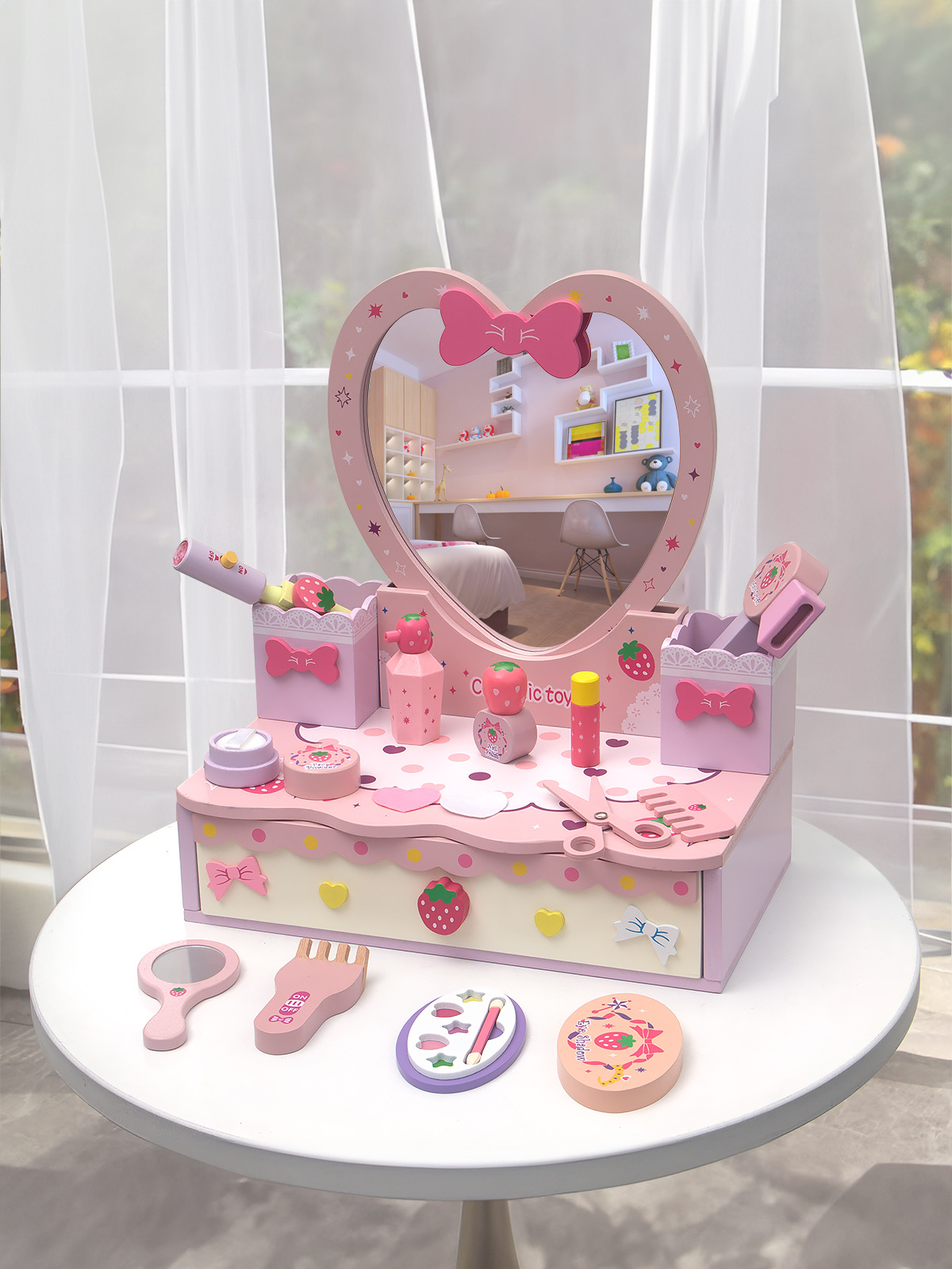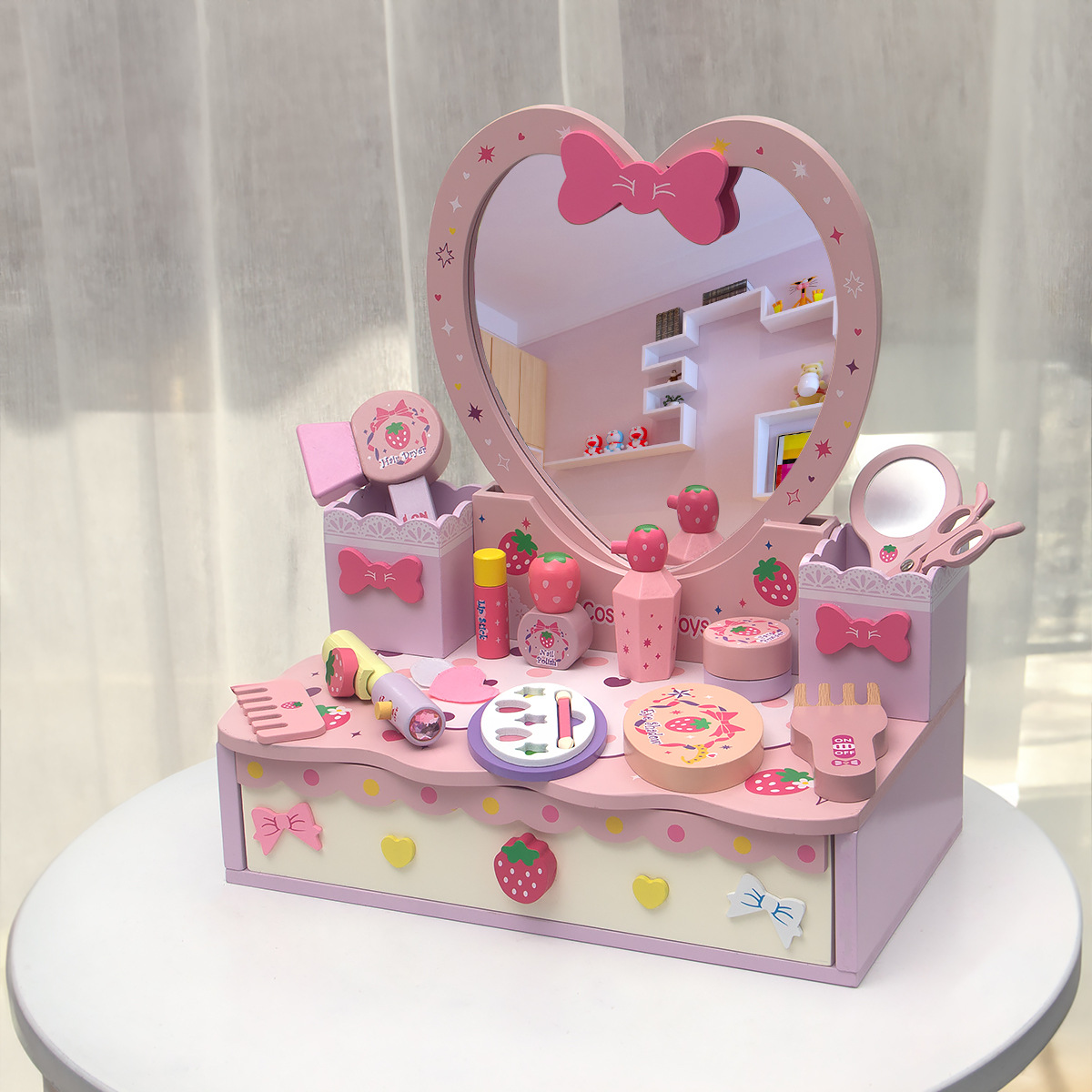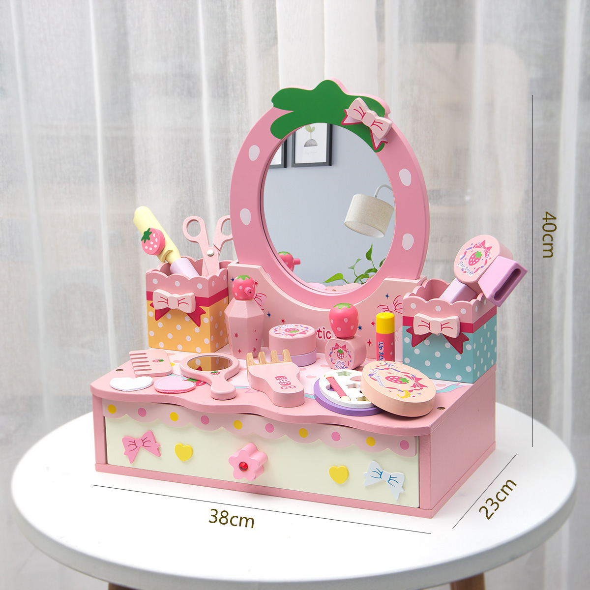 粉色角色扮演公主化妝系列扮家家酒梳妝台兒童仿真木製家具益智玩具