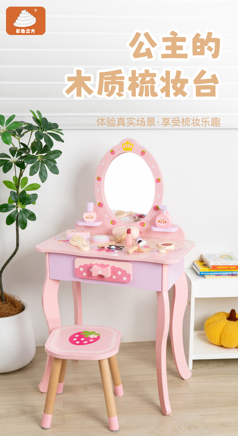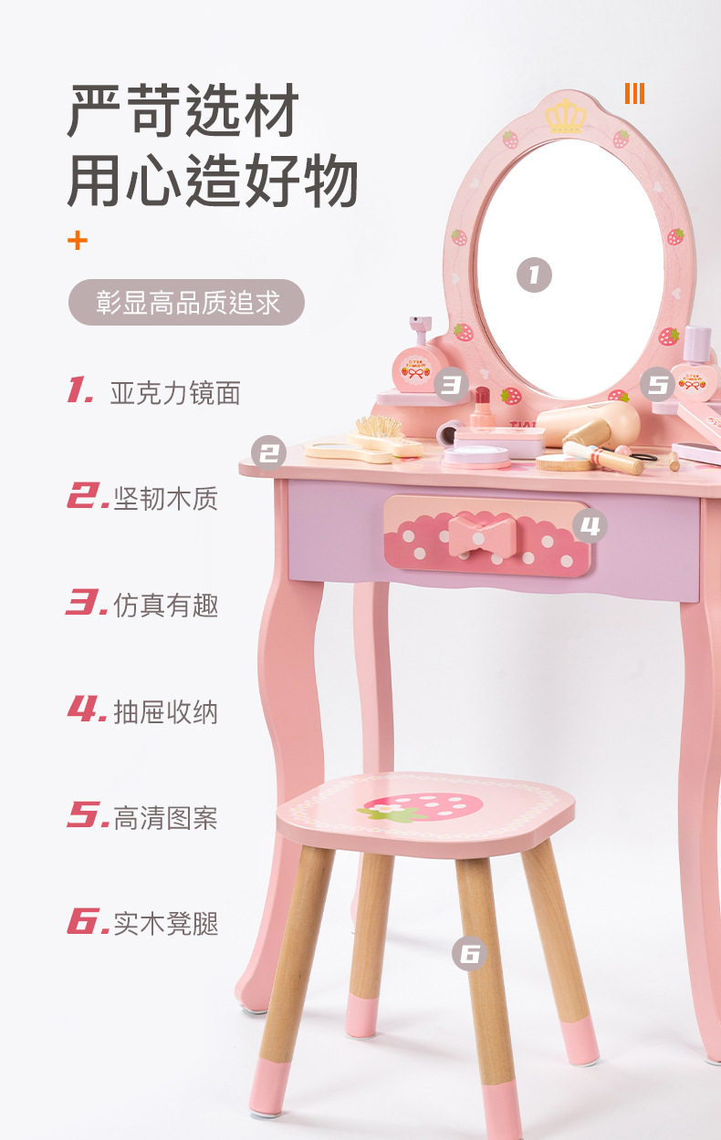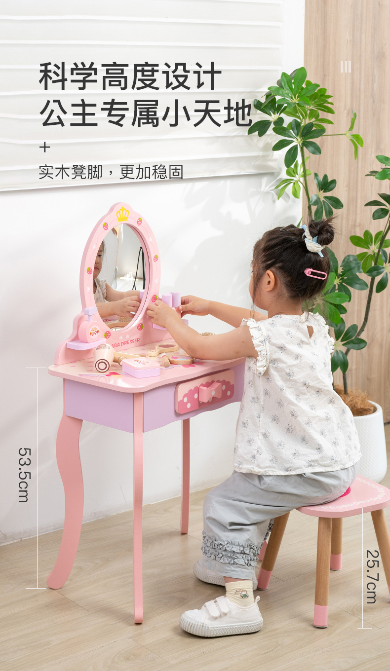 兒童扮家家酒木製仿真化妝梳妝台女孩角色扮演玩具套裝女孩禮物套裝