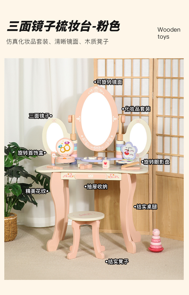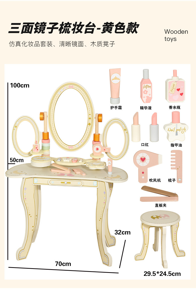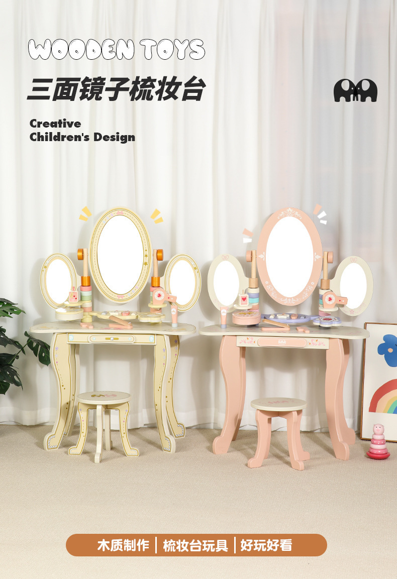 新款木製扮家家酒梳妝台玩具套裝兒童益智女孩化妝生日禮物木質公主