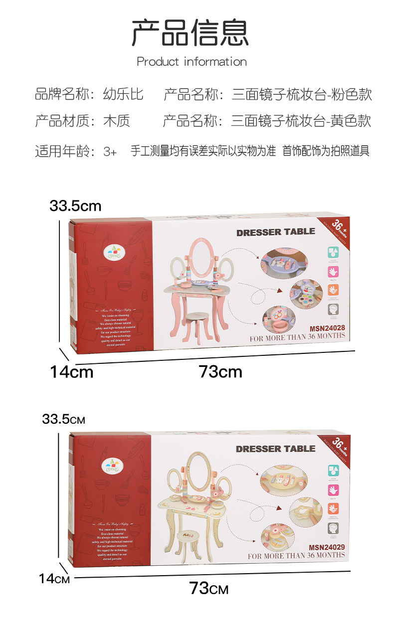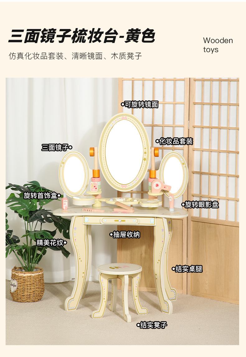 | 顔色 | 三面鏡子梳妝台-黃色款- 明森 |