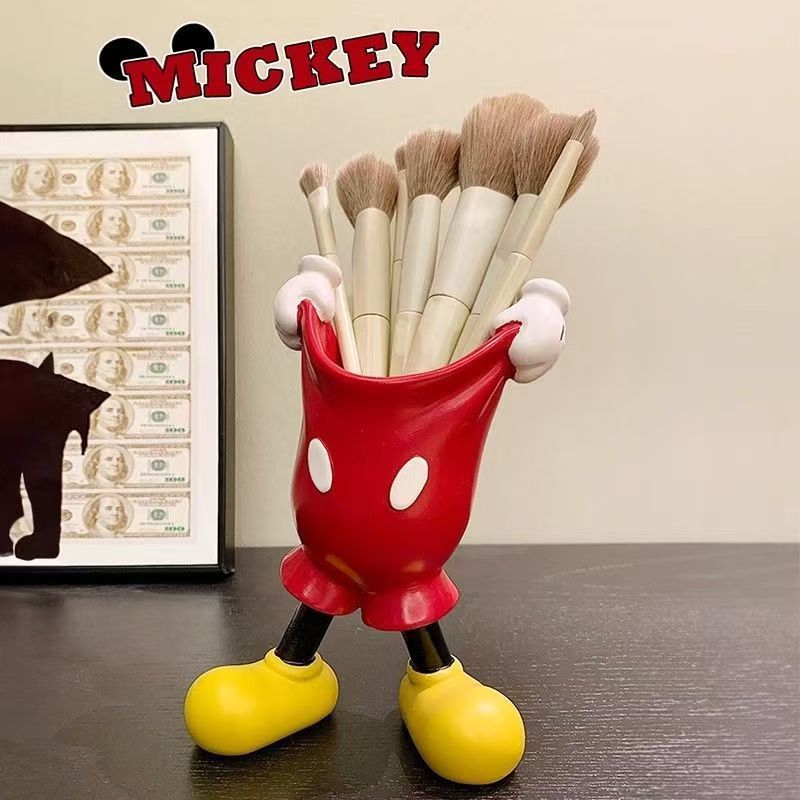 米奇臥室梳妝台毛筆眉筆收納筒化妝刷置物架學生桌面創意筆筒擺件