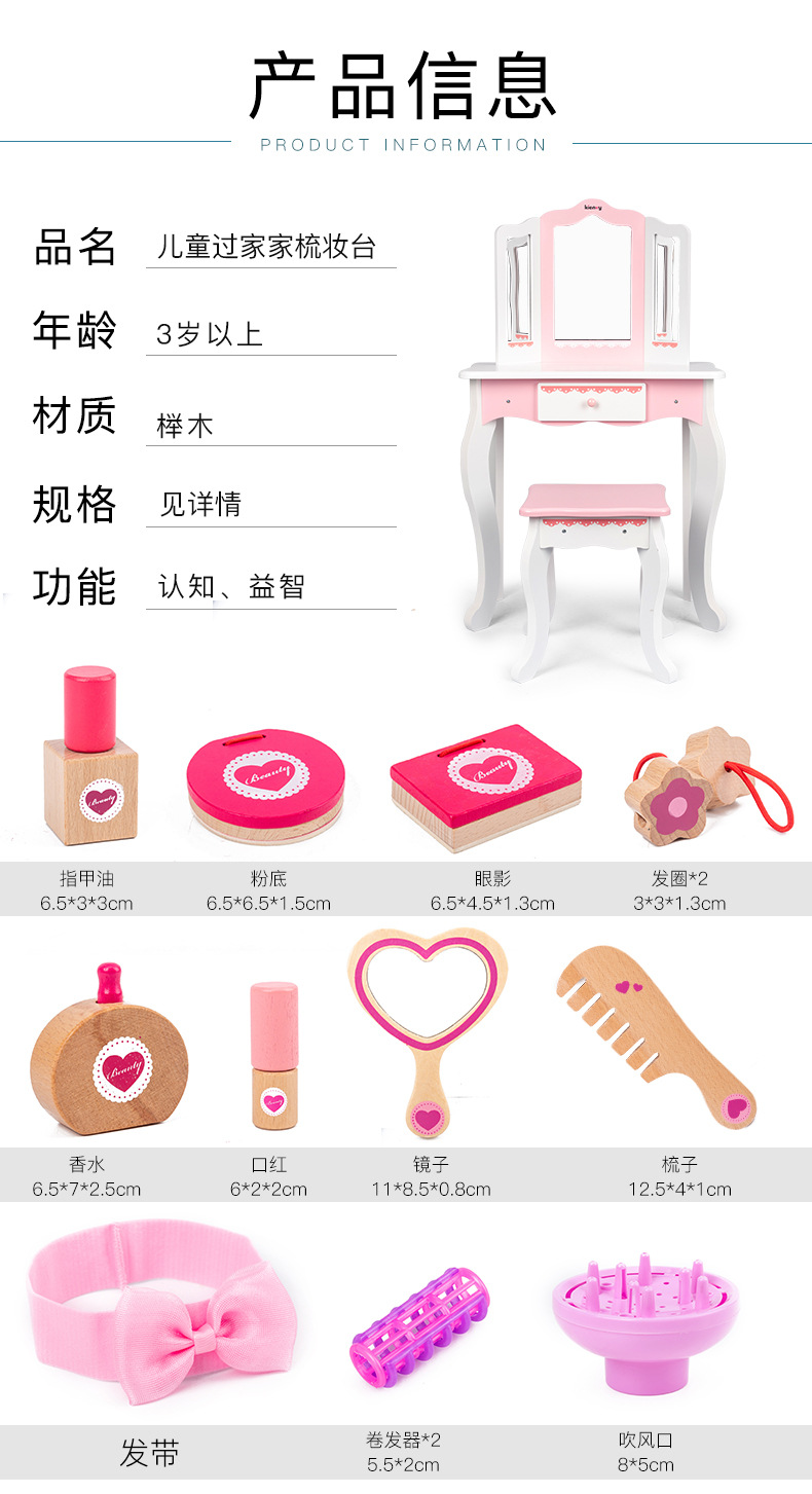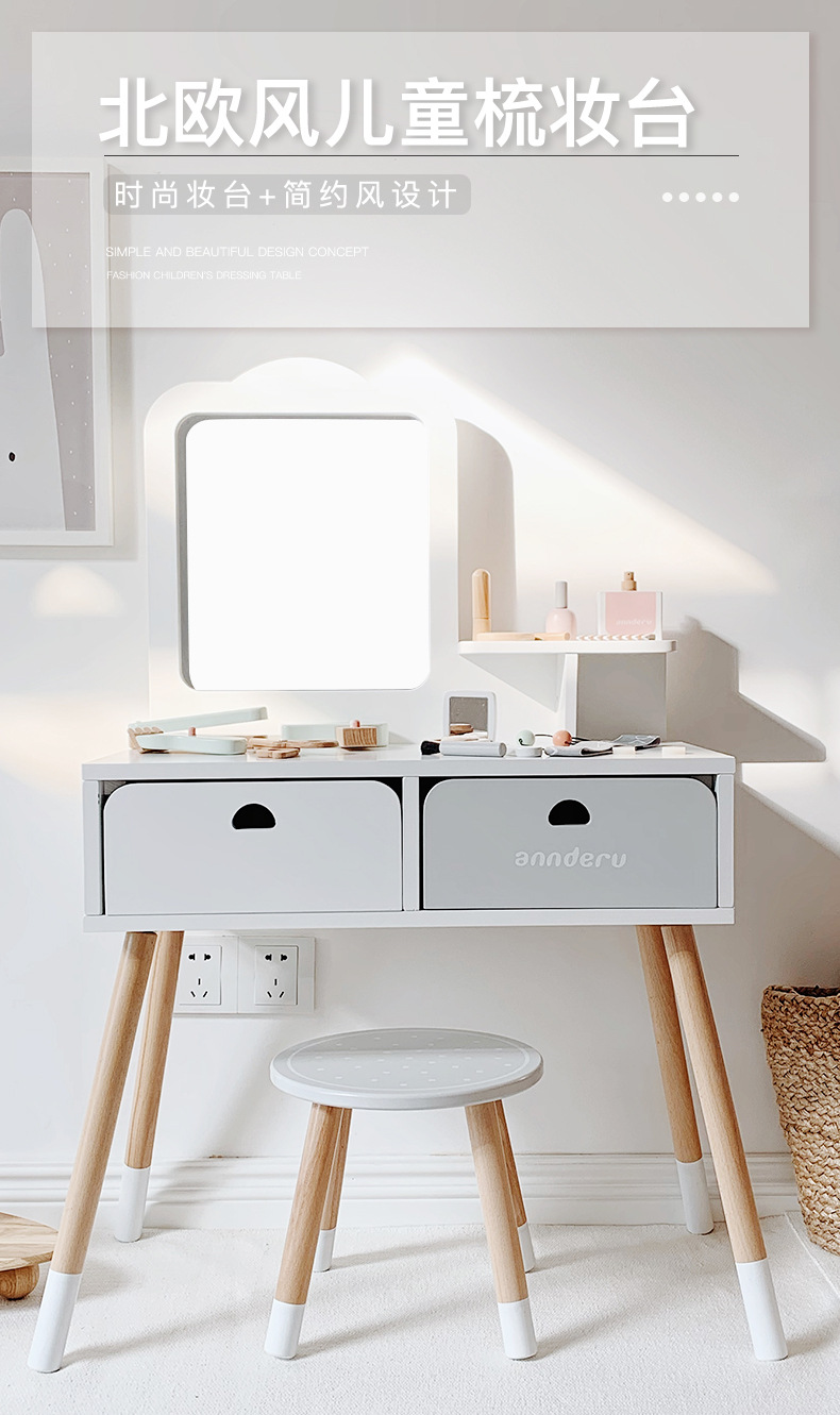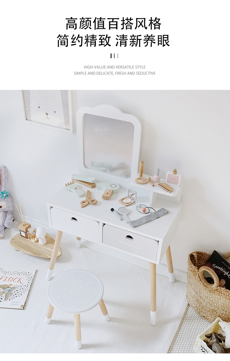 兒童仿真梳妝台公主化妝桌早教扮家家酒木製女孩玩具店