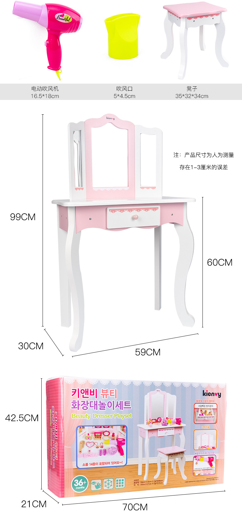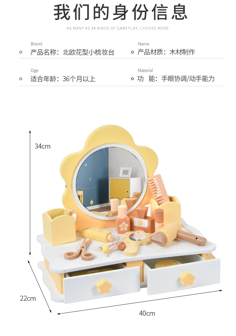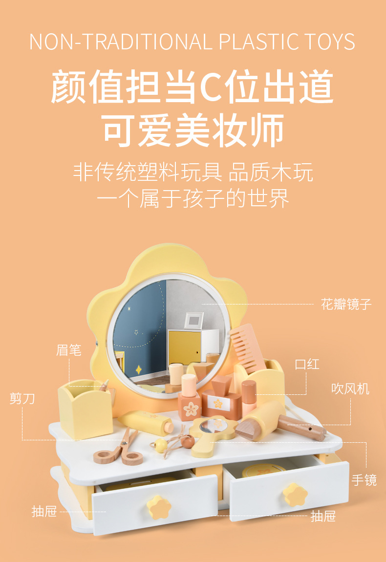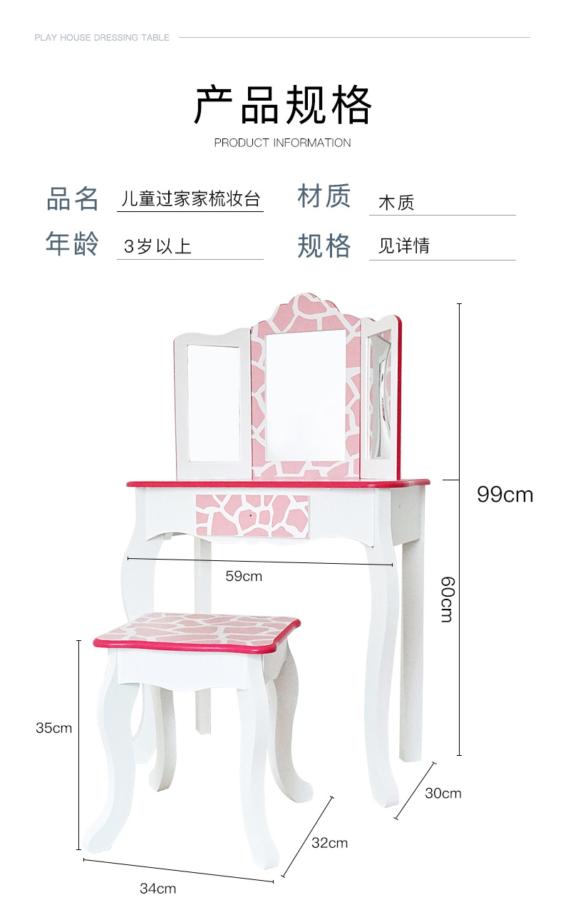兒童仿真梳妝台公主化妝桌早教扮家家酒木製女孩玩具店