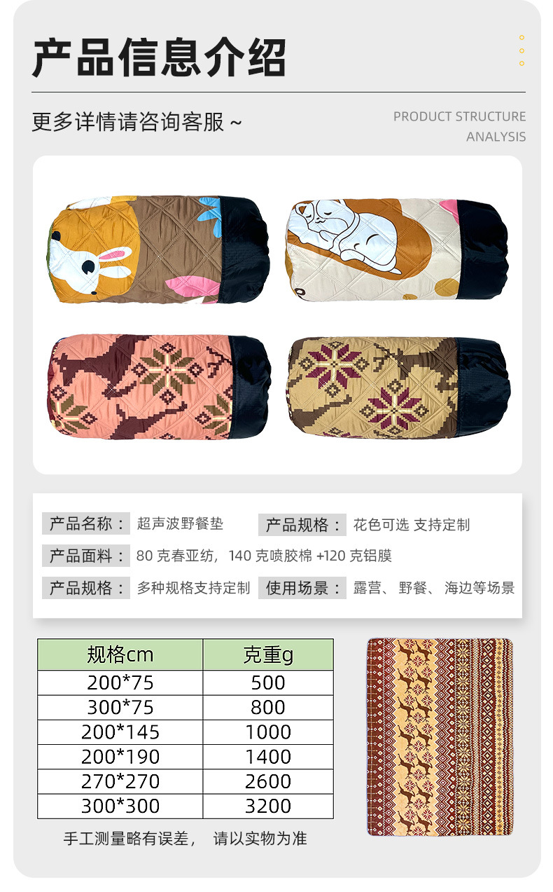 卡通兒童睡墊防水防潮墊加厚戶外野餐布 超音波野餐墊