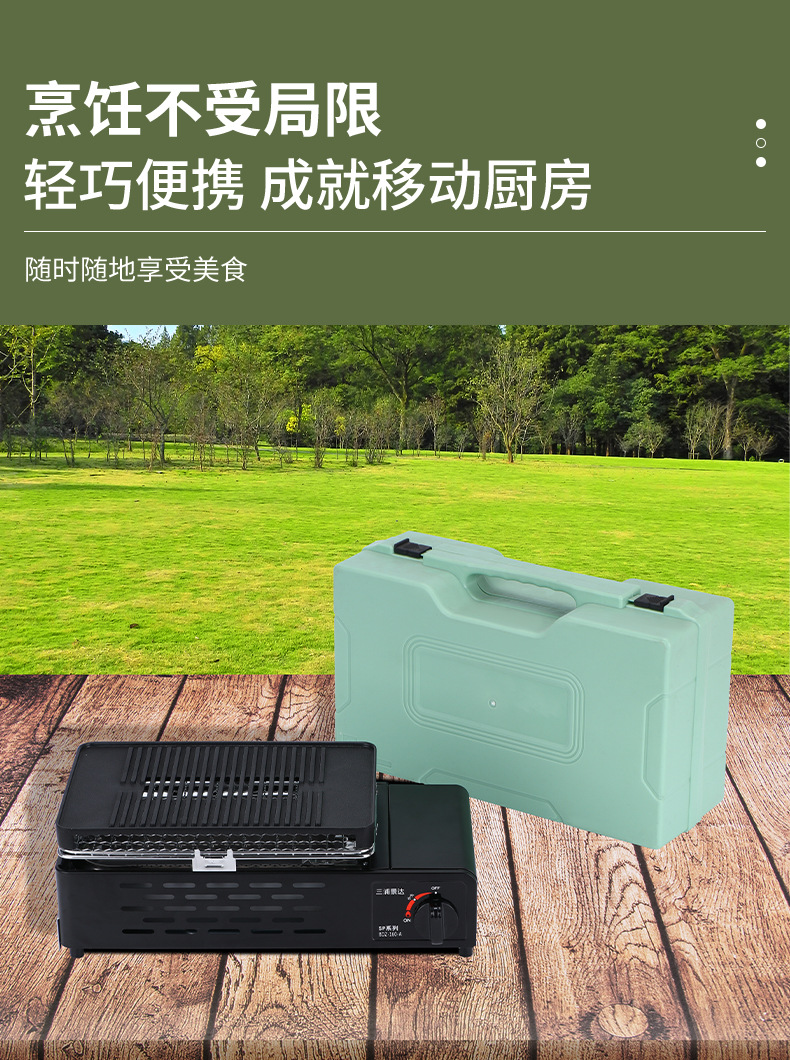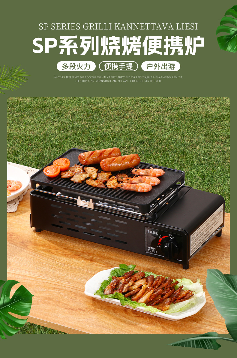 戶外可攜式烤爐野餐燒烤爐室外烤盤一體式氣爐迷你戶外露營煎烤皆