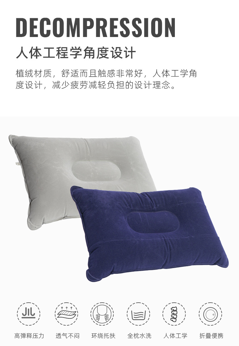 戶外充氣枕大號加厚植絨方形露營睡袋枕午休靠墊折疊旅行枕頭