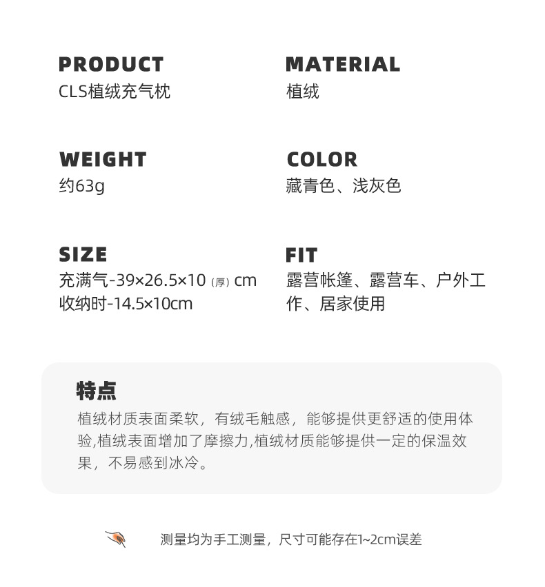 尺寸:充滿氣-39×26.5×10(厚)cm、收納-14.5×10cm