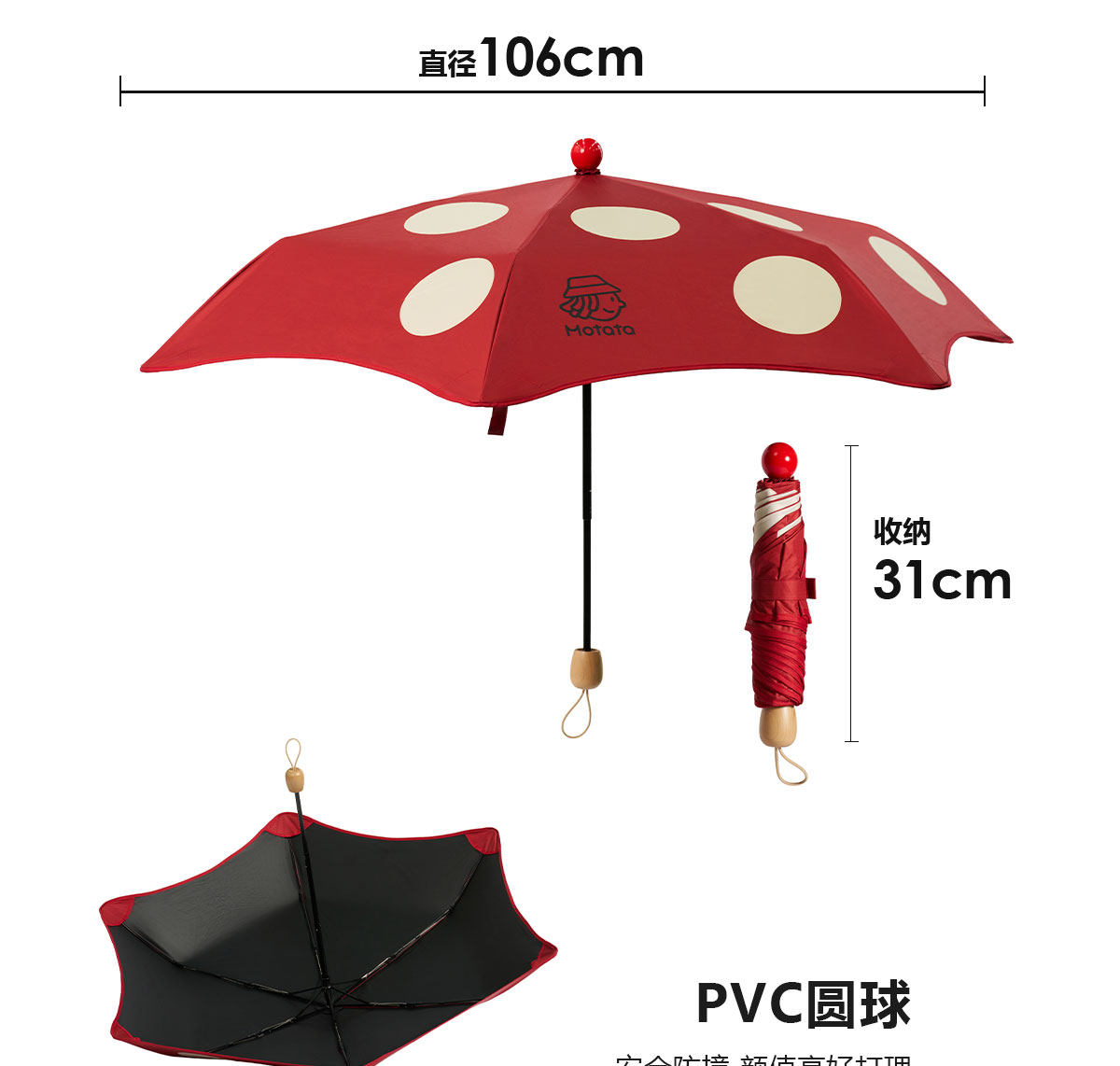 Motata戶外晴雨傘兩用高顔值蘑菇傘遮陽傘防紫外線折疊可攜式小巧雙