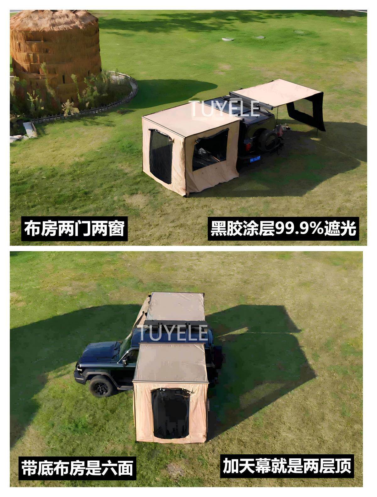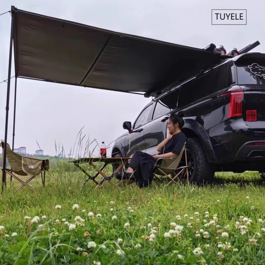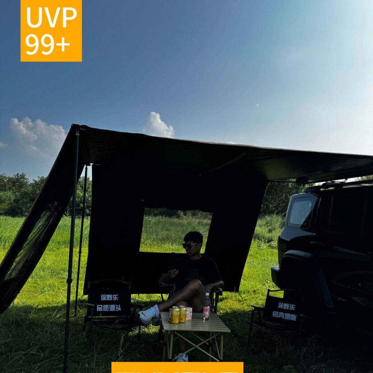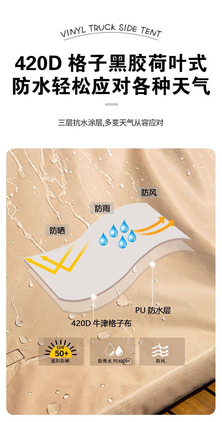 SUV戶外黑膠車邊帳天幕帳篷側帳越野遮陽棚露營房車用防雨曬硬殼