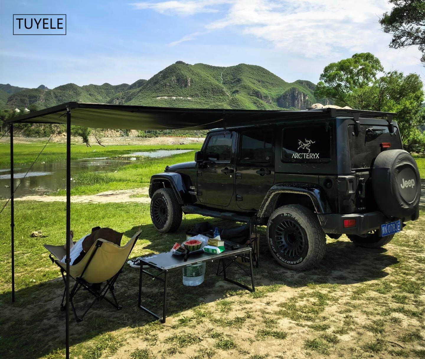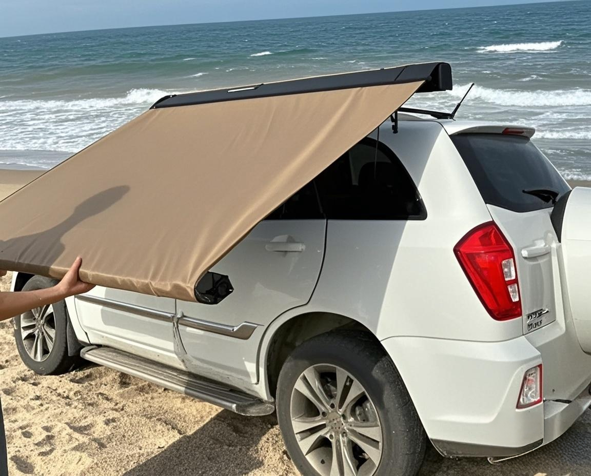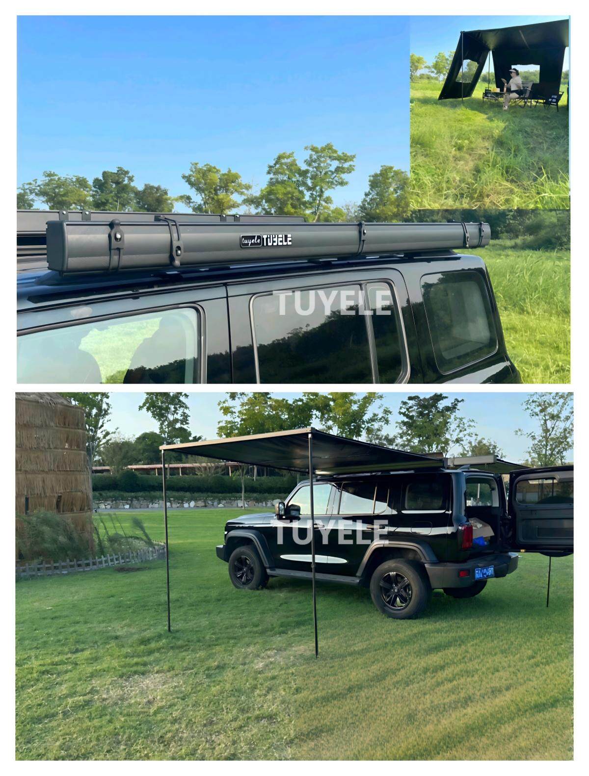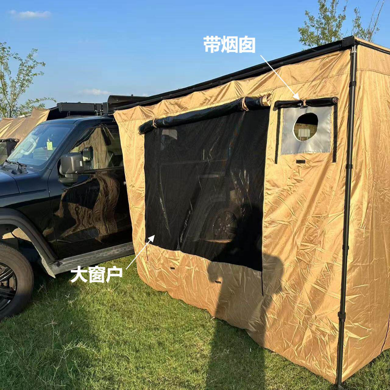 SUV戶外黑膠車邊帳天幕帳篷側帳越野遮陽棚露營房車用防雨曬硬殼