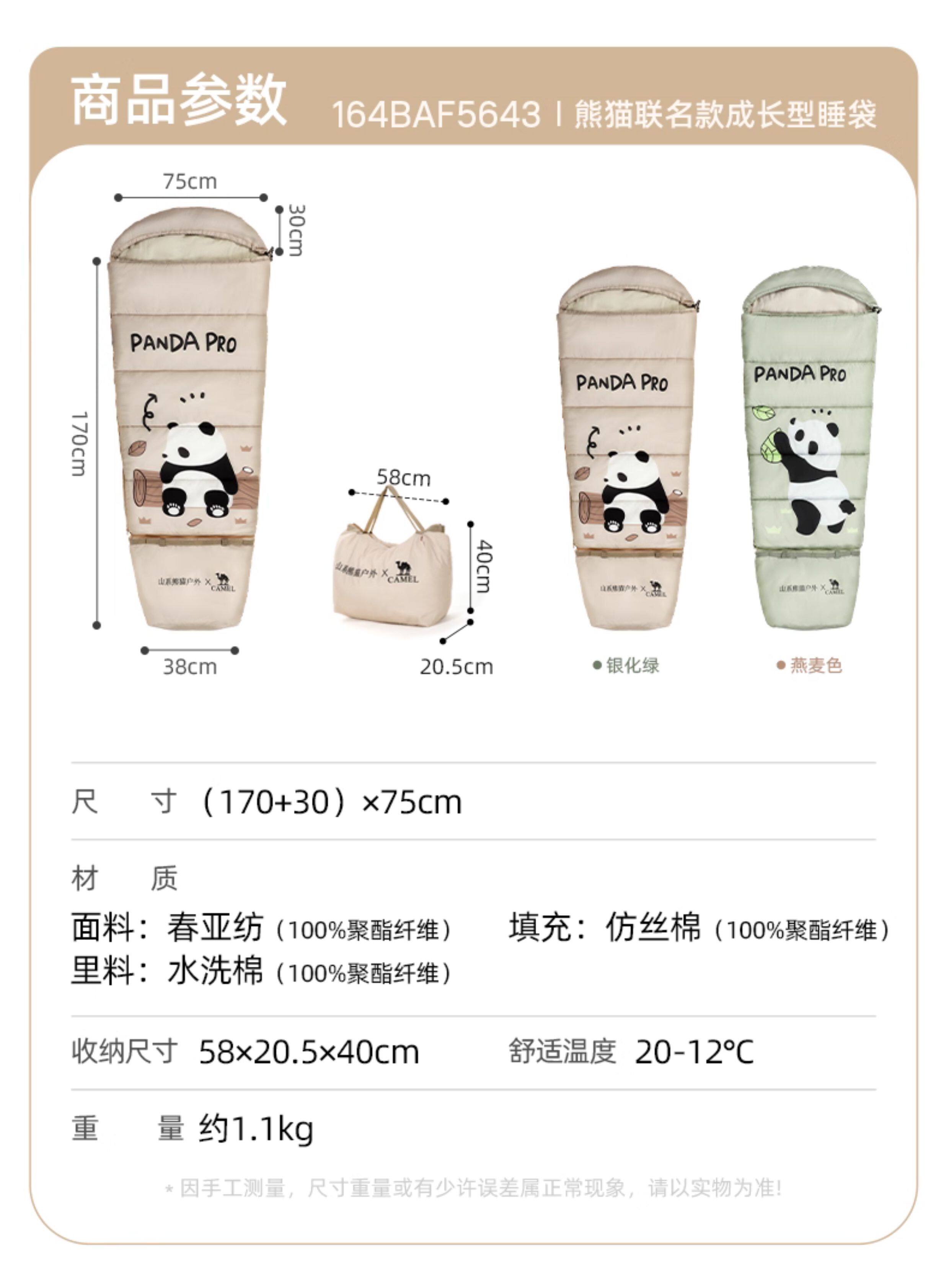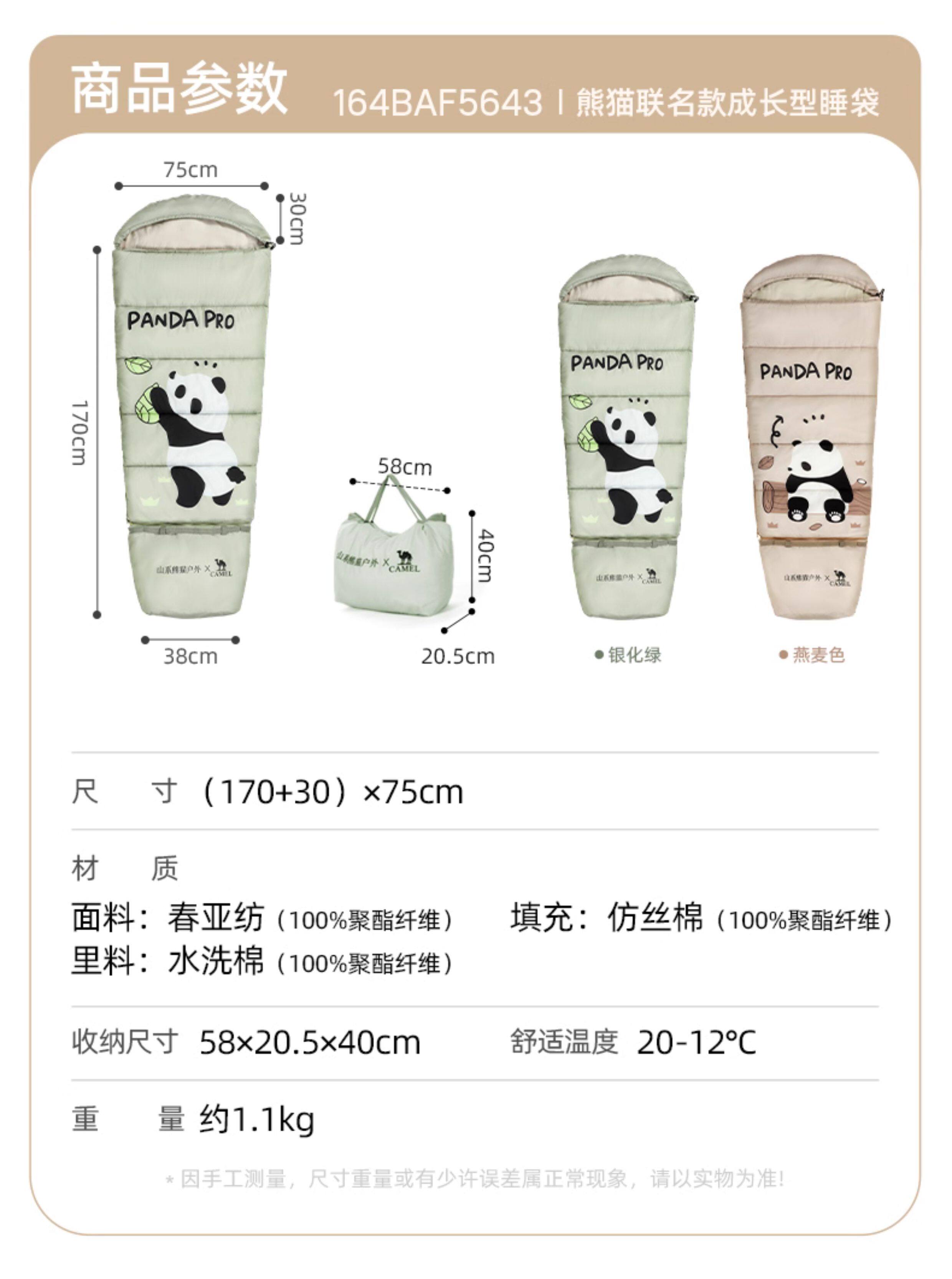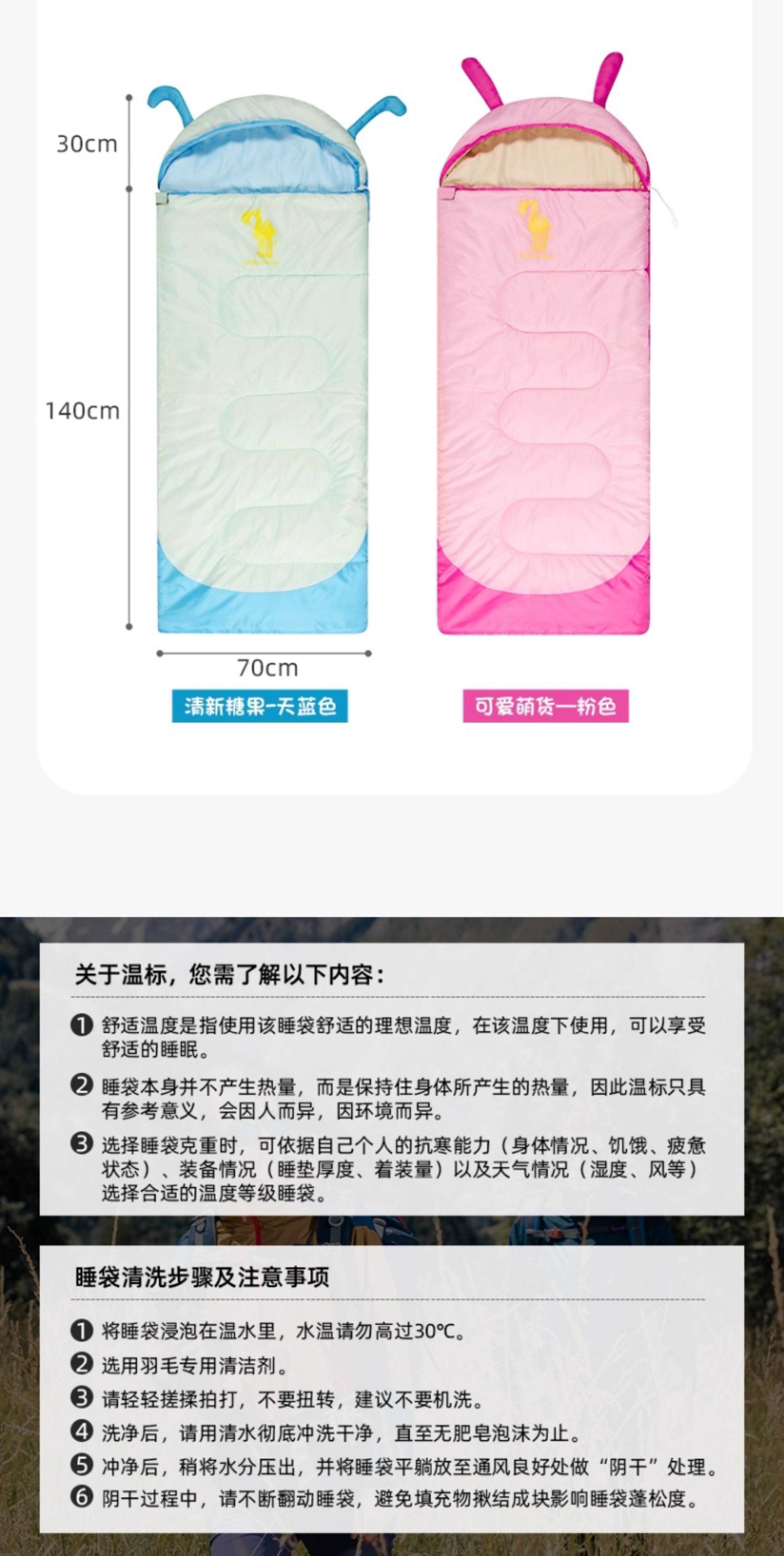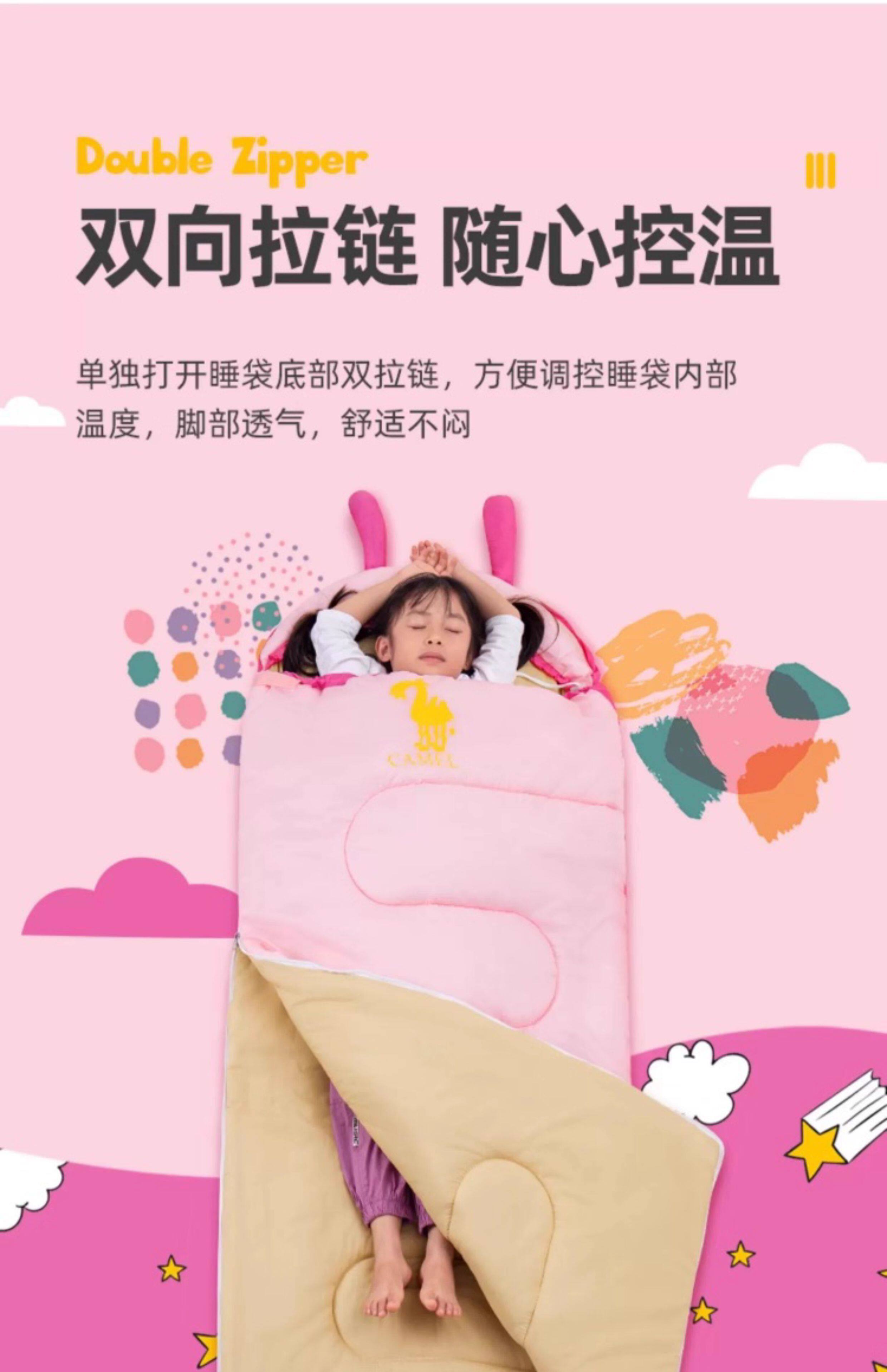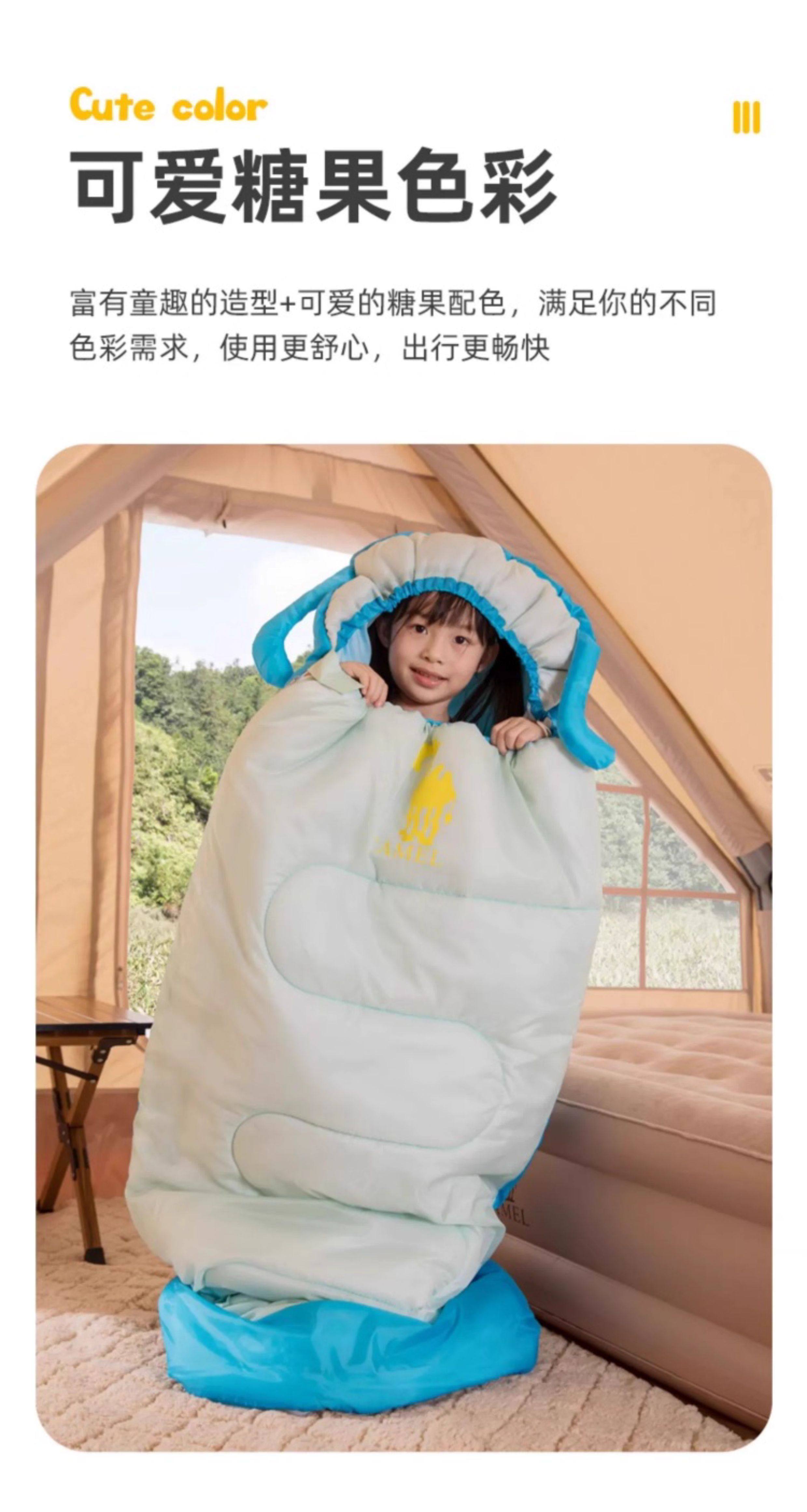 駱駝熊貓戶外兒童睡袋旅行露營可重復使用可攜式學生保暖隔髒睡袋