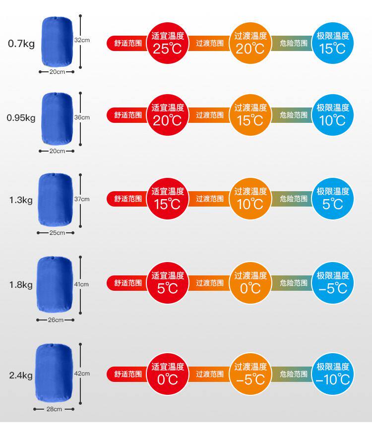 | 睡袋尺碼 | 標準型(適合1.8米及以下身高) |