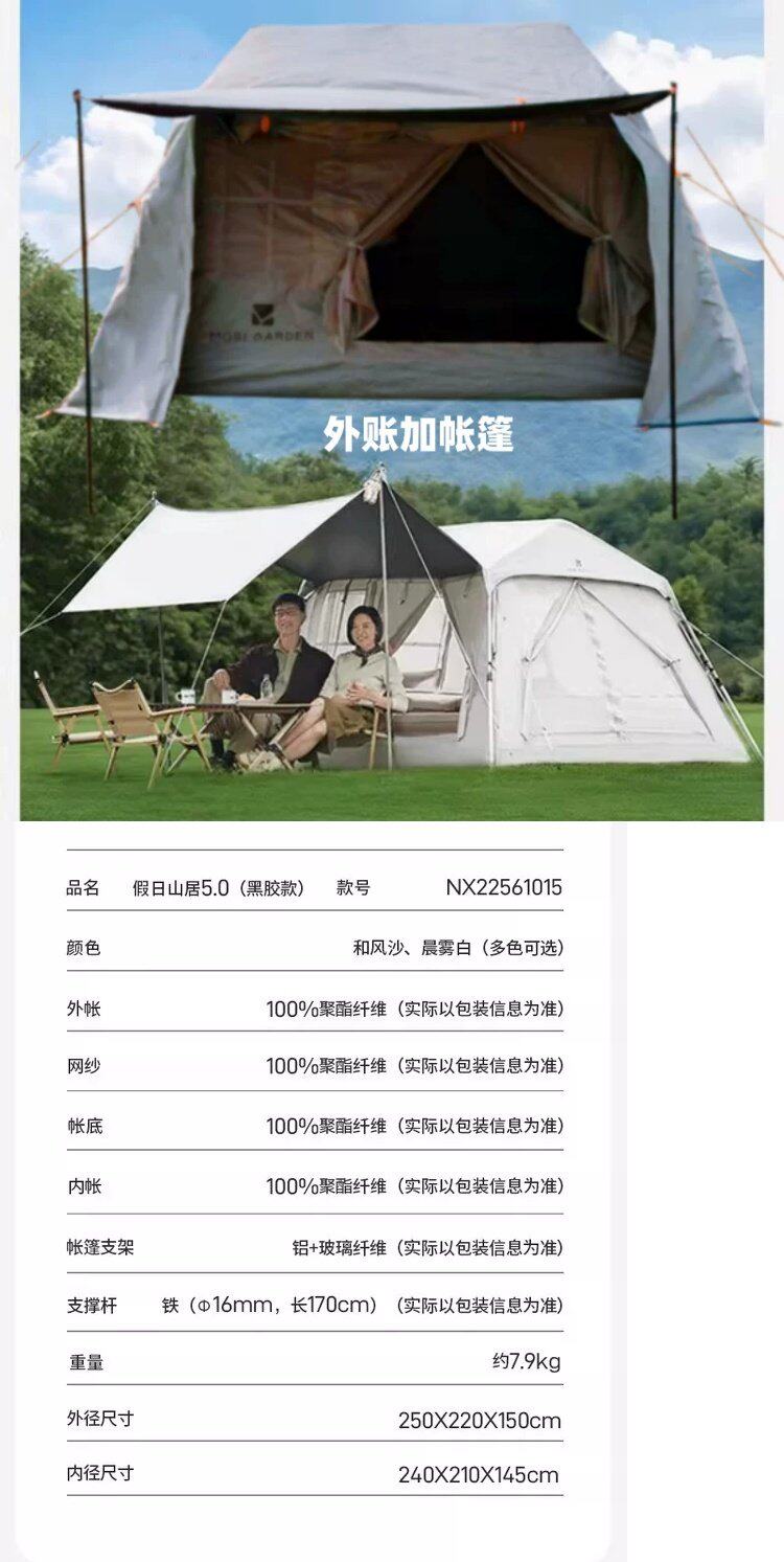 牧高笛戶外帳篷假日山居5.0黑膠天幕露營自動速開鋁支架帳篷+雨罩