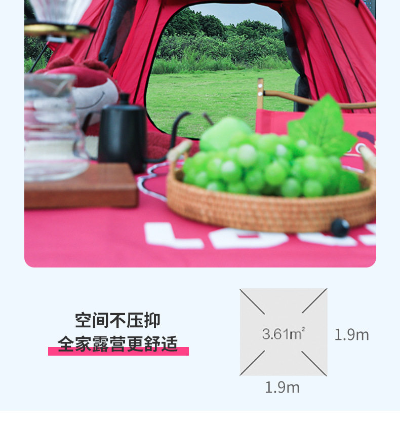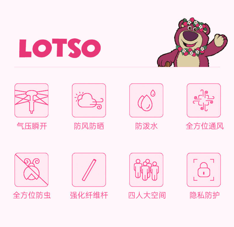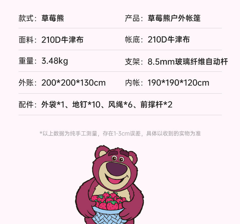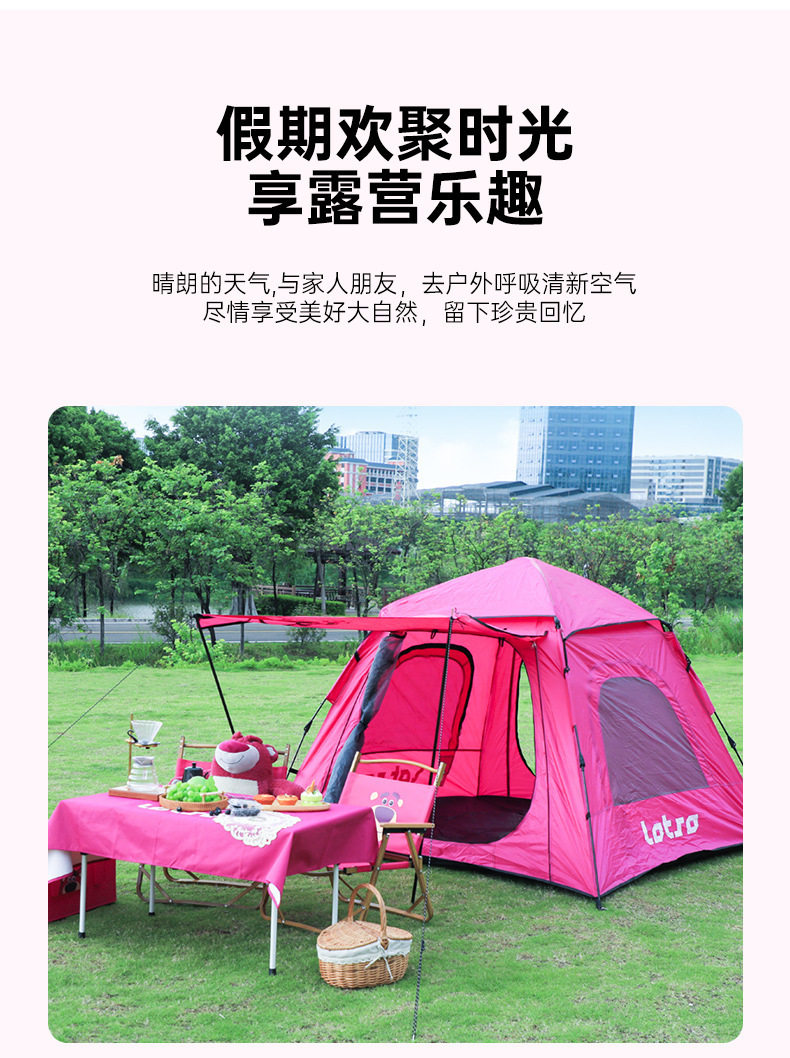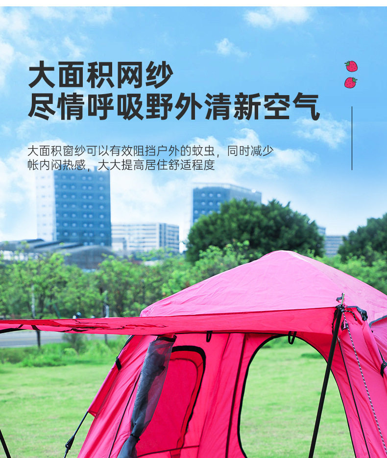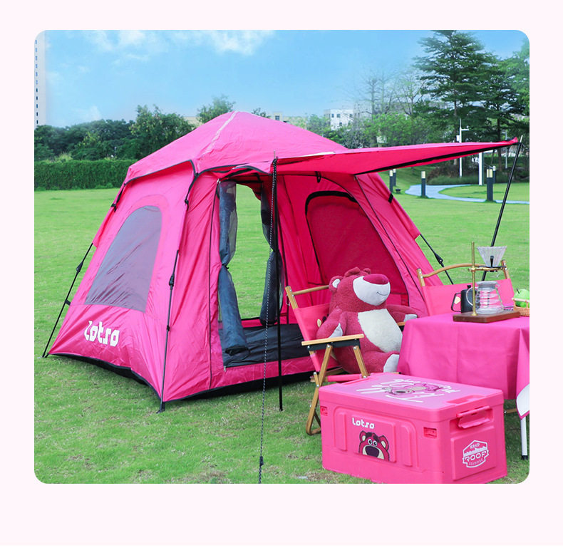 草莓熊戶外帳篷全自動速開免搭建防雨防曬可攜式折疊露營帳篷